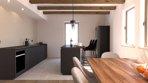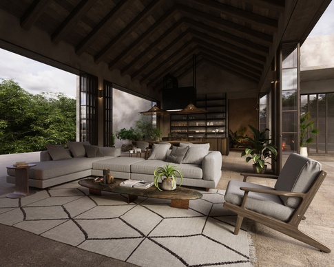 Idee arredo Open Space in stile Rustico Lo stile country è uno stile materico, per questo se vuoi ricreare un openspace rustico, dovrai fare di pareti in pietra, travi e soffitti in legno i veri protagonisti del tuo spazio, meglio se valorizzati dalla luce naturale di grandi finestre. Per il tuo soggiorno scegli un grande tavolo in legno grezzo e al posto delle sedie opta per sgabelli o panche. Un’idea smart può essere quella di usare il camino come divisorio tra sala e cucina (eh sì, non ci vuoi mettere un bel camino in pietra in un openspace rustico?). Preferisci divani in tessuto o in pelle e accompagnali a tessili caldi in lana e cotone a tinta neutra, tartan o a quadri.