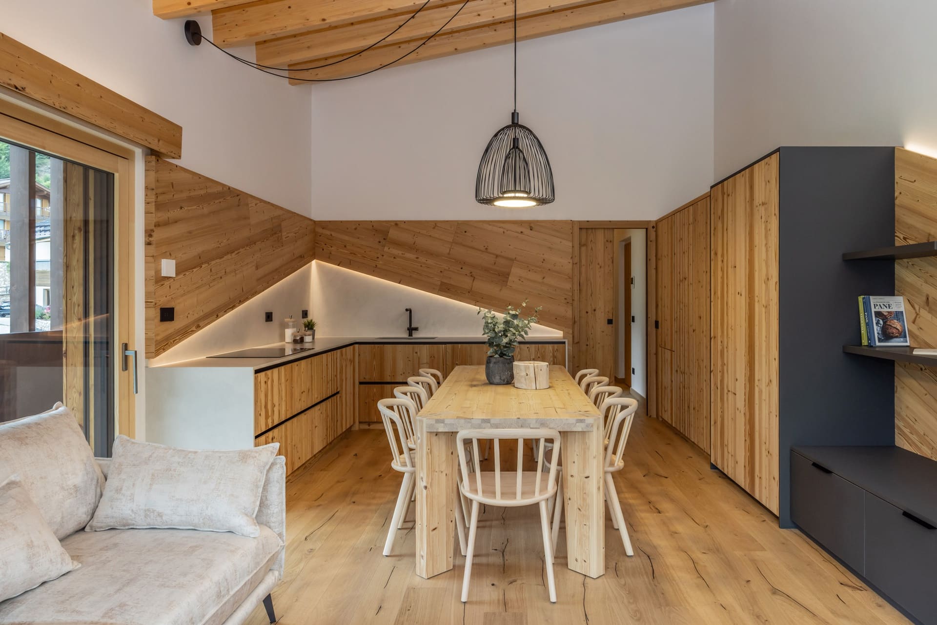 Il rustico non è solo memoria del passato, ma diventa una base per soluzioni moderne e intelligenti. È un progetto che dimostra come il sogno di una casa in montagna possa trasformarsi in uno spazio unico, accogliente e funzionale, immerso nel cuore delle Dolomiti.
