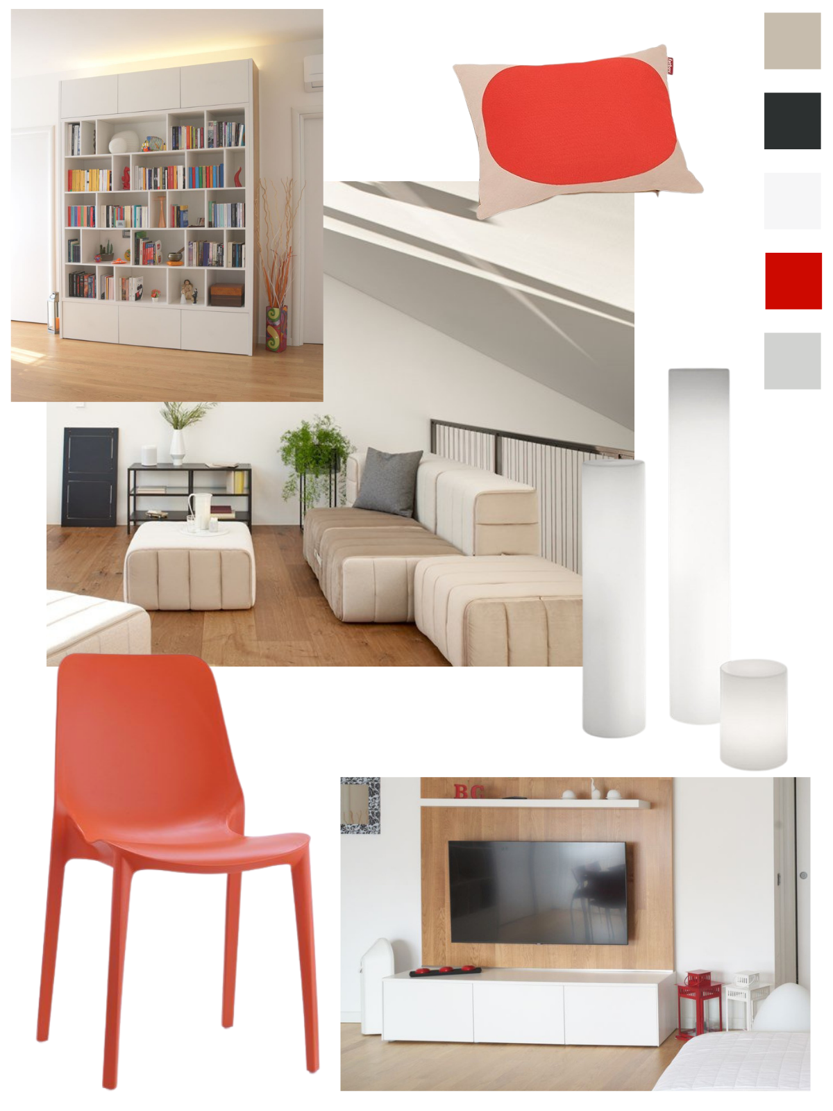 Un soggiorno e una sala da pranzo in un unico spazio, contraddistinto da mobili IKEA che all'occorrenza sono stati ri-studiati e ri-pensati nella collocazione di alcuni elementi divisiori come nella libreria oppure integrati con alcuni elementi su misura, come per il mobile tv.