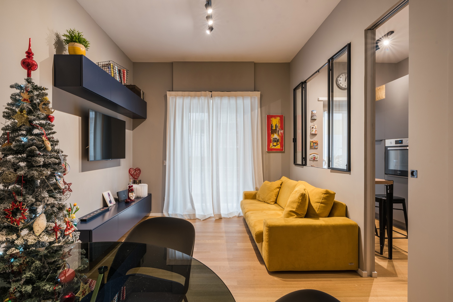 La ristrutturazione di questo bilocale, ampio e luminoso, per una donna indipendente ed affermata, è stato incentrato sulla creazione di spazi vivibili e funzionali.Zona giorno con cucina separata e abitabile con tavolo snack e sgabelli, che all’occorrenza resta in stretta comunicazione con il soggiorno, grazie all’apertura della vetrata e della porta che scompare nel muro.Una libreria in cartongesso realizzata su misura, ospita i numerosi ricordi di viaggi realizzati in tutto il mondo fa da quinta al tavolo tondo creato per succulente cenette con gli amici. Un bagno ospiti dai colori marocchini conclude la parte più pubblica dell’appartamento.Proseguendo troviamo la zona notte, più riservata, con la camera da letto e il bagno in camera. La carta da parati scelta tra tante, colorata e animata da animali esotici, fanno da sfondo alla parete del letto.Il bagno in camera con doccia a vista, permette di giorno di avere luce naturale anche all’interno del bagno cieco, di notte l’illuminazione della doccia crea un punto d’effetto.La scelta del parquet ovunque e del colore grigio caldo alle pareti, sono stati una tavolozza neutra su cui andare a posizionare i vari arredi colorati e i numerosissimi monili appesi ovunque.Foto di @valerio.fotointerni.roma