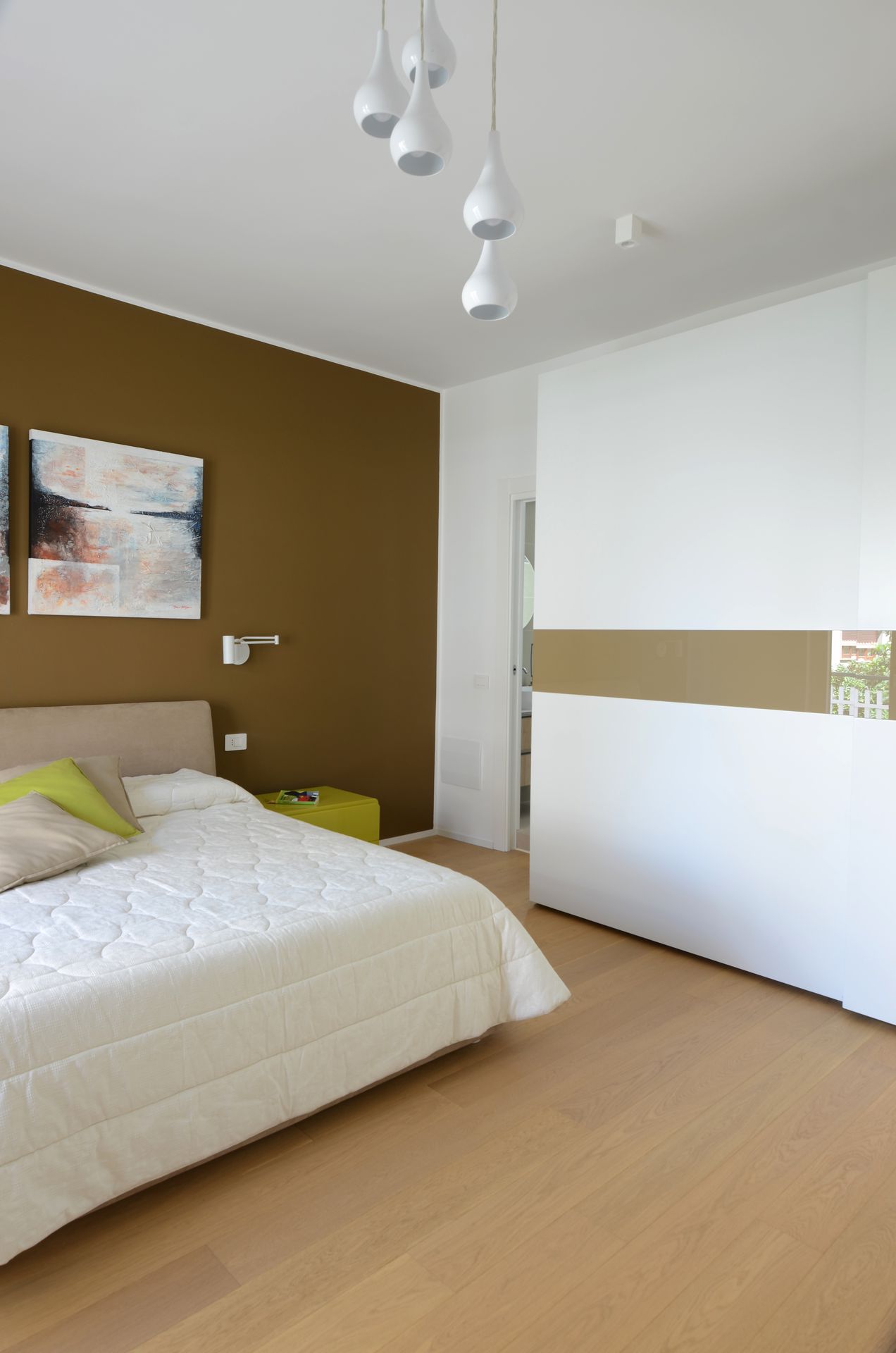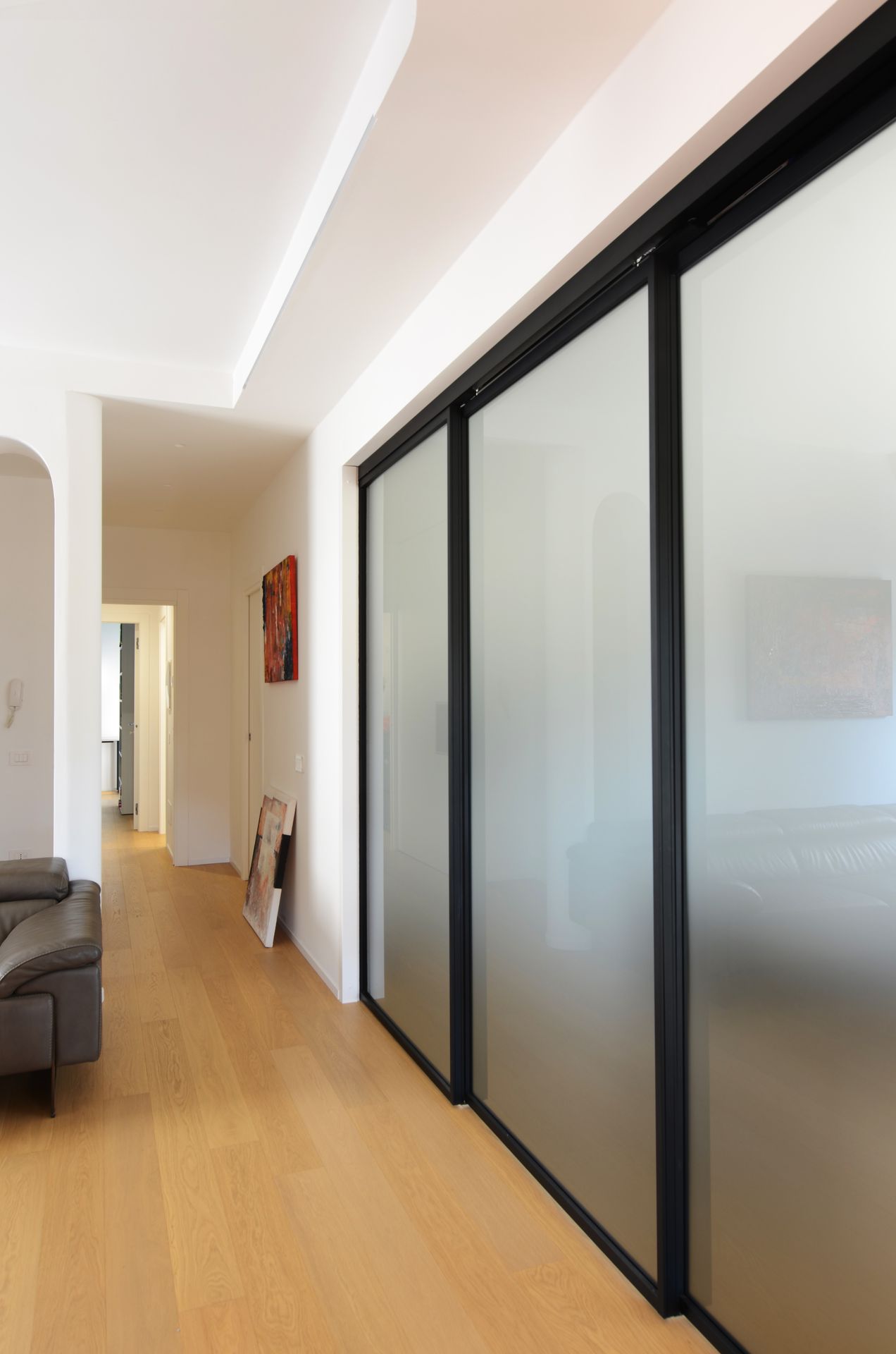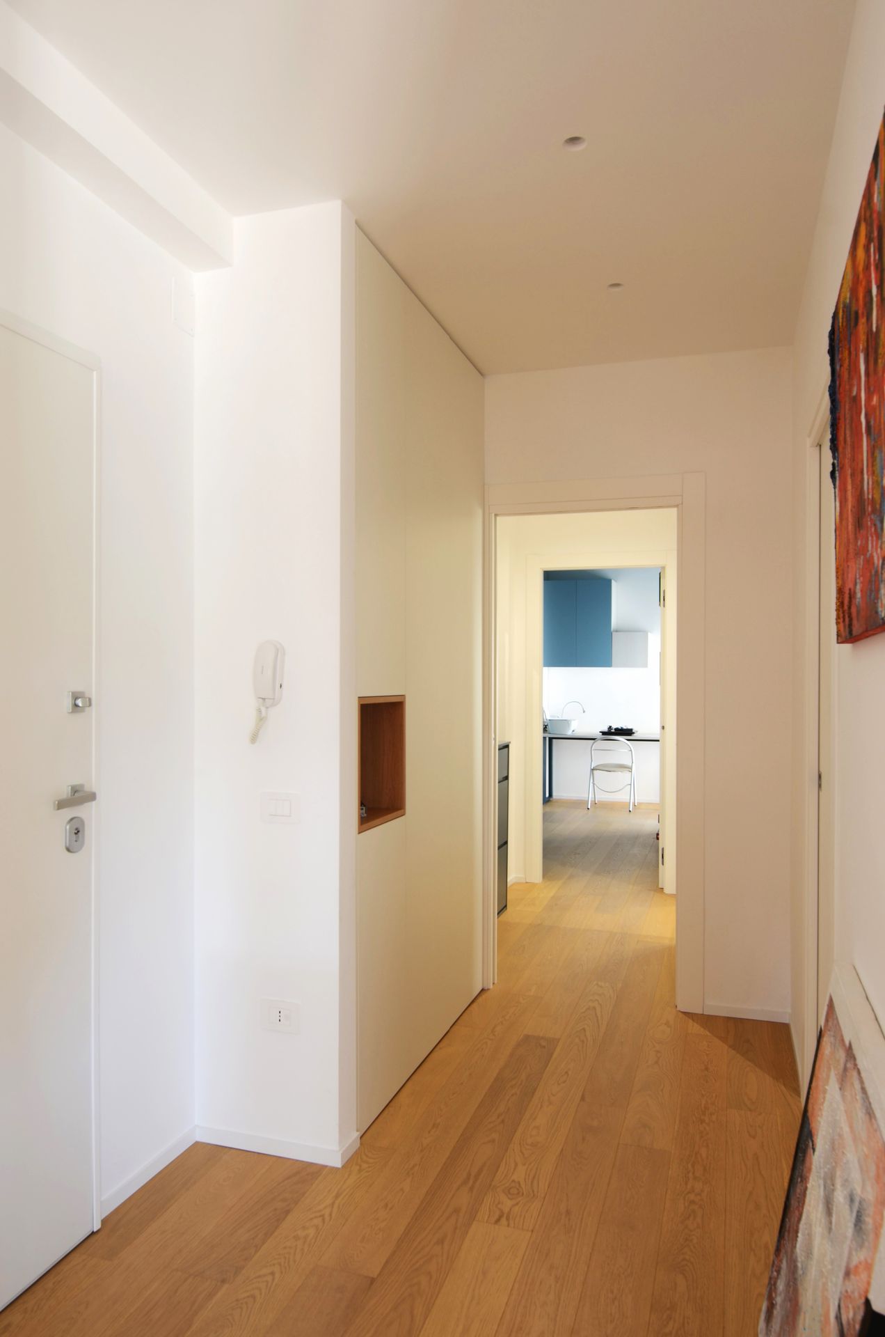 Il progetto nasce dal rientro di una giovane coppia nella propria terra d’origine, dopo un periodo di sospensione collettiva che ha ridefinito priorità e modalità dell’abitare. L’appartamento, costruito negli anni Ottanta, rifletteva un modello ormai superato: sequenze chiuse, gerarchie rigide, spazi incapaci di accogliere una dimensione contemporanea della vita domestica. L’intervento non si limita a una redistribuzione funzionale, ma introduce un nuovo principio ordinatore. Il fulcro del progetto è una collezione musicale — oltre 2500 dischi — che da archivio personale diventa struttura spaziale. La libreria assume così un ruolo ambivalente: elemento di separazione e dispositivo di connessione. Non è un semplice contenitore, ma una soglia abitata, capace di articolare lo spazio e costruire relazioni visive e fisiche tra gli ambienti. Attorno ad essa, la zona giorno si riconfigura come sistema fluido, aperto a diverse modalità d’uso. La casa si adatta, si apre e si chiude. Una porta scorrevole permette di modulare il grado di continuità tra gli spazi principali, introducendo una variabilità che risponde ai ritmi della vita quotidiana. In questo nuovo assetto, la cucina perde il suo carattere marginale e diventa centro relazionale, luogo di condivisione e permanenza. Parallelamente, la zona notte viene ridefinita attraverso una maggiore articolazione funzionale, con la creazione di due ambienti bagno distinti. Il progetto si completa attraverso un uso intenzionale del colore, che non è decorazione ma strumento spaziale. Le superfici contribuiscono a definire profondità, gerarchie e identità, restituendo alla casa un carattere deciso, coerente con quello dei suoi abitanti. L’abitazione si trasforma così in un dispositivo dinamico, in cui memoria, uso e spazio si sovrappongono, costruendo un equilibrio tra dimensione privata e apertura verso l’altro