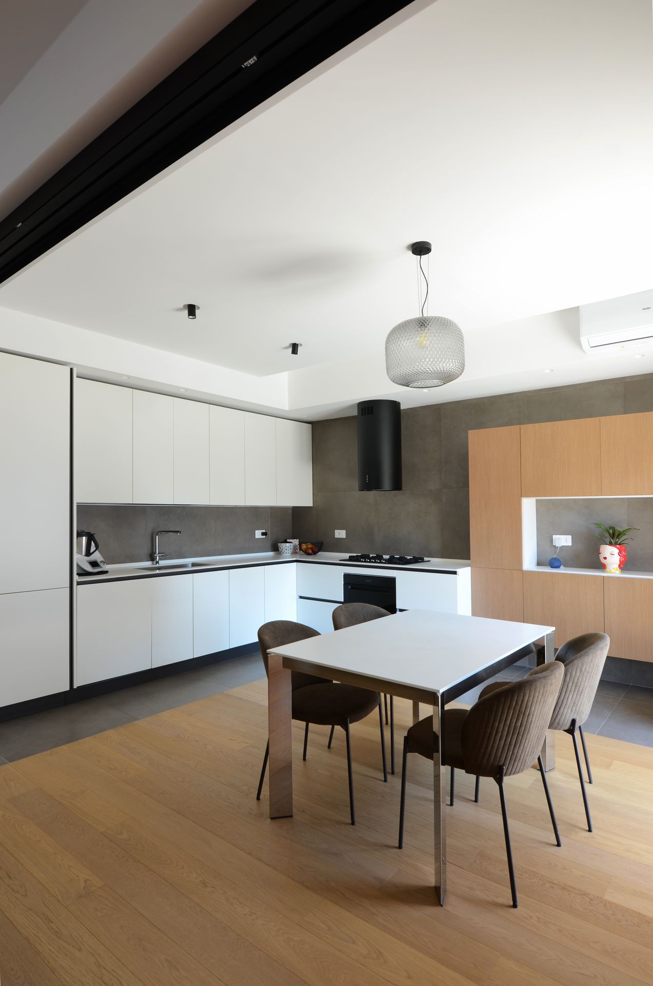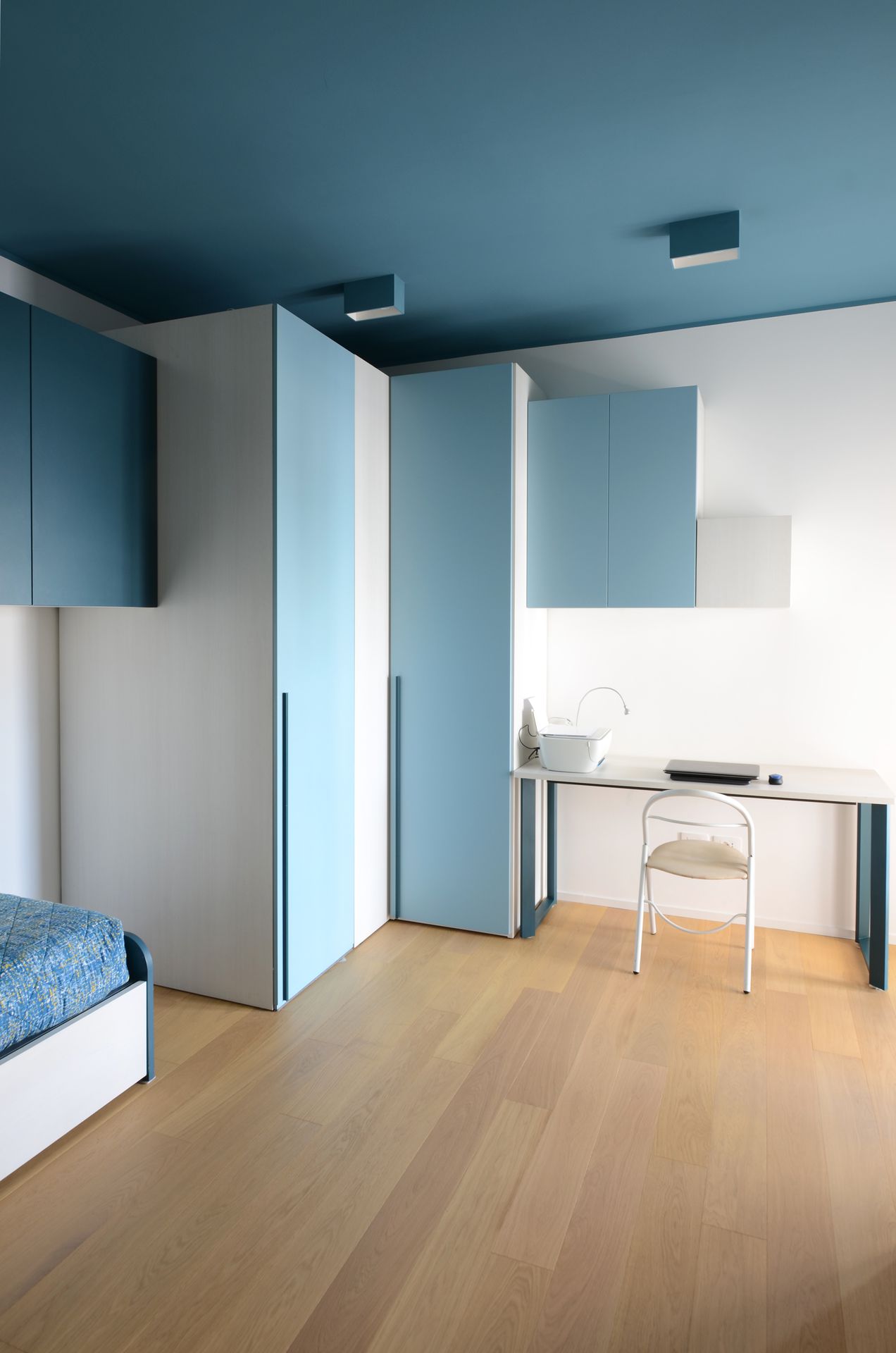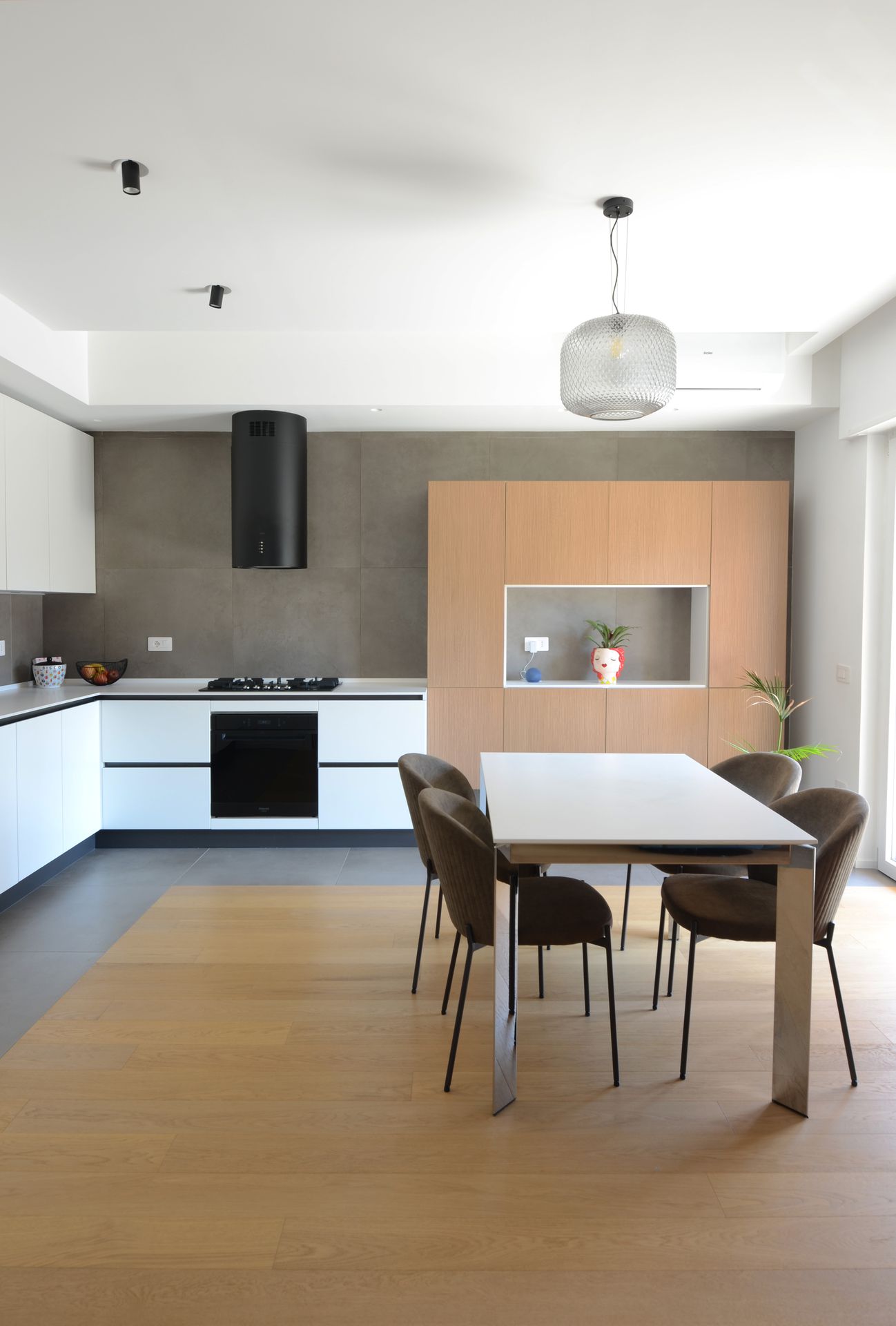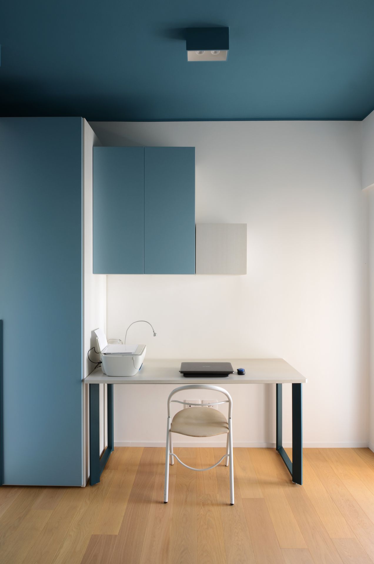 Il progetto nasce dal rientro di una giovane coppia nella propria terra d’origine, dopo un periodo di sospensione collettiva che ha ridefinito priorità e modalità dell’abitare. L’appartamento, costruito negli anni Ottanta, rifletteva un modello ormai superato: sequenze chiuse, gerarchie rigide, spazi incapaci di accogliere una dimensione contemporanea della vita domestica. L’intervento non si limita a una redistribuzione funzionale, ma introduce un nuovo principio ordinatore. Il fulcro del progetto è una collezione musicale — oltre 2500 dischi — che da archivio personale diventa struttura spaziale. La libreria assume così un ruolo ambivalente: elemento di separazione e dispositivo di connessione. Non è un semplice contenitore, ma una soglia abitata, capace di articolare lo spazio e costruire relazioni visive e fisiche tra gli ambienti. Attorno ad essa, la zona giorno si riconfigura come sistema fluido, aperto a diverse modalità d’uso. La casa si adatta, si apre e si chiude. Una porta scorrevole permette di modulare il grado di continuità tra gli spazi principali, introducendo una variabilità che risponde ai ritmi della vita quotidiana. In questo nuovo assetto, la cucina perde il suo carattere marginale e diventa centro relazionale, luogo di condivisione e permanenza. Parallelamente, la zona notte viene ridefinita attraverso una maggiore articolazione funzionale, con la creazione di due ambienti bagno distinti. Il progetto si completa attraverso un uso intenzionale del colore, che non è decorazione ma strumento spaziale. Le superfici contribuiscono a definire profondità, gerarchie e identità, restituendo alla casa un carattere deciso, coerente con quello dei suoi abitanti. L’abitazione si trasforma così in un dispositivo dinamico, in cui memoria, uso e spazio si sovrappongono, costruendo un equilibrio tra dimensione privata e apertura verso l’altro