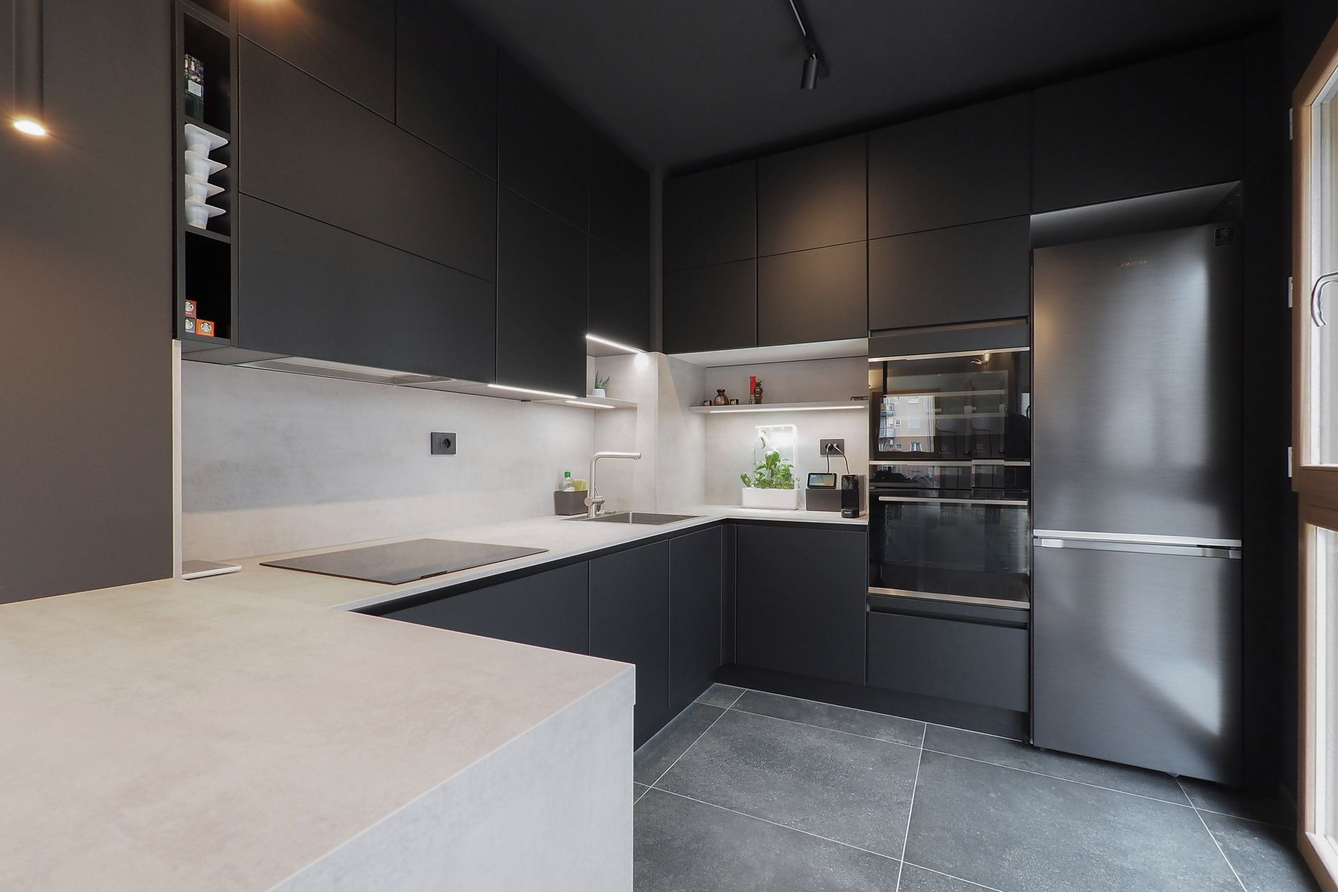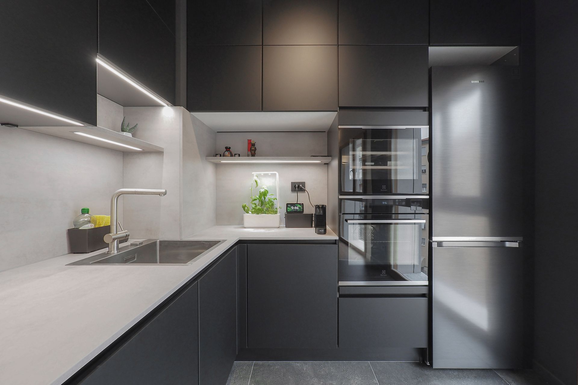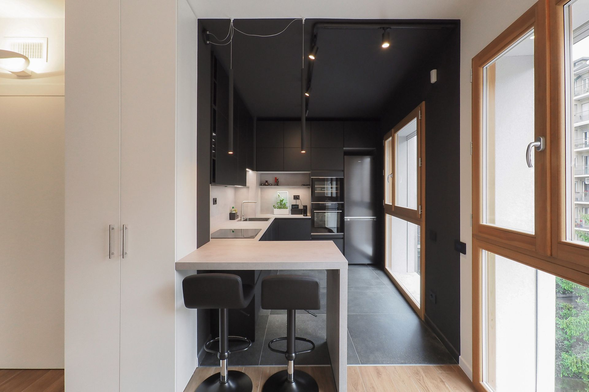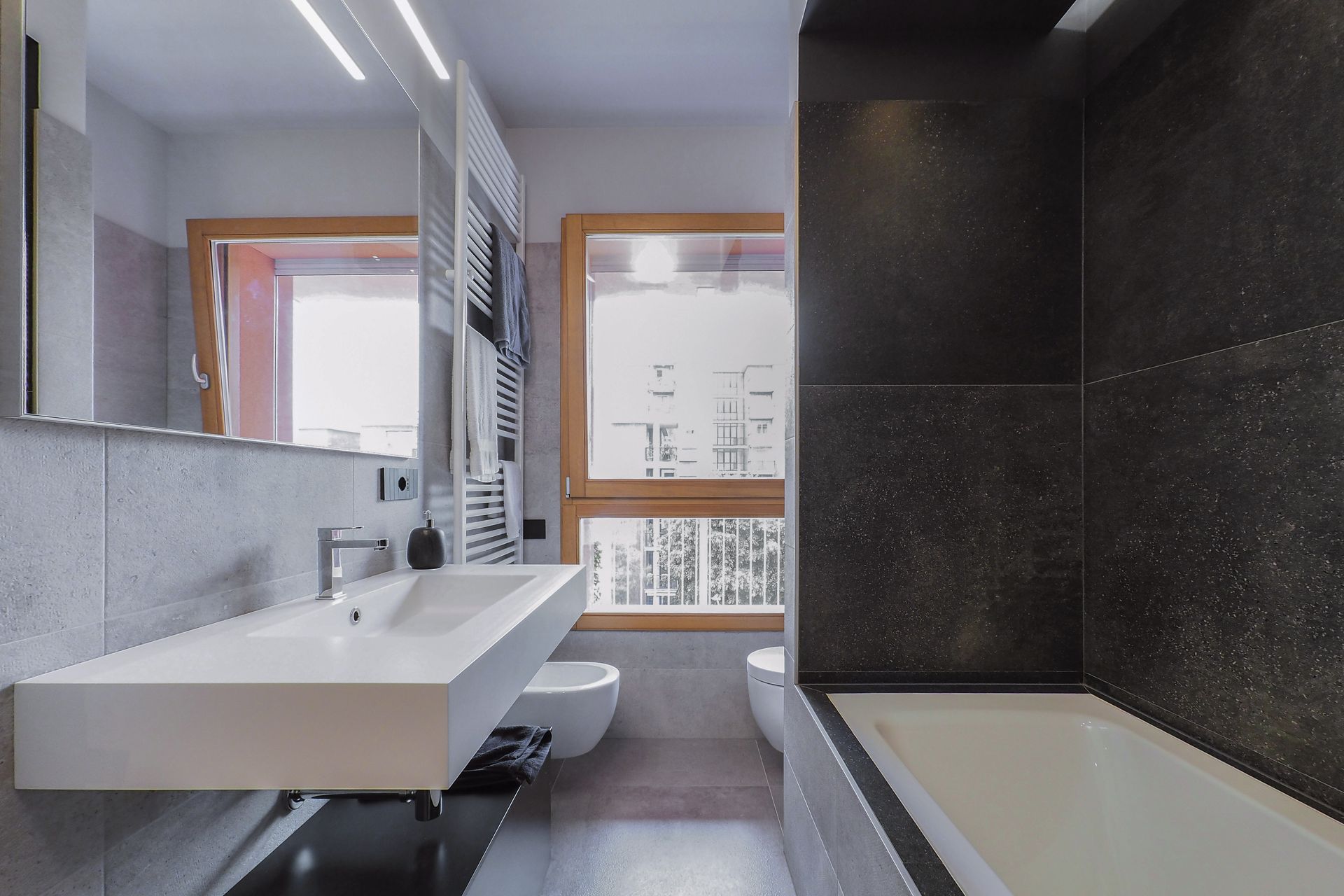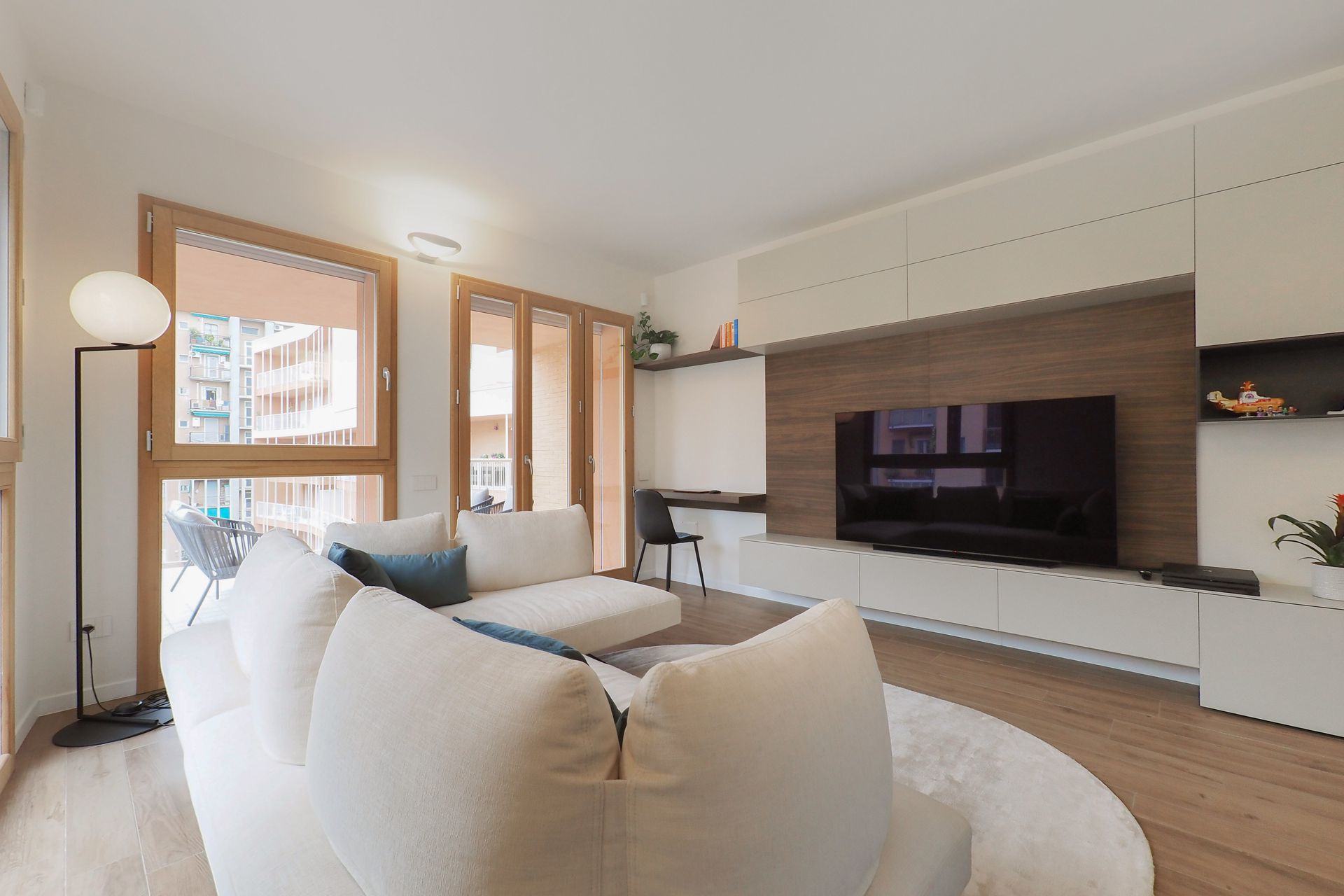 Un appartamento di nuova costruzione, apparentemente già definito in ogni sua parte, diventa il punto di partenza per un progetto di interior capace di riscrivere — con misura e intenzione — il modo di abitare dei suoi nuovi proprietari. Una giovane coppia affida allo spazio il compito di raccontare la propria identità, superando la neutralità tipica delle realizzazioni contemporanee per costruire un ambiente riconoscibile, stratificato e profondamente personale.La prima sfida non è stata progettuale in senso stretto, ma percettiva. Rendere leggibili gli spazi, farli immaginare e vivere prima ancora della loro realizzazione: è qui che il progetto prende forma, attraverso un processo di rappresentazione accurato e immersivo. Le immagini fotorealistiche diventano strumento di costruzione del dialogo, permettendo ai committenti di comprendere volumi, proporzioni e relazioni, trasformando l’astrazione del disegno in esperienza concreta.L’intervento si innesta con rispetto sull’impianto distributivo esistente, senza alterarne la struttura, ma lavorando per sottrazione e precisione, con l’obiettivo di amplificarne le potenzialità latenti. Non si tratta di una rivoluzione formale, ma di una riscrittura silenziosa, capace di ridefinire gerarchie e centralità attraverso pochi, calibrati gesti.Il segno più deciso si manifesta nella zona cucina. Originariamente marginale, quasi nascosta nella planimetria del costruttore, viene trasformata in elemento generatore dell’intero progetto. Un volume compatto, un cubo nero, emerge nello spazio con forza plastica, diventando fulcro visivo e funzionale della casa. La scelta cromatica, in continuità con le inclinazioni dei proprietari, accentua il carattere monolitico dell’elemento, che si impone come presenza scultorea e ordinatrice, capace di riorganizzare le relazioni tra gli ambienti.Intorno a questo nucleo, il soggiorno si apre e si distende verso il terrazzo, instaurando un dialogo diretto con la luce naturale e con l’esterno. La parete TV, disegnata su misura, non è solo un elemento contenitivo ma un dispositivo multifunzionale, che integra una postazione di lavoro domestico in modo discreto e coerente. In questo contesto, il divano con schienali freestanding introduce una dimensione dinamica: lo spazio si trasforma, si adatta, si riconfigura secondo le necessità quotidiane, riflettendo un’idea fluida dell’abitare contemporaneo.Il corridoio che conduce alla zona notte diventa occasione per un intervento puntuale e intelligente: una lavanderia completamente integrata, nascosta in una soluzione su misura, restituisce ordine e funzionalità senza interrompere la continuità visiva. Ancora una volta, è il dettaglio a costruire la qualità complessiva dello spazio.Il tema del volume puro ritorna nel bagno principale, dove il concetto del “cubo” viene reinterpretato per definire l’area vasca. Qui, la geometria diventa strumento di organizzazione e allo stesso tempo elemento espressivo, contribuendo a creare un ambiente intimo e coerente con il linguaggio dell’intero progetto.A unificare gli spazi è la scelta della pavimentazione in gres effetto legno, una superficie continua che introduce calore e matericità, contrapponendosi alla nettezza dei volumi.Questo registro materico si ritrova nei dettagli d’arredo — nel pannello retro TV, nel piano del tavolo — generando una trama sottile di richiami che attraversa l’intero appartamento.Il risultato è un interno che lavora per equilibri: tra pieni e vuoti, tra segni forti e interventi discreti, tra funzione e narrazione. Un progetto che dimostra come anche all’interno di un involucro apparentemente rigido sia possibile costruire un’identità precisa, dove ogni scelta — dal gesto più evidente al dettaglio più silenzioso — contribuisce a definire un nuovo modo di abitare.