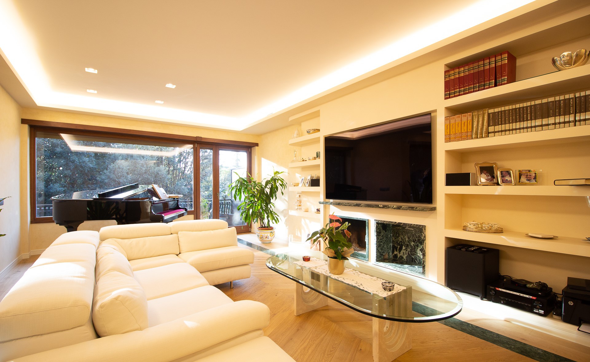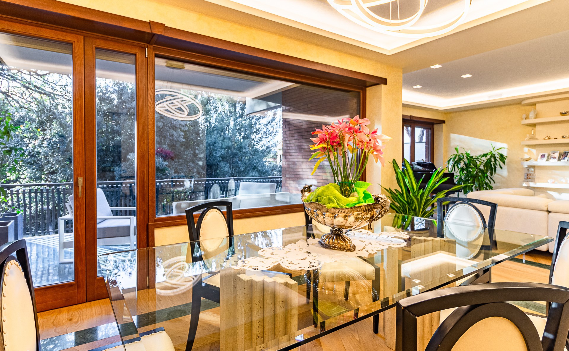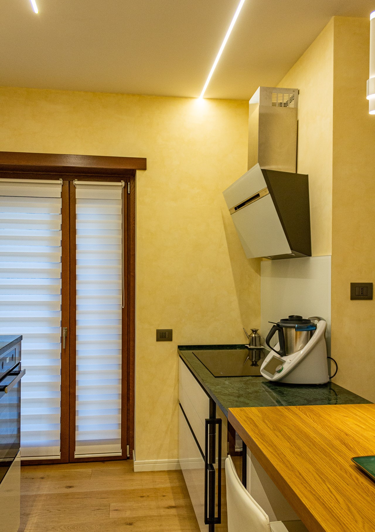 Nel cuore di Roma Nord, sorge una testimonianza della nostra capacità di rinnovare radicalmente gli spazi abitativi, trasformando un tradizionale appartamento in un capolavoro di design e funzionalità. Questo progetto è stato concepito per soddisfare il desiderio dei proprietari di avere una casa con una porzione importante di rappresentanza, che rispecchiasse il loro gusto raffinato e la loro passione per l’accoglienza degli ospiti.La peculiarità di questo appartamento, l’essere dotato di due ingressi distinti, ci ha offerto l'opportunità di delineare con precisione gli spazi pubblici da quelli privati. La divisione ha permesso di creare una zona riservata alla famiglia, dedicata alle camere da letto e ai bagni, e una parte pubblica, destinata all'accoglienza e alla socializzazione.All’entrata, l'ospite è accolto da una vetrata imponente sul verde, elemento distintivo dell'appartamento che introduce immediatamente alla grande zona di rappresentanza. Questo spazio è stato progettato con un'attenzione particolare alla funzionalità e all'estetica: un ingresso arricchito da armadiature su misura per gli ospiti si fonde con una lunga libreria a muro in cartongesso, realizzata appositamente per questo ambiente. Il camino esistente in marmo verde, viene incastonato nella libreria e la pavimentazione in parquet ha due diverse tessiture enfatizzate dalla cornice in marmo Guatemala come quello del camino. La transizione tra la zona soggiorno e la zona pranzo è resa fluida da pannelli scorrevoli, che permettono di modificare la percezione dello spazio in base alle necessità. La cucina è accessibile sia dalla zona pubblica che da quella privata, garantendo una flessibilità negli spostamenti all'interno dell'appartamento.Dal punto di vista impiantistico, l'appartamento è stato oggetto di un intervento innovativo, con l'installazione di sistemi di riscaldamento e raffrescamento a pavimento che garantiscono condizioni ambientali ottimali, unendo comfort abitativo ad efficienza energetica.L'Appartamento Fleming rappresenta l'espressione della nostra filosofia progettuale, che mira a creare spazi che siano allo stesso tempo belli e funzionali, capaci di rispondere alle esigenze dei nostri clienti senza mai trascurare l'eleganza e lo stile. Un progetto che testimonia come, attraverso l'attenzione ai dettagli e la scelta di materiali di qualità, sia possibile trasformare qualsiasi spazio in un ambiente caldo e accogliente, che parla di chi ci vive.