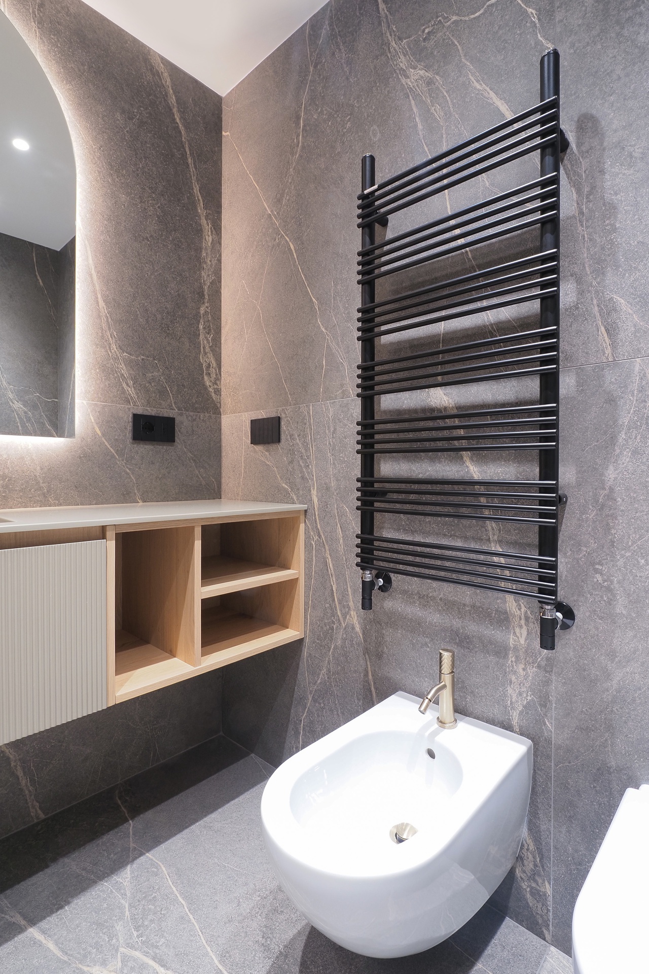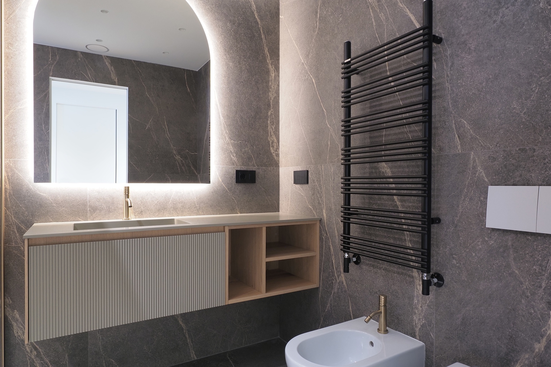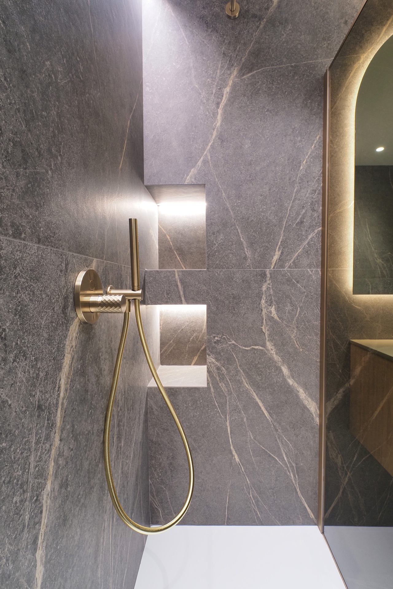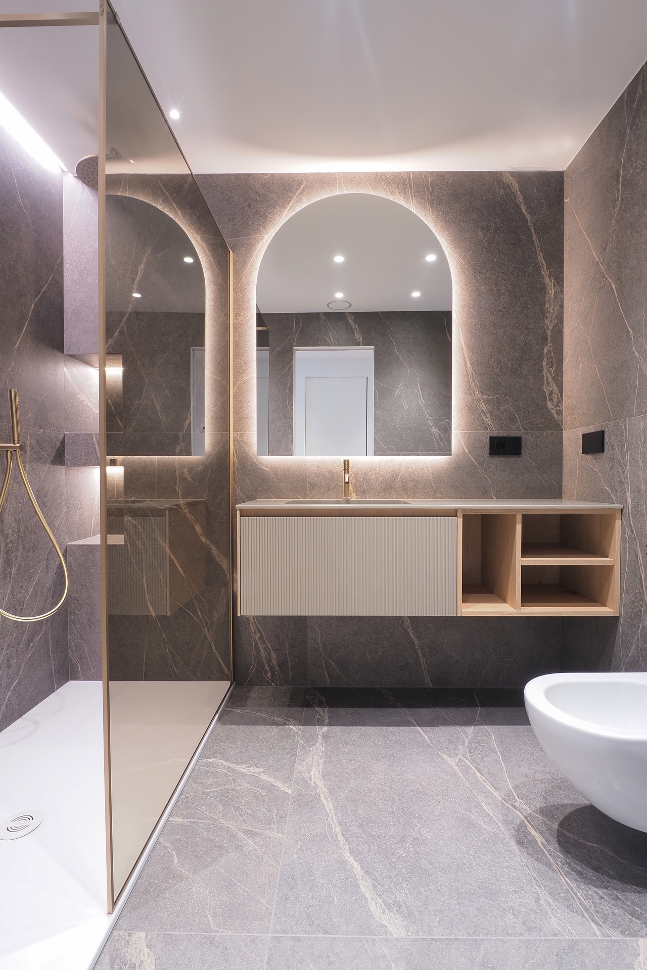 Nel cuore di Brera, la zona più esclusiva di Milano, nasce AppartamentoM14, una residenza dal grande potenziale finalmente valorizzata da una ristrutturazione totale, studiata per far emergere tutta la sua personalità.Il legno domina gli ambienti, creando un'atmosfera calda e accogliente. Un deciso contrasto cromatico tra pavimento e soffitto sottolinea le altezze dello spazio, evocando storie e memorie custodite dal tempo.All’interno, i contrasti cromatici e materici diventano protagonisti assoluti, firma distintiva dello studio Desearq. Pareti bianche fanno da sfondo elegante a elementi antracite come radiatori, impianti elettrici e maniglie delle porte, generando un effetto sofisticato e contemporaneo.Il bagno diventa il cuore scenografico della casa: un rivestimento effetto pietra richiama atmosfere antiche e naturali, impreziosite da dettagli contemporanei in oro satinato che donano luminosità e fascino moderno. Giochi di luce studiati con attenzione esaltano ulteriormente lo spazio.L’illuminazione, incassata e nascosta nel soffitto con discreti faretti bianchi, dialoga con applique a parete dal rivestimento a specchio che riflettono e amplificano l'ambiente, fondendosi con esso e conferendogli una raffinata eleganza senza tempo.