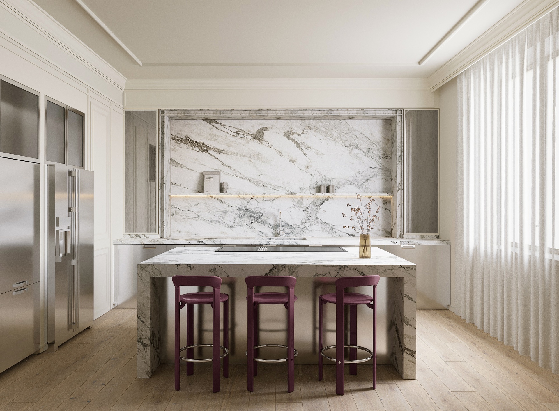 Il progetto racconta un attico contemporaneo nel cuore di Milano, concepito per offrire un equilibrio impeccabile tra design, comfort e qualità degli spazi abitati. Situato all’ultimo piano di un edificio signorile, questo appartamento si distingue per un linguaggio architettonico raffinato e per ambienti pensati per accogliere, sorprendere e vivere pienamente la città.Il soggiorno rappresenta il fulcro della residenza: un grande open space scenografico dove statue di notevoli dimensioni diventano veri e propri elementi scultorei d’arredo. L’acquario integrato dona movimento e una presenza vivida, mentre l’ampio tavolo da pranzo e la cucina attrezzata sono progettati per ospitare cene e momenti conviviali, creando un ambiente dinamico e coinvolgente.La zona notte è concepita come un rifugio intimo e funzionale. La master bedroom è dotata di bagno ensuite e cabina armadio, garantendo privacy e comfort. Completano il layout due camere per i bambini e una playroom dedicata, pensata come spazio flessibile che favorisce gioco, creatività e crescita.Materiali di alta qualità, una palette cromatica equilibrata e soluzioni su misura enfatizzano l’eleganza degli interni, mentre grandi aperture e affacci sulla città valorizzano la luce naturale.Il progetto integra un approccio attento al benessere quotidiano, includendo elementi che ottimizzano il comfort abitativo e soluzioni orientate all’efficienza energetica. L’attico diventa così un luogo dove estetica, funzionalità e vita urbana trovano una sintesi armoniosa e contemporanea.