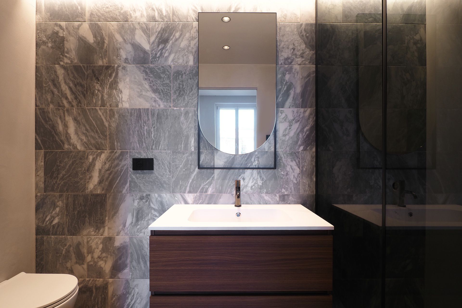 Da un intero piano di una banca nasce una nuova idea di abitare.Circa 500 mq completamente ripensati e trasformati in cinque appartamenti di lusso, nel cuore di Milano, a pochi passi da Piazza Duomo, affacciati su una delle piazze più suggestive della città.Questo appartamento è uno dei cinque ottenuti dal frazionamento. La particolare conformazione dello spazio ha guidato il progetto verso una distribuzione scandita da un lungo corridoio che conduce alla zona notte.Invece di nasconderlo, lo abbiamo scelto come elemento identitario del progetto: un percorso architettonico valorizzato da una gola luminosa continua, una linea di luce che accompagna e unisce simbolicamente la zona giorno alla zona notte.La zona giorno si apre in un ampio living, inondato di luce naturale grazie alle grandi finestre affacciate sulla piazza. La cucina è raccolta in una nicchia disegnata su misura e separata dall’ingresso da vetri fissi: una divisione leggera, che definisce gli spazi senza mai nasconderli, lasciando la cucina visibile e protagonista fin dal primo sguardo.L’illuminazione nera, dal segno deciso e contemporaneo, non scompare ma diventa parte integrante dell’architettura, rafforzando il carattere dello spazio e il gioco di contrasti.Sempre nella zona giorno, una grande vetrata conduce allo studio — o terza camera — dotato di bagno en suite, pensato come ambiente flessibile e riservato.Il corridoio accompagna invece verso la zona più intima della casa: un bagno/lavanderia, una cabina armadio, un secondo bagno, una camera matrimoniale e infine la master bedroom, concepita come una vera suite, con cabina armadio passante, letto king size e bagno en suite.Ogni scelta materica è stata guidata da un preciso intento: parquet di prima selezione, resine e marmi definiscono l’atmosfera degli ambienti, mentre rubinetterie con finiture speciali sono state selezionate per garantire qualità e durata nel tempo.Sotto la superficie, la parte invisibile che fa davvero la differenza: riscaldamento autonomo a pompa di calore, isolamento completo di pareti, pavimenti e soffitti. Scelte progettuali che migliorano il comfort abitativo, riducono i consumi e rendono ogni appartamento più silenzioso, efficiente e sostenibile.Un progetto pensato per chi cerca il meglio.Per chi desidera un’estetica capace di emozionare e una qualità destinata a durare nel tempo.