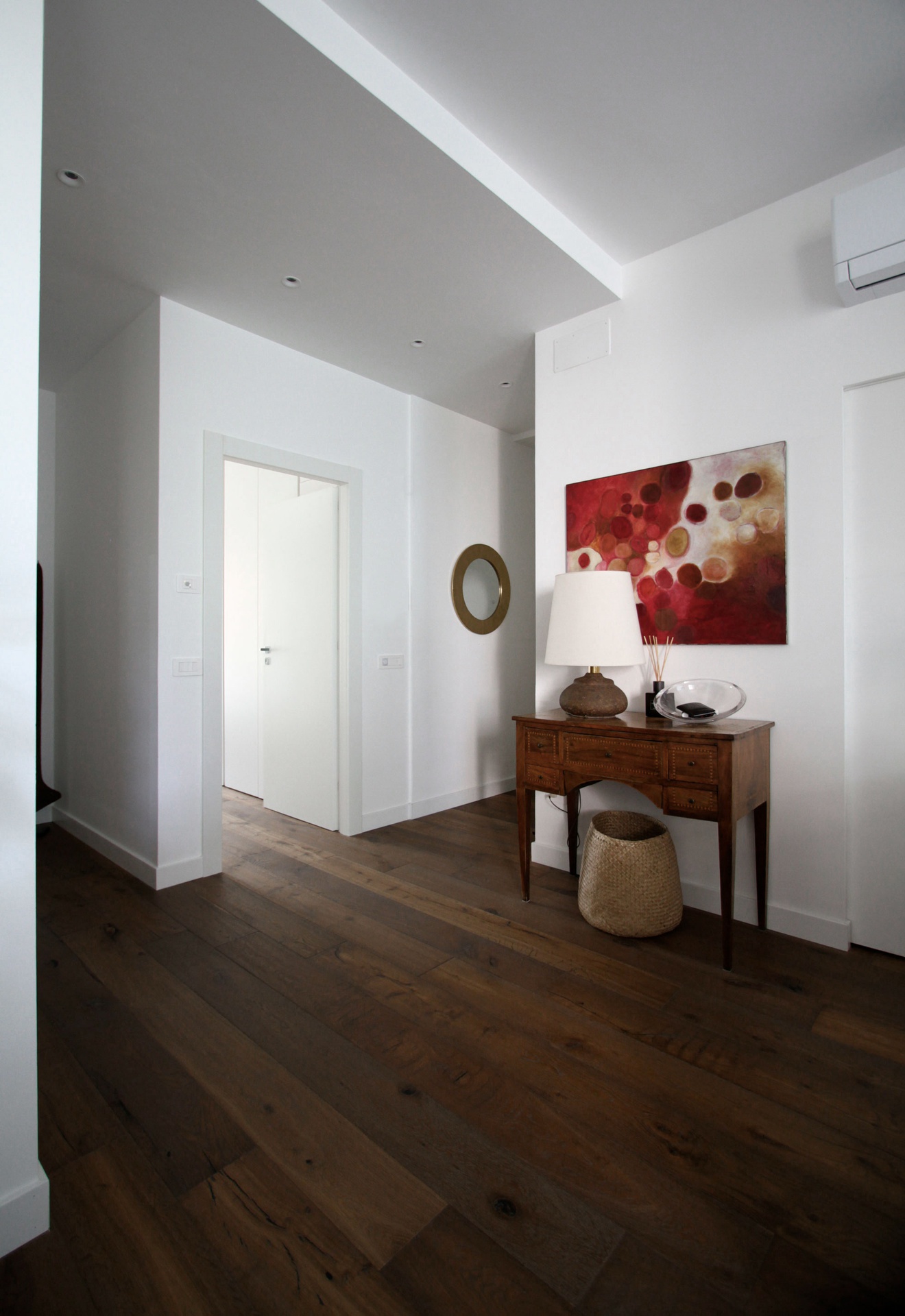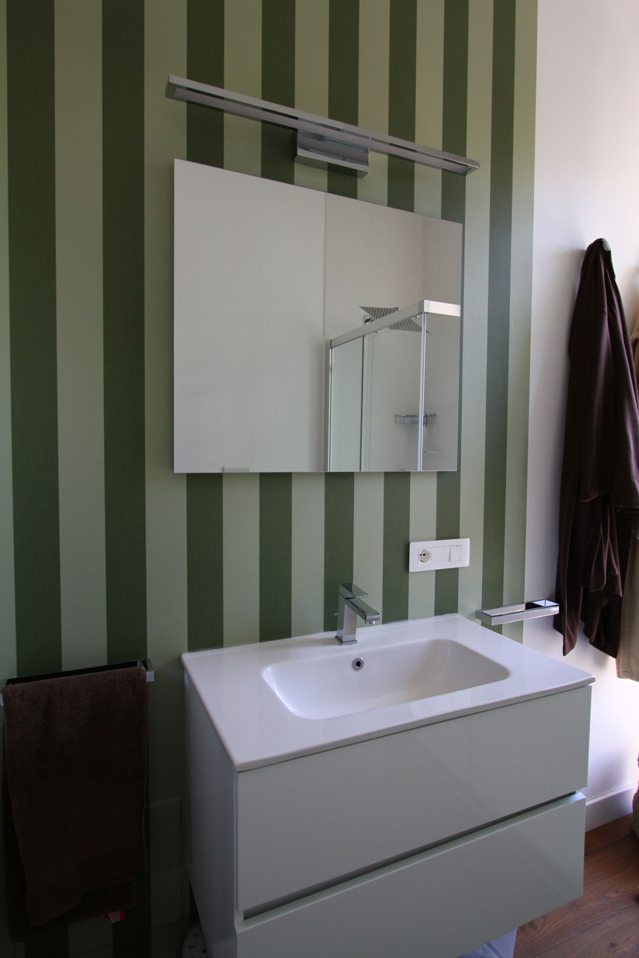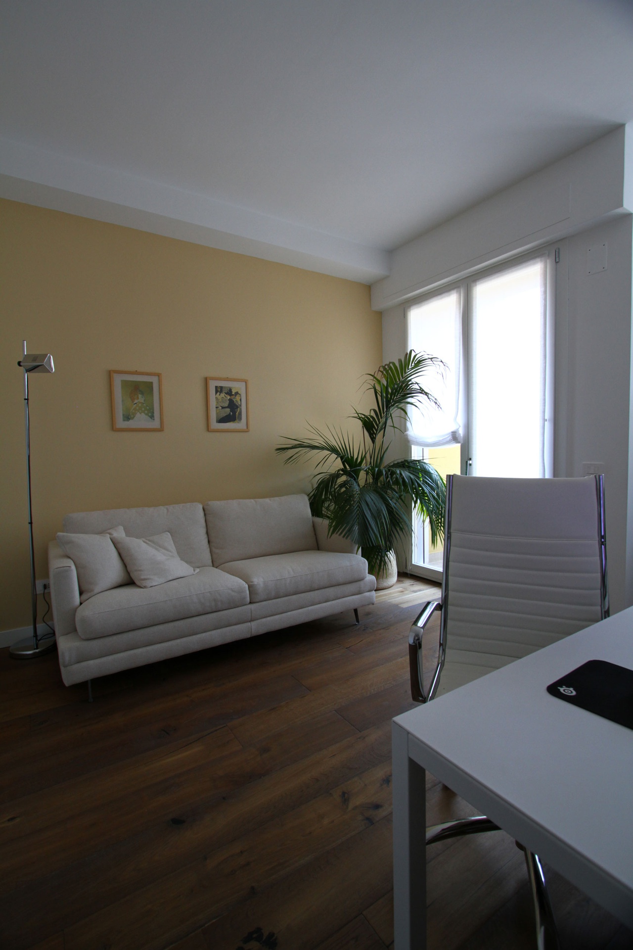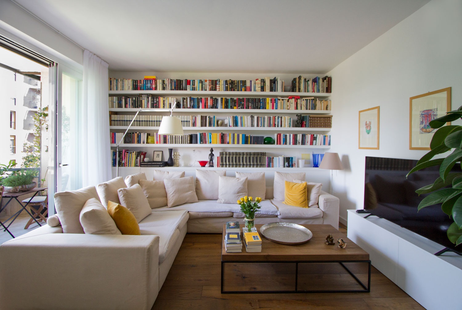 Mi ha contattato una coppia che aveva venduto la loro casa precedente: ora che i figli sono cresciuti, hanno preferito acquistare un’abitazione pensata solo per loro due. L’obiettivo principale era seguire i lavori di ristrutturazione, integrare alcuni arredi provenienti dalla vecchia casa e creare molti spazi contenitori. Abbiamo inserito in modo molto armonioso il tavolo e il divano della loro precedente abitazione, abbinandoli alla nuova cucina, e abbiamo realizzato una libreria su misura ispirata a quella che avevano prima. Il risultato è un soggiorno che riflette pienamente la personalità dei proprietari: la loro passione per i viaggi e per la lettura, il loro gusto e la loro sensibilità per i dettagli. Tutti gli armadi della casa sono stati realizzati su misura seguendo i nostri disegni. Nella camera da letto, il muro verde richiama la tonalità di verde della carta da parati del bagno. Per il bagno degli ospiti è stato scelto un pattern floreale. La casa accoglie anche alcuni mobili antichi, che abbiamo armonizzato con il nuovo design contemporaneo, unendo la storia della famiglia alla loro nuova abitazione.