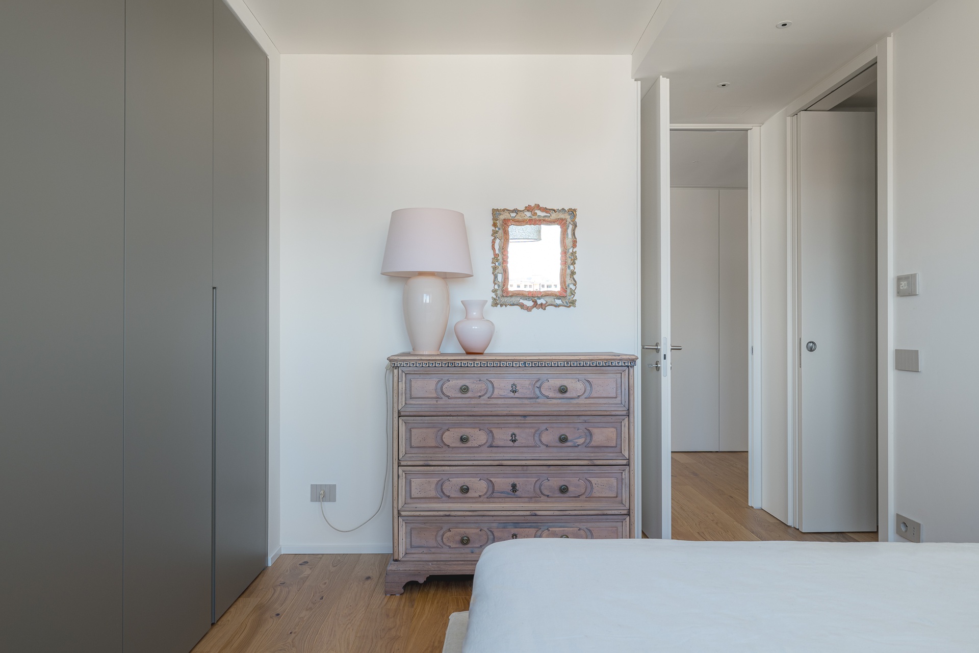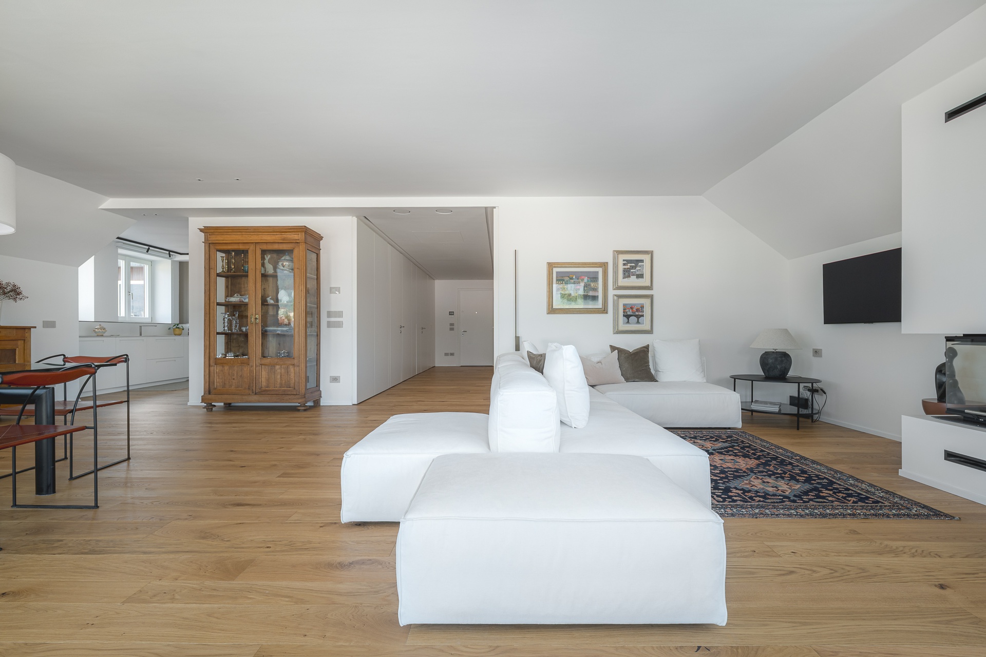 La luce attraversa l’attico e diventa un elemento di continuità tra interno ed esterno.Entra, si riflette sulle superfici chiare, accompagna i volumi e ne definisce i confini senza interromperli.Gli spazi dialogano tra loro attraverso una palette neutra e luminosa, pensata per amplificare la percezione di apertura e leggerezza.I colori chiari non impongono una presenza, ma lasciano che sia la luce a costruire l’atmosfera, variabile e viva nel corso della giornata.L’attico si racconta così: un equilibrio misurato tra architettura e luce, dove l’interno non si chiude mai davvero, ma resta in costante relazione con ciò che lo circonda.