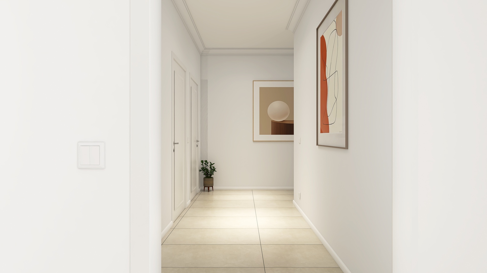 Un grande attico nella Milano dei grattacieli. La famiglia è una coppia di professionisti con una neonata, hanno chiesto il mio aiuto soprattutto per l'enorme open space. La richiesta era di ottenere un ambiente accogliente nonostante le dimensioni, e di creare un'atmosfera moderna e di carattere, senza rinunciare alla praticità nella fruizione degli spazi e ovviamente nei rivestimenti utilizzati. In tutta casa abbiamo posato un bellissimo gres effetto pietra Marazzi di grandi dimensioni, LIMESTONE IVORY 60X120, dall'aspetto signorile, pulito e di facile manutenzione, le stesse piastrelle sono state utilizzate come rivestimento verticale anche nei bagni e come paraspruzzi in cucina.