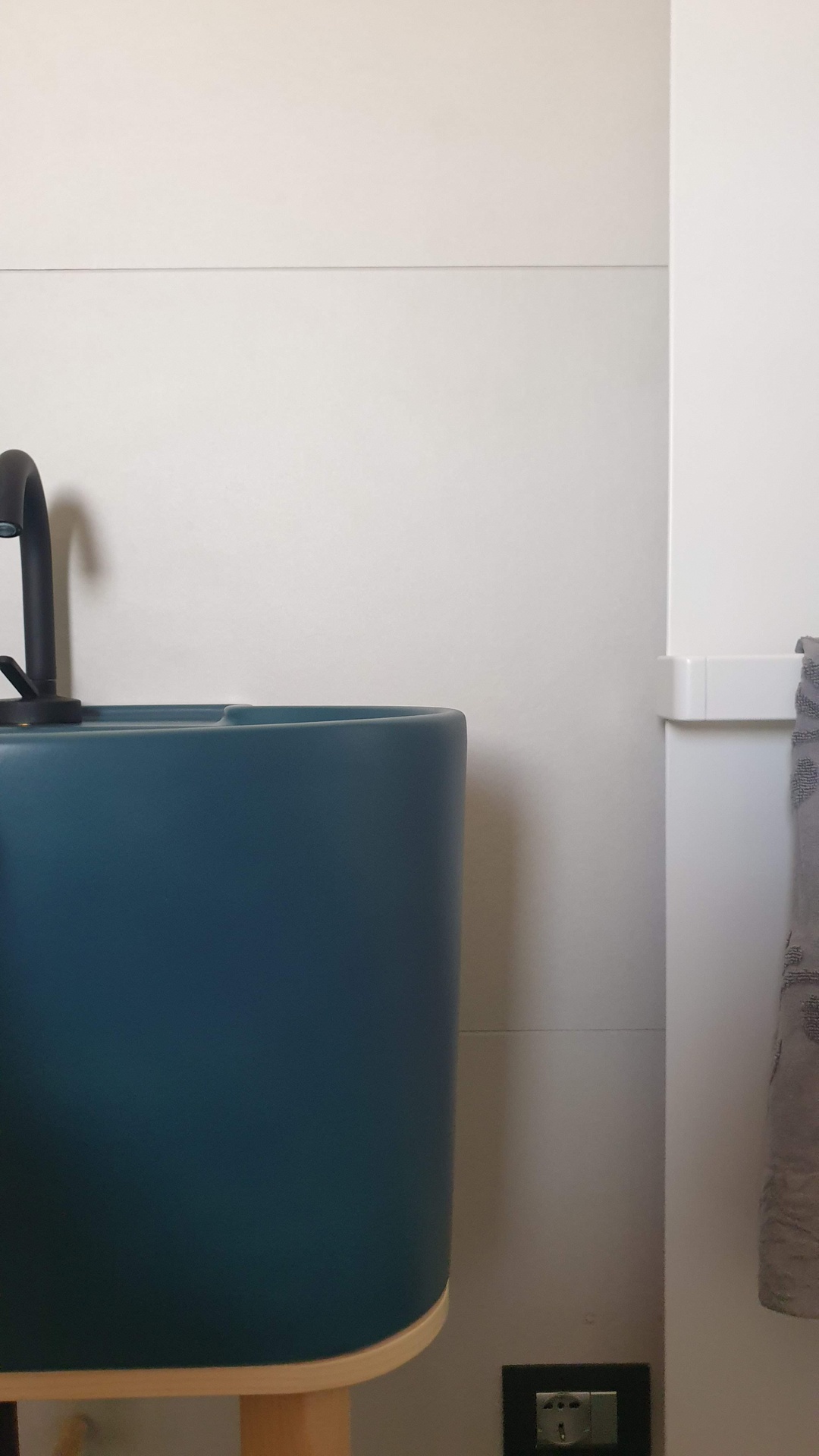 Il relooking di questo bagno-lavanderia doveva rispondere a precise esigenze di accessibilità del box doccia, nel rispetto però della duplice funzione di questo spazio, che è anche zona lavanderia. Per tale ragione, dopo aver messo in colonna gli elettrodomestici, è stato scelto un lavabo comodo, profondo e protagonista, capace di assolvere le funzioni di un classico lavatoio. La doccia walk-in quasi scompare nel suo ingombro complessivo, risultando comunque comoda e spaziosa.