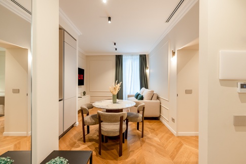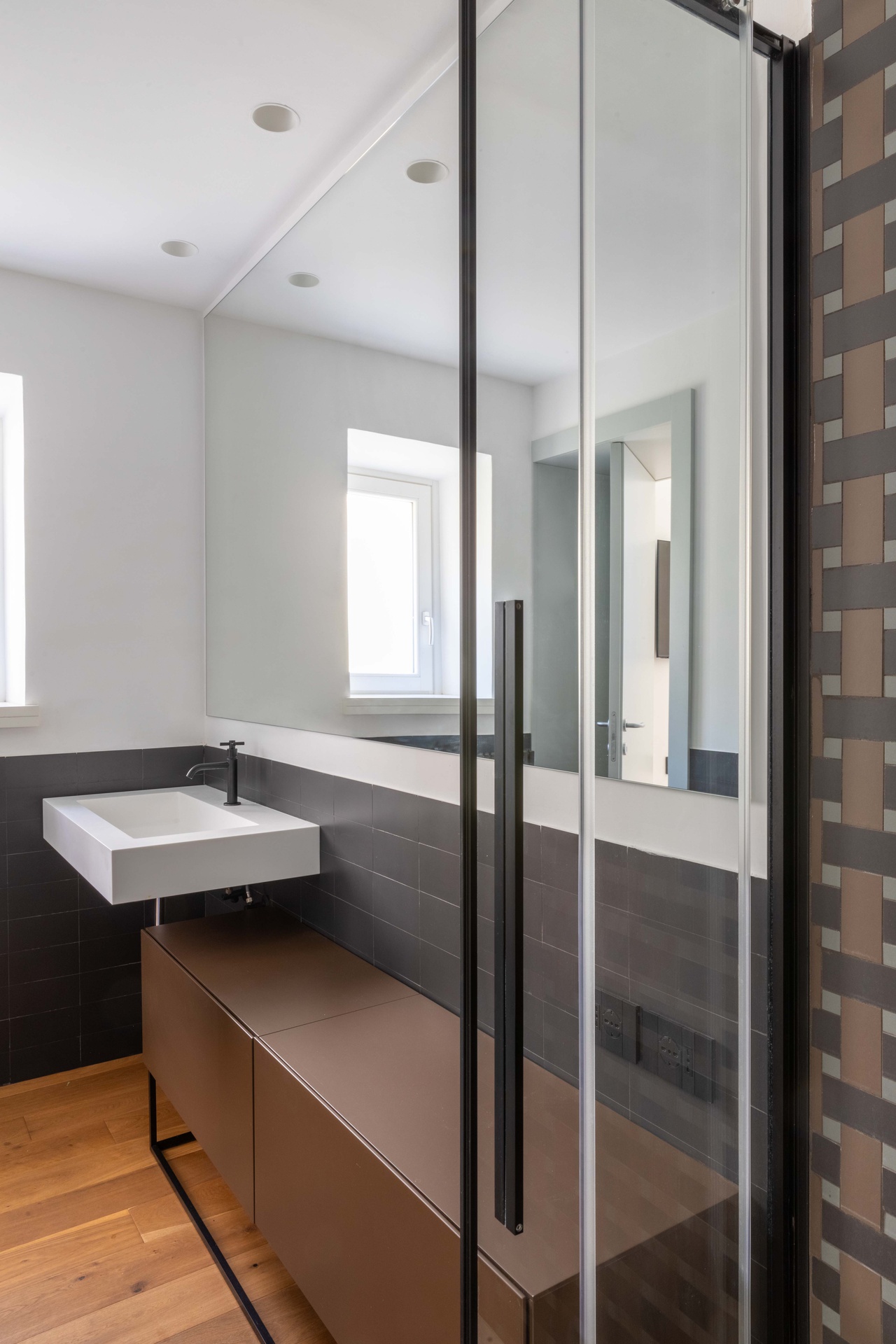 Questo appartamento si trova nel cuore di Roma, nella zona di campo dei Fiori, all’interno dello storico palazzo crivelli, conosciuto anche come La casa dei pupazzi, costruito intorno al 1538, su commissione di un orefice milanese da cui il nome dell’edificio. Il pregio di questo Palazzo è che, assieme a palazzo spada, rappresenta un “unicum” in quanto sono gli unici due edifici di Roma a possedere una facciata interamente decorata a stucchi. L’unità immobiliare oggetto dell’intervento ha, data la storicità, una struttura in muratura piuttosto rigida, in cui gli ambienti sono chiusi e definiti dalle murature portanti non plasmabili per una diversa distribuzione. L’intervento progettuale aveva lo scopo di rendere l’immobile a misura ed immagine del futuro inquilino: un’organizzazione degli spazi dell’ambito notte per renderli più proporzionati e confortevoli e la riqualificazione dei materiali di finitura in armonia con l’importante contesto. La terrazza, ad una quota sopraelevata rispetto all’appartamento, è stata valorizzata e pensata con un arredo, in acciaio corten, realizzato su misura per una godibilità massima della superficie nella visuale più panoramica
