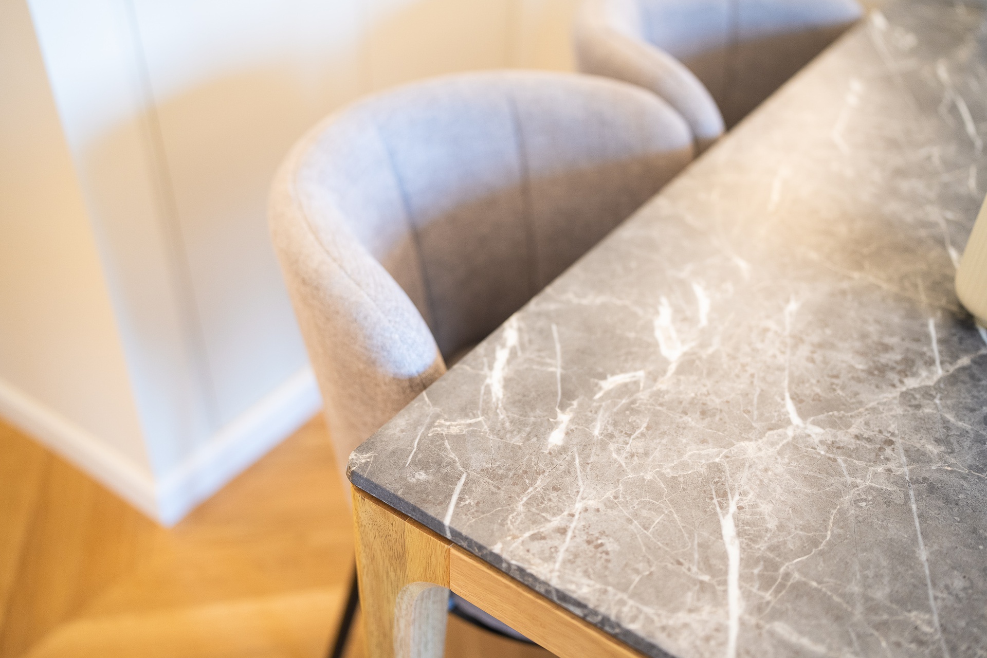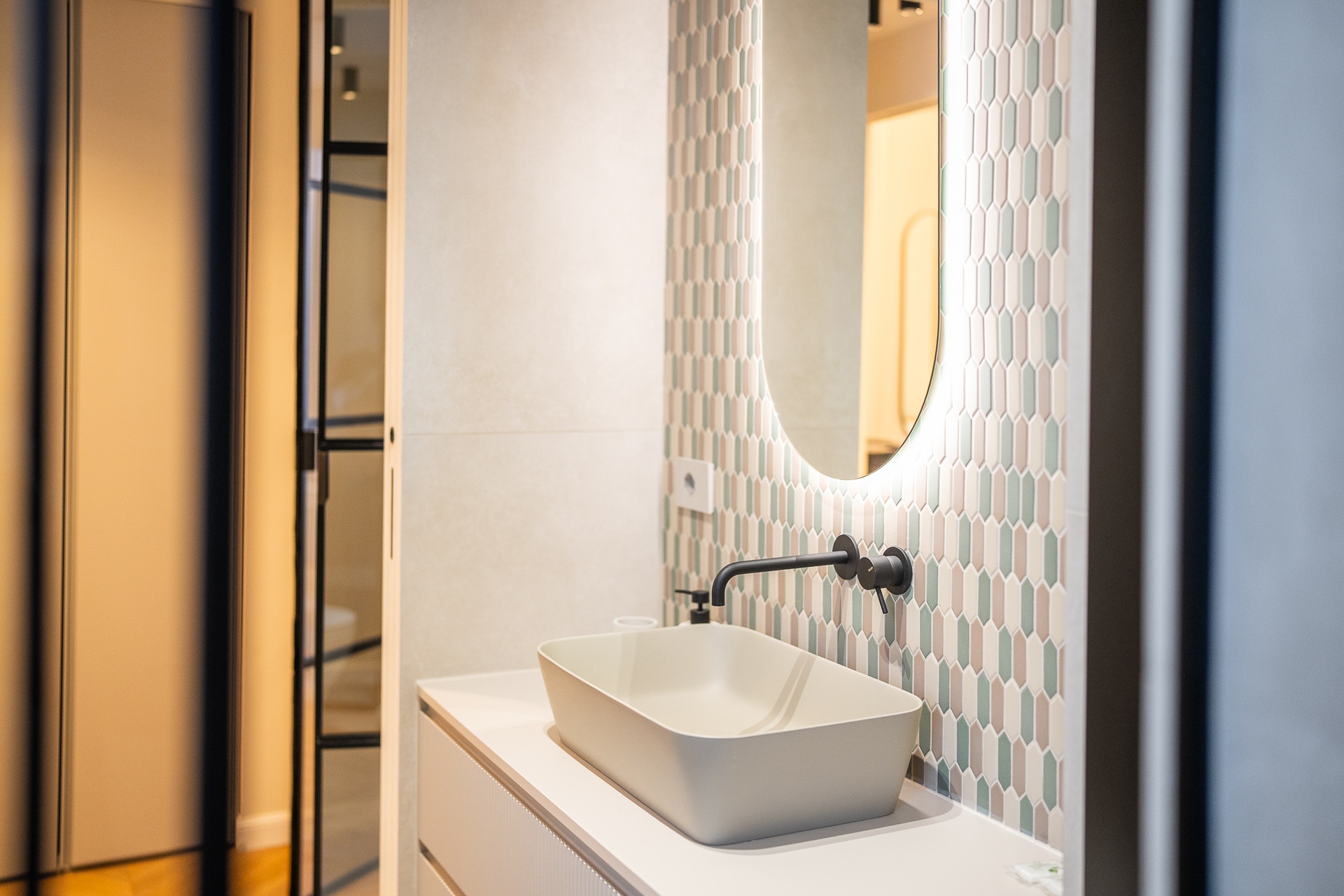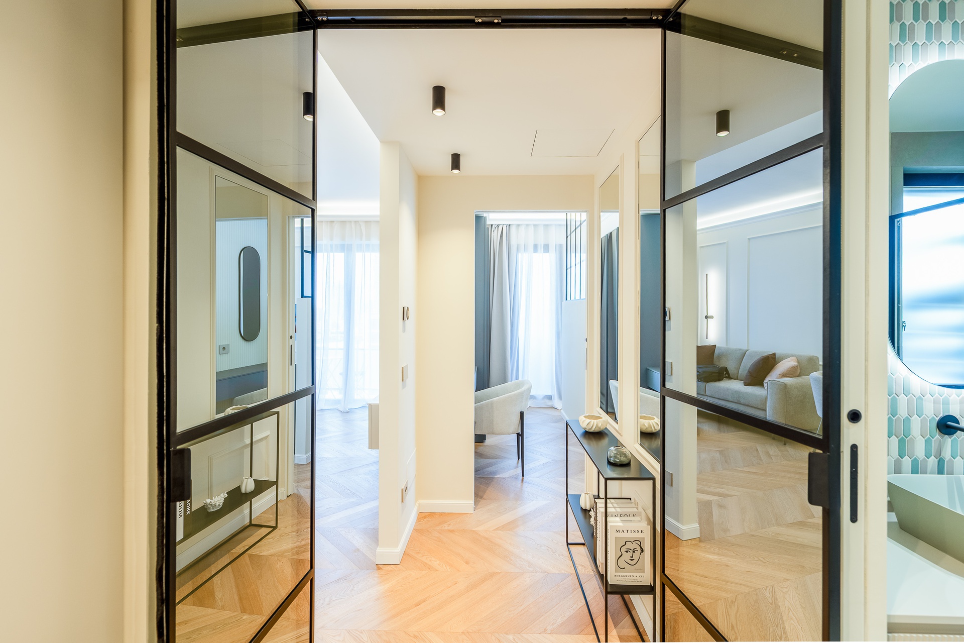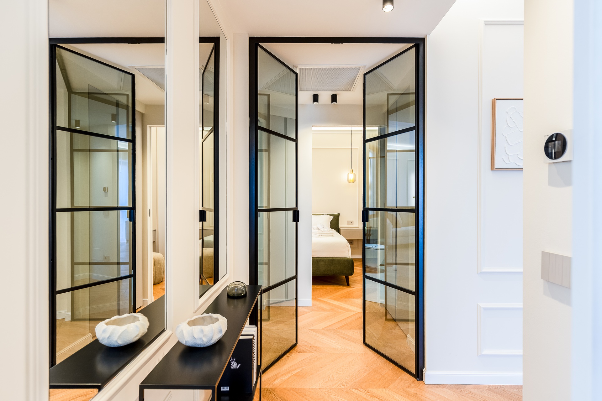 Questo progetto si presenta come un esempio di design contemporaneo elegante e misurato, dove ogni scelta formale e materica contribuisce a creare un’atmosfera accogliente e di grande raffinatezza. Gli interni sono pensati per trasmettere equilibrio e armonia, combinando linee pulite e dettagli sofisticati con una palette cromatica calda e naturale.Le tonalità prevalenti sono neutre e avvolgenti, come sabbia, crema e grigio chiaro, arricchite da note più decise di verde, blu e rosso bruciato, che conferiscono profondità e identità agli ambienti senza appesantirli. Il pavimento in legno posato a spina di pesce introduce un elemento di classicità reinterpretato in chiave moderna, mentre materiali come il marmo, il metallo opaco e i tessuti morbidi aggiungono texture e pregio.La luce gioca un ruolo centrale: l’illuminazione diffusa e i punti luce mirati valorizzano le superfici e creano atmosfere intime, mettendo in risalto le volumetrie e i contrasti materici. Gli arredi, spesso realizzati su misura, si inseriscono con naturalezza nello spazio, fondendo estetica e funzionalità in un linguaggio sobrio ma ricercato.Il progetto racconta un’idea di eleganza contemporanea senza eccessi, dove comfort e stile convivono in perfetta sintonia. È uno spazio pensato per essere vissuto, ma con un carattere distintivo, raffinato e coerente in ogni suo dettaglio.