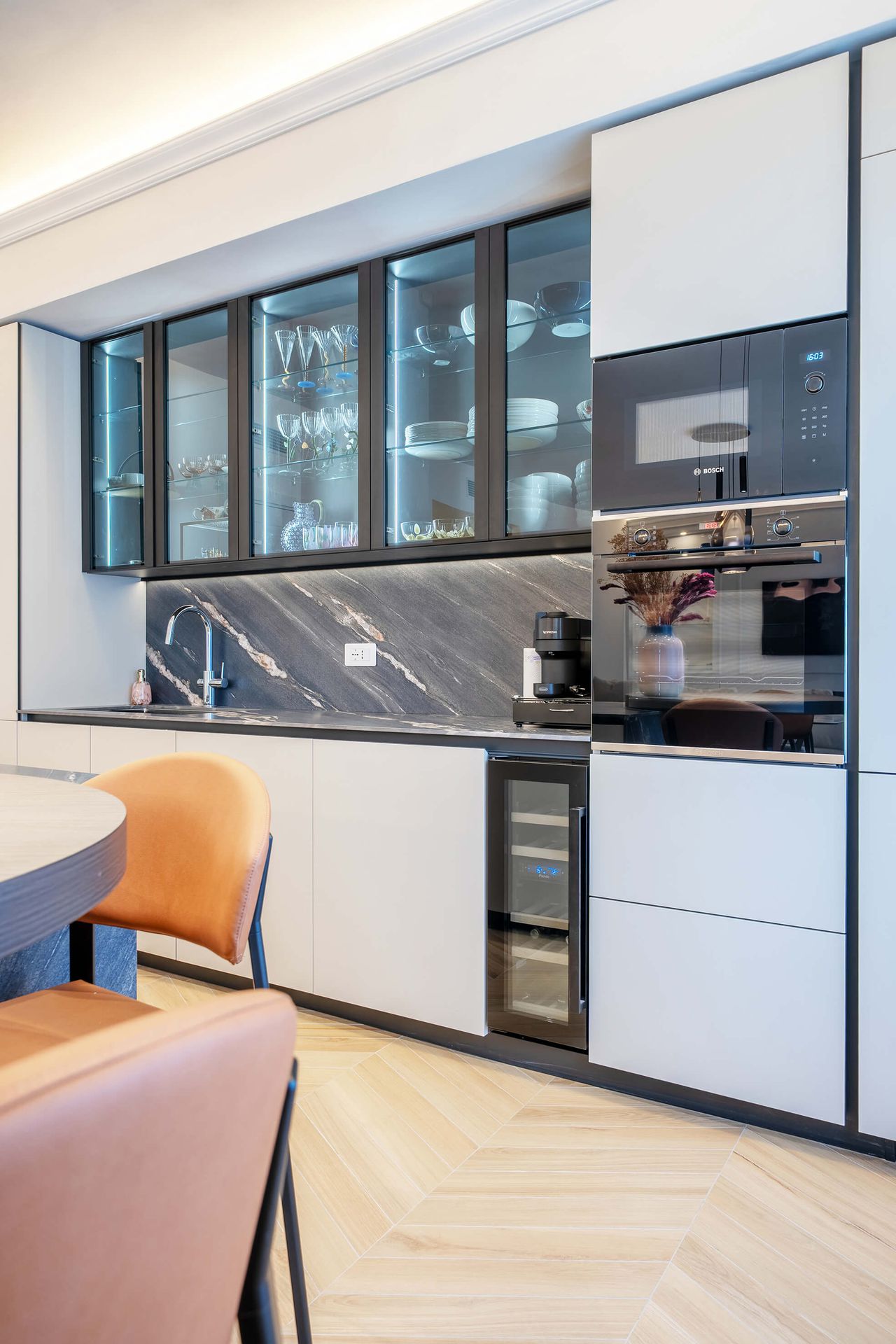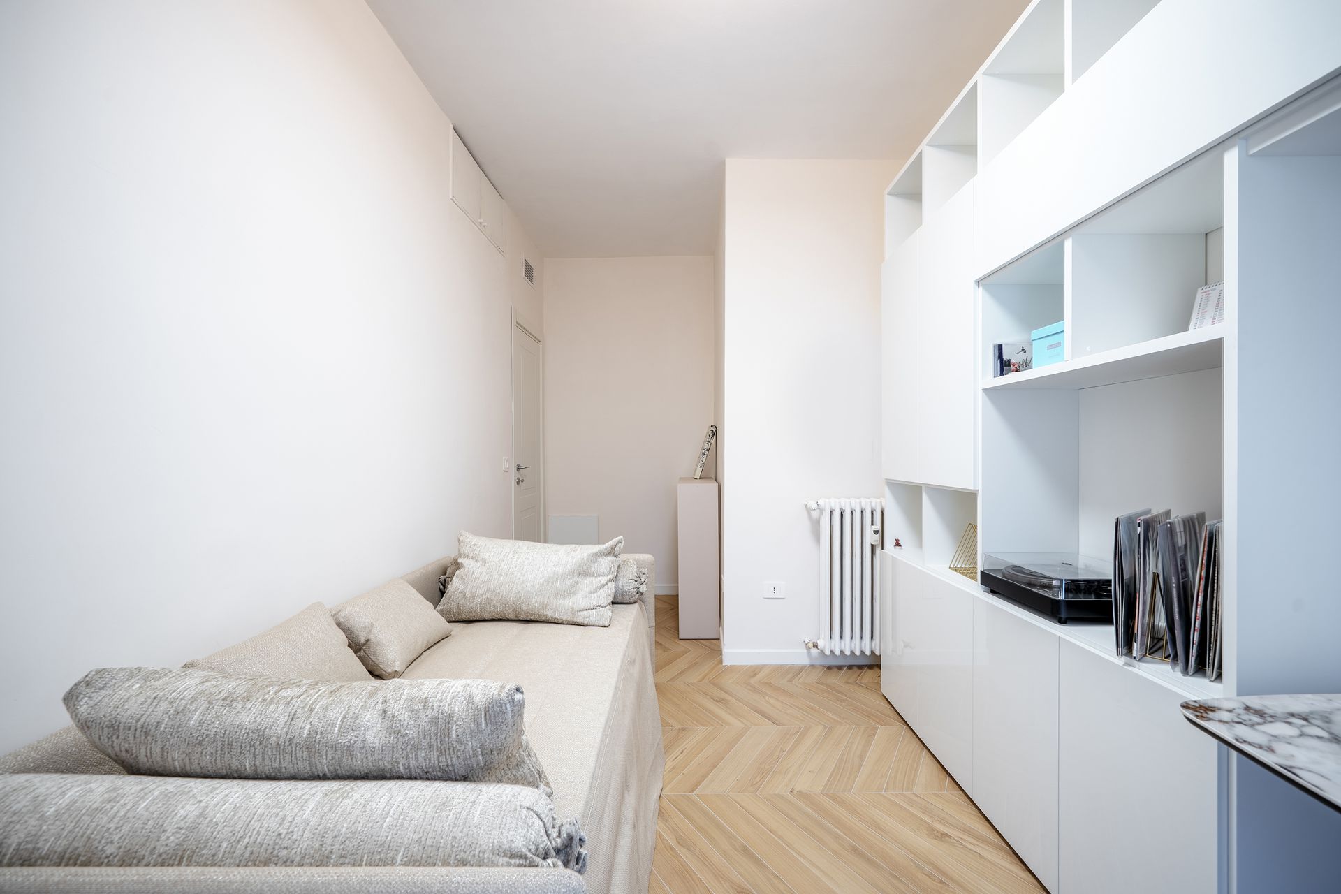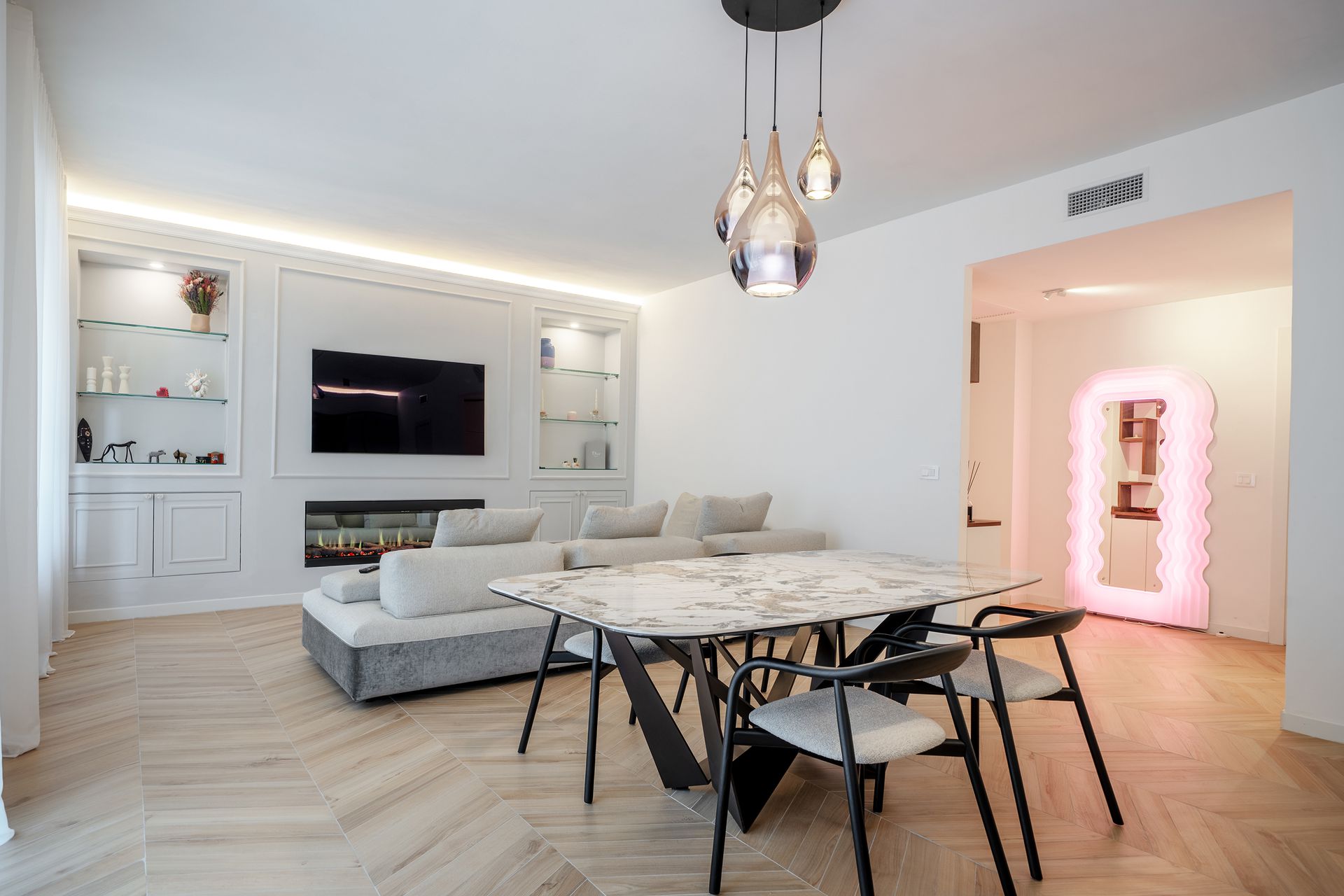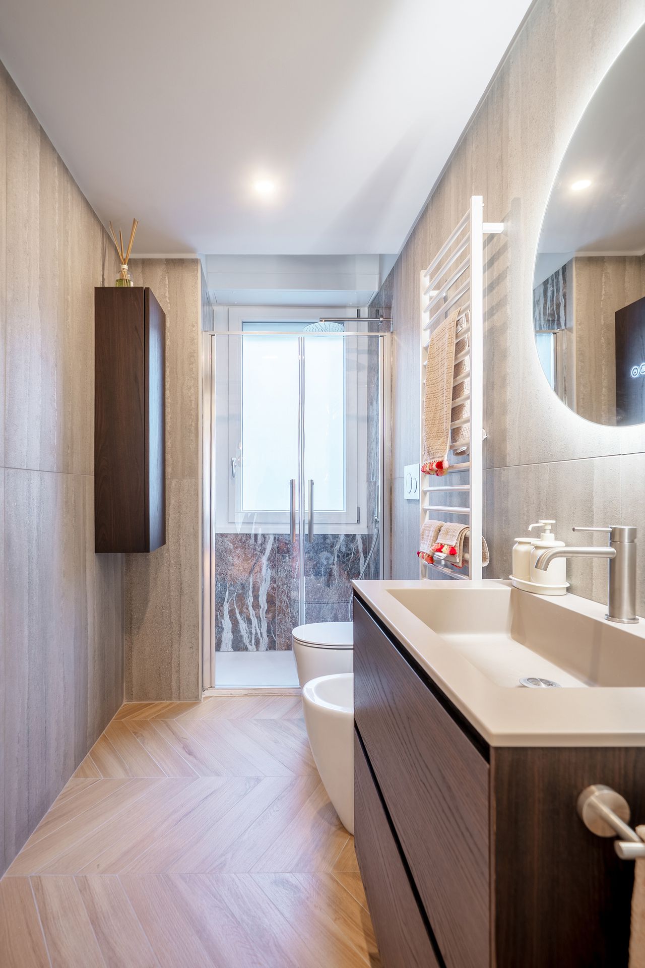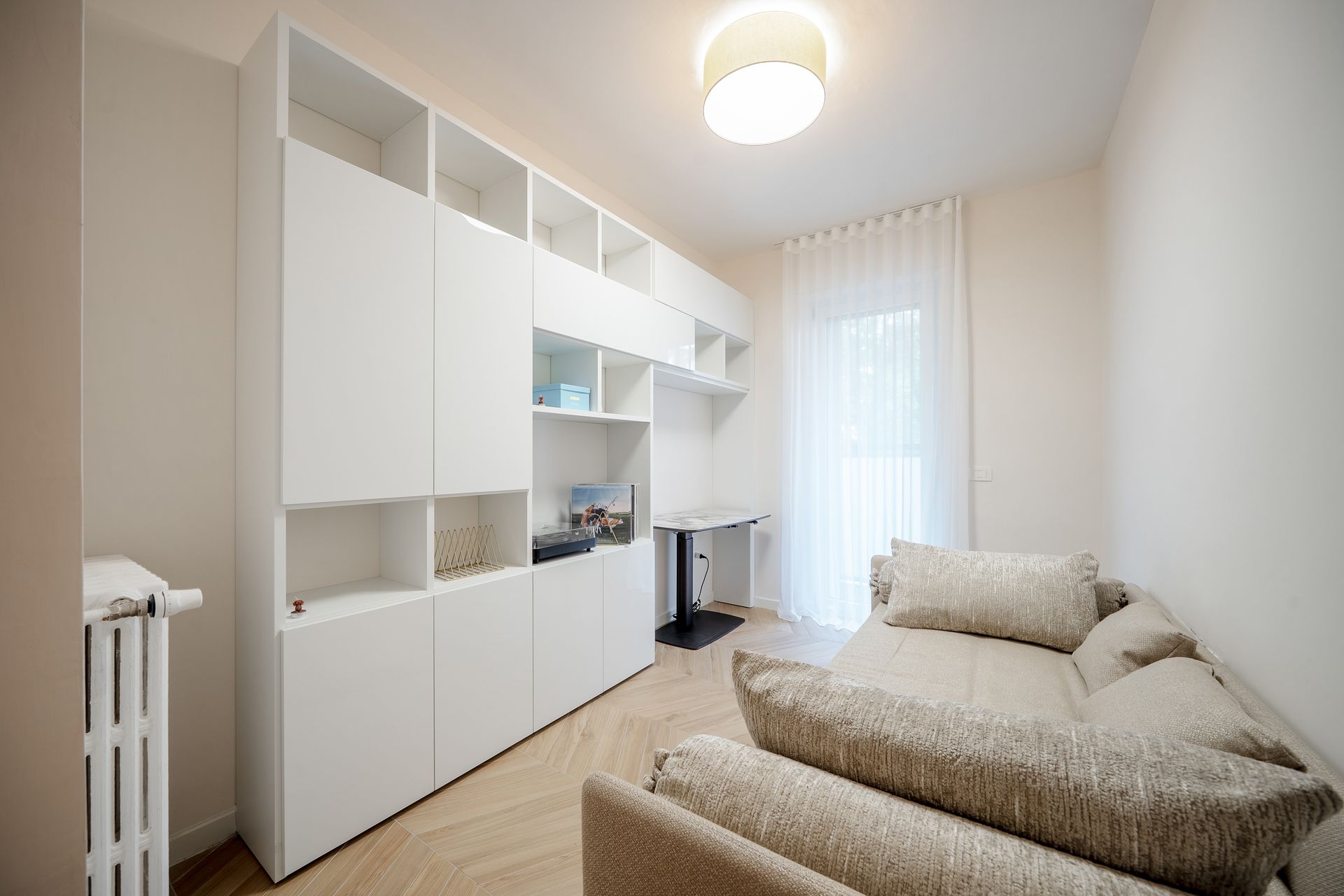 Nel cuore di Milano, questo intervento di ristrutturazione completa ha trasformato un appartamento di 120 mq in uno spazio contemporaneo, funzionale e perfettamente calibrato sulle esigenze della cliente.Il progetto è nato dall’esigenza di ridefinire completamente la distribuzione interna, superando una configurazione ormai datata per dare vita a un’abitazione più fluida, luminosa e coerente con uno stile di vita moderno. Il fulcro dell’intervento è stato lo sviluppo di una grande zona giorno open space, dove cucina e living dialogano in modo armonico, creando un ambiente conviviale e accogliente. A caratterizzare lo spazio, un camino in bioetanolo, elemento scenografico e funzionale che contribuisce a definire l’atmosfera dell’intero ambiente.Particolare attenzione è stata dedicata alla zona notte, progettata come un’area intima e riservata. Qui è stata realizzata una camera padronale con bagno ensuite e una cabina armadio su misura, pensata per rispondere alle esigenze organizzative della cliente senza rinunciare all’eleganza e alla pulizia formale.L’intervento ha incluso anche un completo ammodernamento dello stile, attraverso la scelta di materiali contemporanei, palette cromatiche neutre e dettagli progettuali capaci di valorizzare ogni ambiente, mantenendo un equilibrio tra estetica e funzionalità.In qualità di interior designer e progettista, ho seguito l’intero processo: dalla fase di concept e progettazione preliminare, alla gestione delle pratiche edilizie, fino alla direzione lavori in cantiere. Un approccio integrato che ha garantito coerenza progettuale, controllo dei tempi e cura del dettaglio in ogni fase realizzativa.Il risultato è un appartamento che unisce estetica, comfort e personalizzazione, riflettendo pienamente lo stile e le esigenze di chi lo abita.