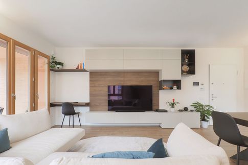 Piccolo bilocale, progettato per una coppia giovane, dinamica, con poco tempo per la casa, ma che potesse essere per loro un rifugio confortevole e accogliente.