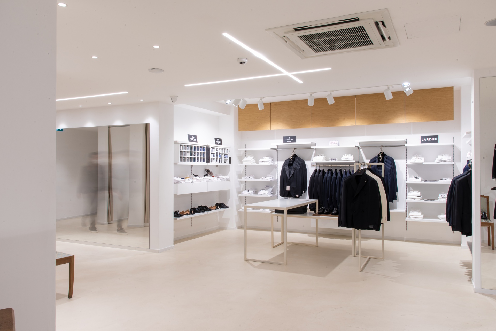Un progetto commerciale di luce e colore. Una sfida contemporanea che ha reso lo spazio e il percorso protagonista di un'esperienza di shopping, e non solo.La luce domina e guida i percorsi, le essenze vegetali dominano i fondali, i corner accolgono le esposizioni con ordine e metodo.Ciascun corner è realizzato su misura, con cremagliere incassate alla parete, ed è estremamente personalizzabile, a seconda del colore e della comunicatività del brand che ospita.La sartoria interna, valorizzata dagli arredi progettati e realizzati su misura, completa la proposta con eleganza e fascino.