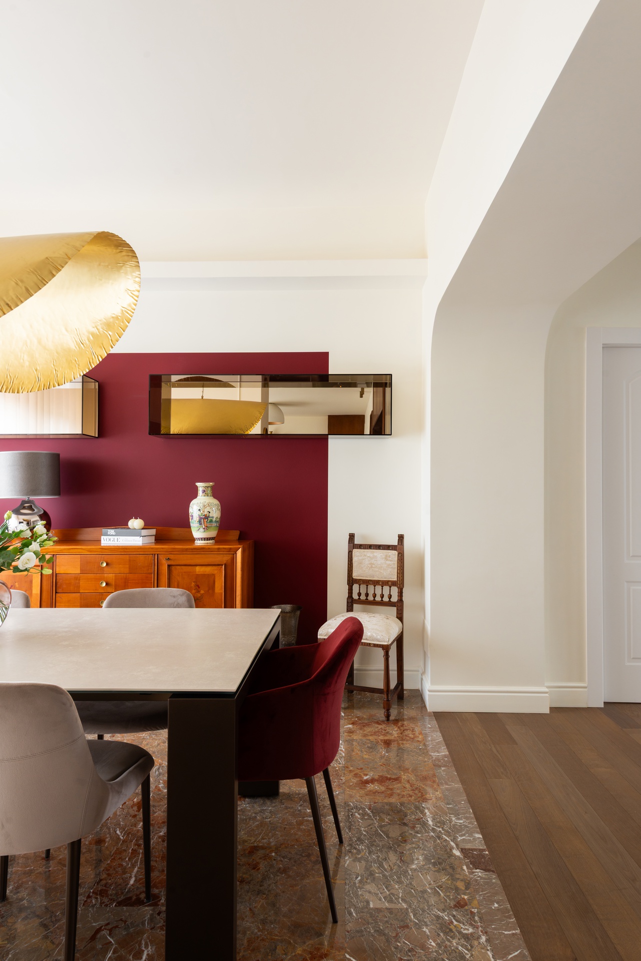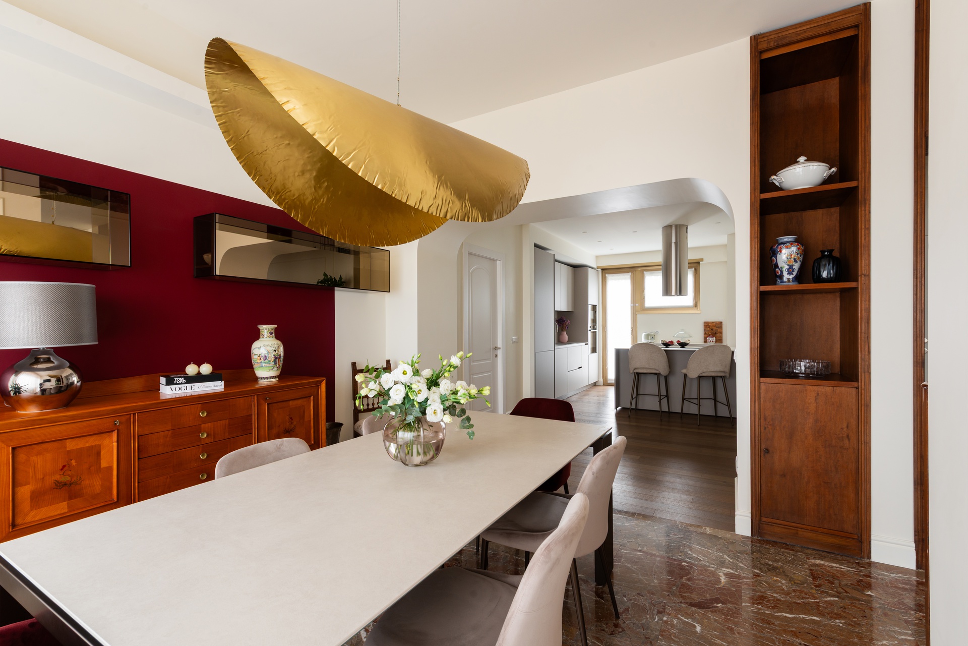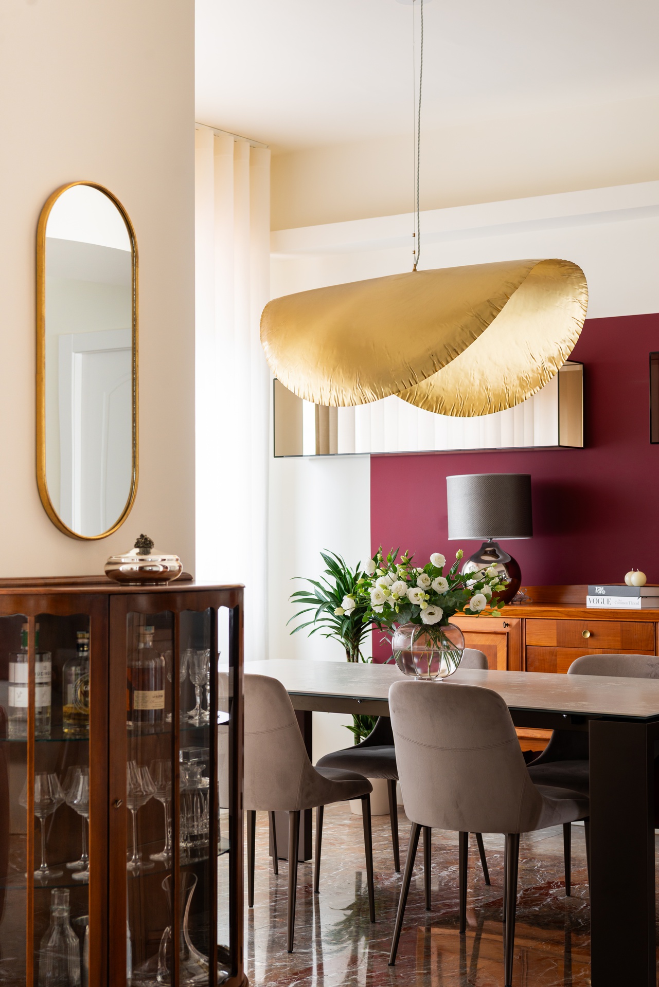 Un dialogo cercato: un progetto di integrazione a Montesacro Alto. Nel cuore del quartiere Montesacro Alto, a Roma, prende vita un progetto di ristrutturazione ed interior design che sceglie di non cancellare la memoria, ma di raccontarla. L’appartamento – 160 mq in un villino alla fine degli anni ’60 – è stato acquistato con l’intenzione precisa di conservarne l’anima originaria, fatta di pavimenti in marmo Macchia Vecchia, boiserie in legno e una distribuzione interna tipica dell’epoca.La sfida progettuale è stata proprio questa: non sostituire, ma integrare. Ne è nata una ricerca attenta sull’accostamento tra materiali, arredi, linguaggi e atmosfere. Vecchio e nuovo dialogano senza forzature, creando un equilibrio sottile ma forte: mobili di antiquariato e design contemporaneo convivono armoniosamente, in un ambiente che riflette pienamente la personalità dei proprietari. L'ampia zona giorno – circa 75 mq – è stata reinterpretata mettendo in comunicazione ingresso, soggiorno, sala pranzo e cucina, ma limitando le demolizioni al minimo indispensabile. I rivestimenti lignei originali sono stati mantenuti e valorizzati: il legno recuperato dalle porzioni eliminate è stato utilizzato per rifinire l’imbotte dell’apertura tra ingresso e soggiorno, garantendo una coerenza visiva. Una scelta dettata anche dal desiderio di portare luce nella zona d’ingresso, oggi in continuità con gli ambienti più vissuti.Il colore borgogna – ripreso dalle venature calde del marmo – attraversa lo spazio come un fil rouge emotivo e cromatico: lo ritroviamo nei tessili e sulla parete della zona pranzo enfatizzando così la madia vintage anni ’50 e la preziosa sospensione in ottone opaco firmata Gervasoni.La cucina con isola, firmata Binova, è pensata come uno spazio pratico e conviviale, in diretto dialogo con la zona pranzo. È qui che la ritualità del cucinare si trasforma in momento sociale, in una casa che interpreta i nuovi riti dell’abitare.Anche i bagni sono racconti di contrasti eleganti: interamente rivestiti con piastrelle di piccolo formato firmate Quintessenza Ceramiche – rosa per lei, blu per lui – mantengono alcuni elementi della preesistenza, come il controsoffitto con travi in legno e la divisione tra lavabo e sanitari.Questo appartamento è il ritratto di una progettazione misurata, consapevole e rispettosa: ogni scelta è dettata dall’ascolto, del luogo e delle persone. Una casa che non rincorre le mode, ma costruisce una sua identità forte, calda, personale. Una casa che racconta una storia, anzi: due. E lo fa con eleganza.