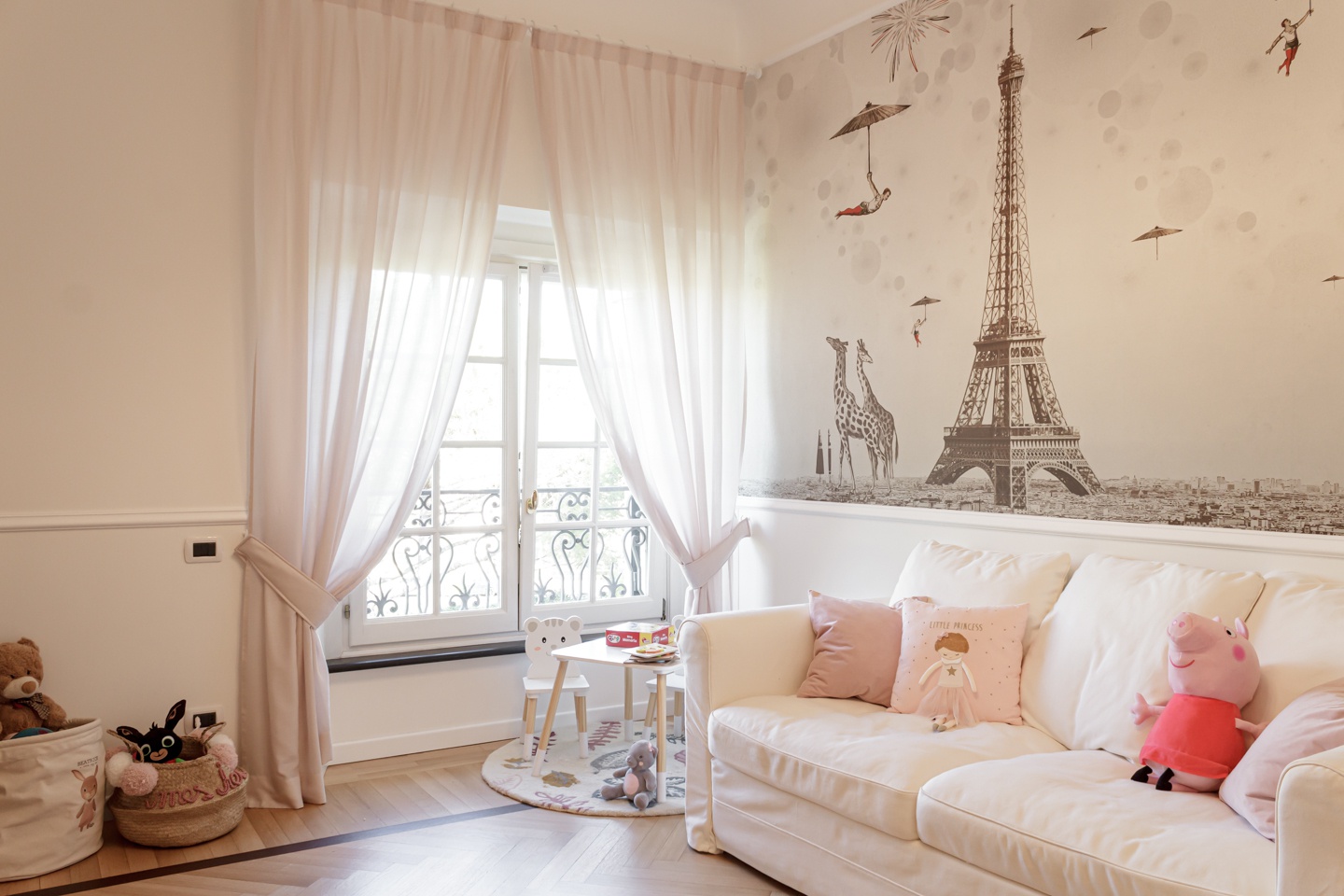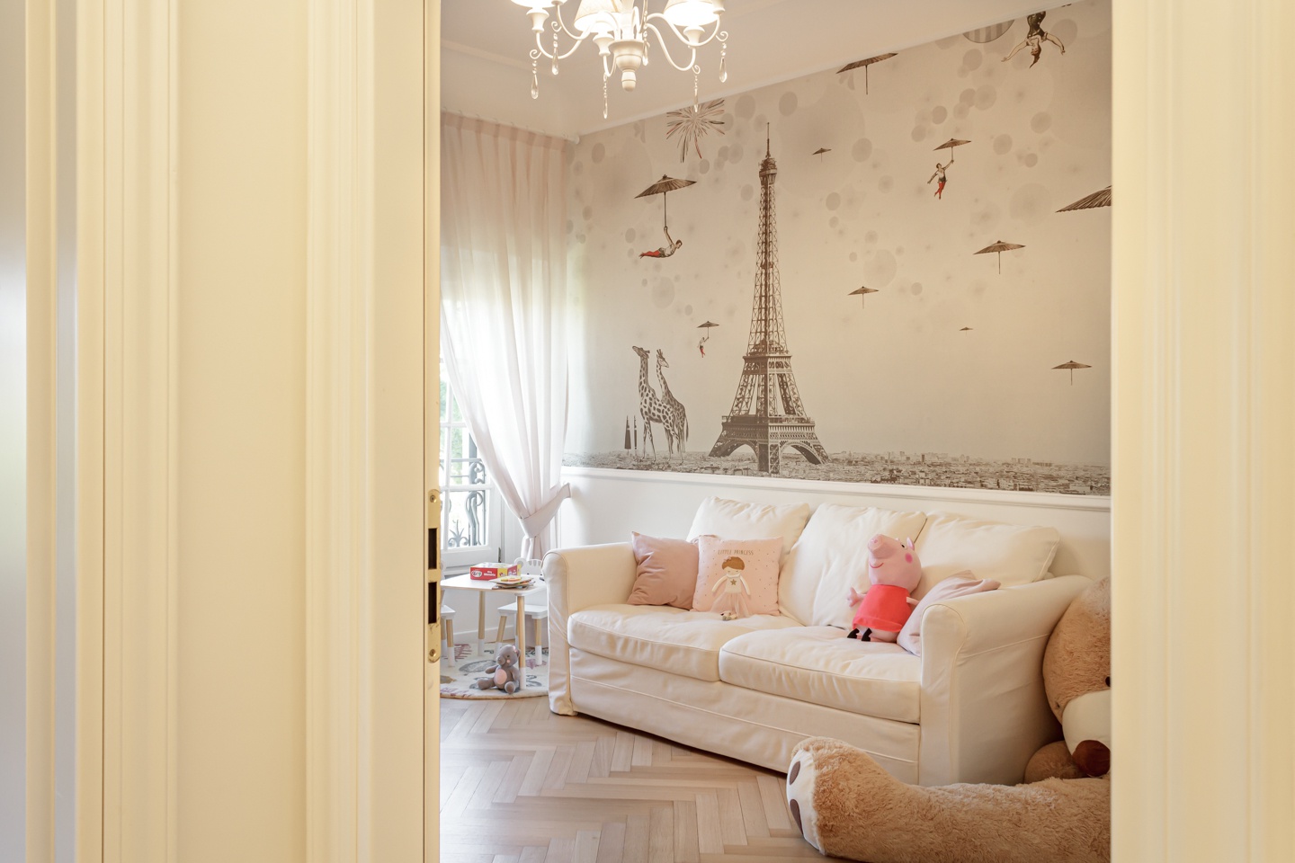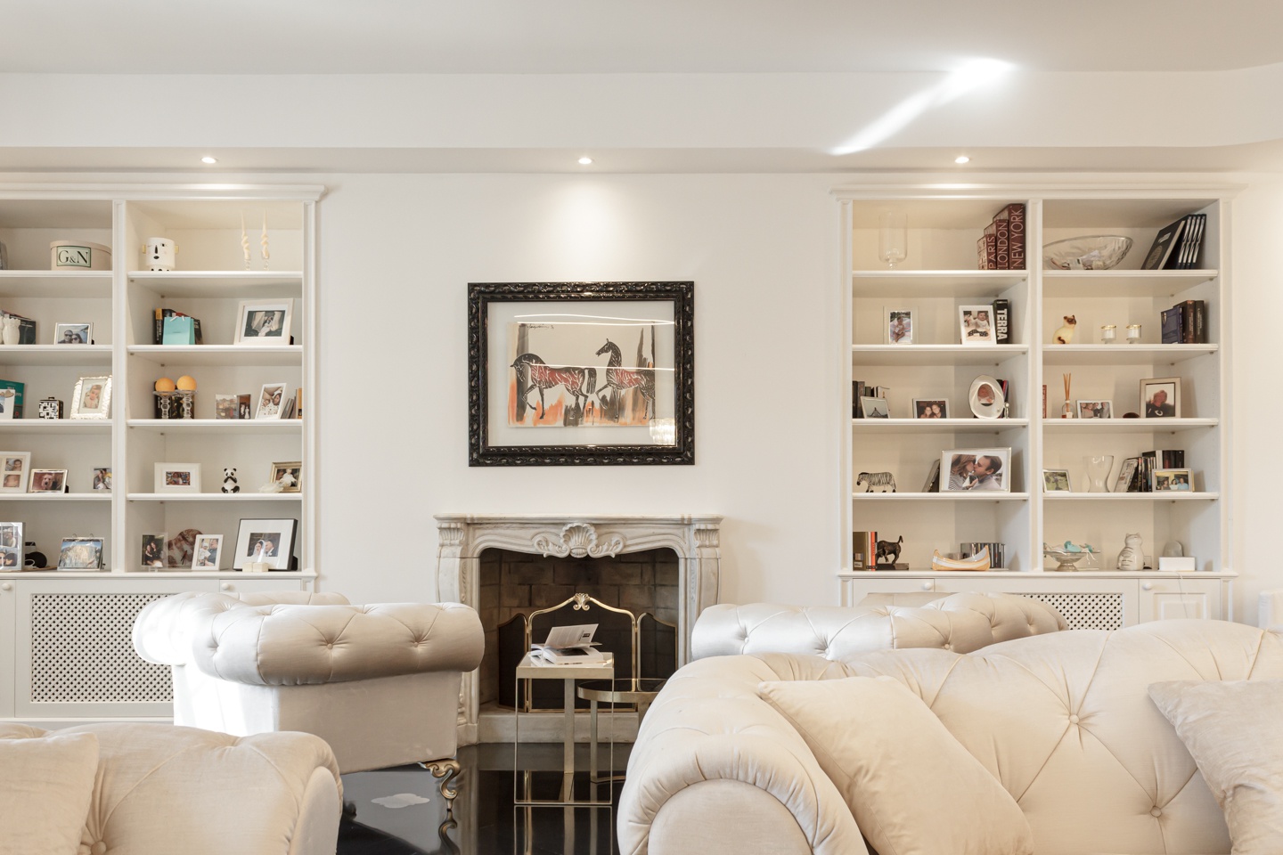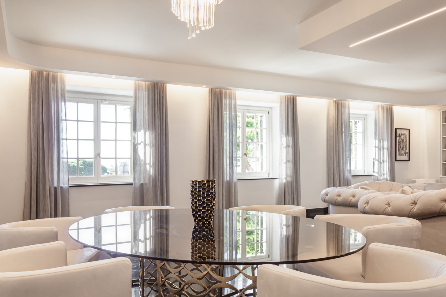 Questo progetto è iniziato con una richiesta ben precisa da parte della committenza, una giovane coppia, che ha espresso delle idee ben chiare fin dal primo momento: arredamento di lusso classico.Un appartamento nel cuore di Genova dal living spazioso, luminoso e con finiture di pregio ha fatto da base alla realizzazione di tutto il resto!Lo stile non poteva che essere il più adatto per questo tipo di appartamento e infatti ne ha valorizzato i dettagli con l’aggiunta di cornici in gesso, colori neutri e pochi arredi, ma di alta qualità come quelli forniti dal brand Cantori. Siamo dunque partiti da una base classica e abbiamo aggiunto influenze parigine, come i dettagli in oro, per impreziosire i punti focali delle varie parti della casa.Non ci siamo solo limitati alla scelta degli arredi come tavoli, divani, lampadari, carte da parati e tendaggi… Ma abbiamo studiato in tutta la sua totalità anche l’illuminazione creando delle velette su cui far correre streap led e faretti.Mentre tutte le varie stanze della casa sono pensate per essere intime e riservate, il grande salone gioca un ruolo di rappresentanza. Per questo motivo la parete centrale del living è stata rivestita interamente in marmo di Calacatta Oro e incorniciata con pannelli in noce canaletto. Questa è la zona tv, attorno alla quale sono stati disposti anche 3 grandi divani.Il richiamo delle finiture color oro è il fil rouge che lega tutti gli ambienti della casa con arredamento di lusso classico.