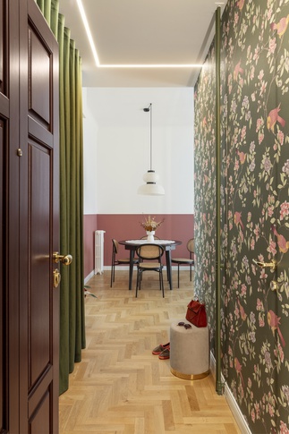 Gli angoli a 45 gradi e le forme irregolari di questo appartamento di montagna diventano protagonisti dello spazio ed elementi da enfatizzare e valorizzare. Dall'ingresso l'occhio viene guidato sulla grande finestra della zona living con vista sull'arco alpino che illumina living, zona pranzo e cucina open space. Un corridoio dividi la zona giorno dalla zona notte dove sono state ricavate una camera da letto padronale, una matrimoniale, una piccola camera da letto con letto a castello e due bagni.Il progetto di ristrutturazione completa dell'appartamento ha permesso di sfruttare al meglio gli spazi e di portare alla luce gli aspetti caratteristici grazie ad una sapiente combinazione di elementi di recupero e contemporanei con arredi e tessili in stile montano.