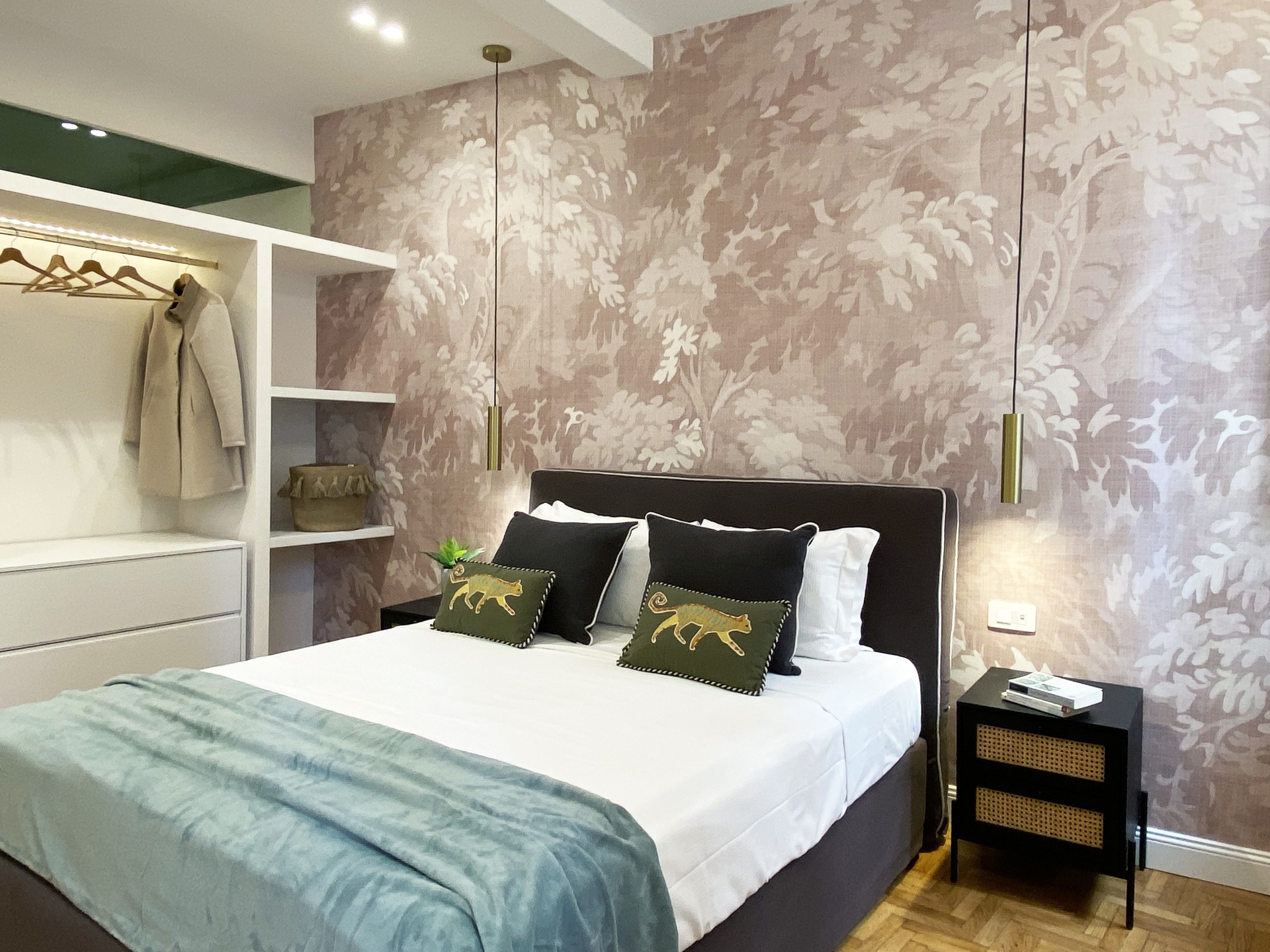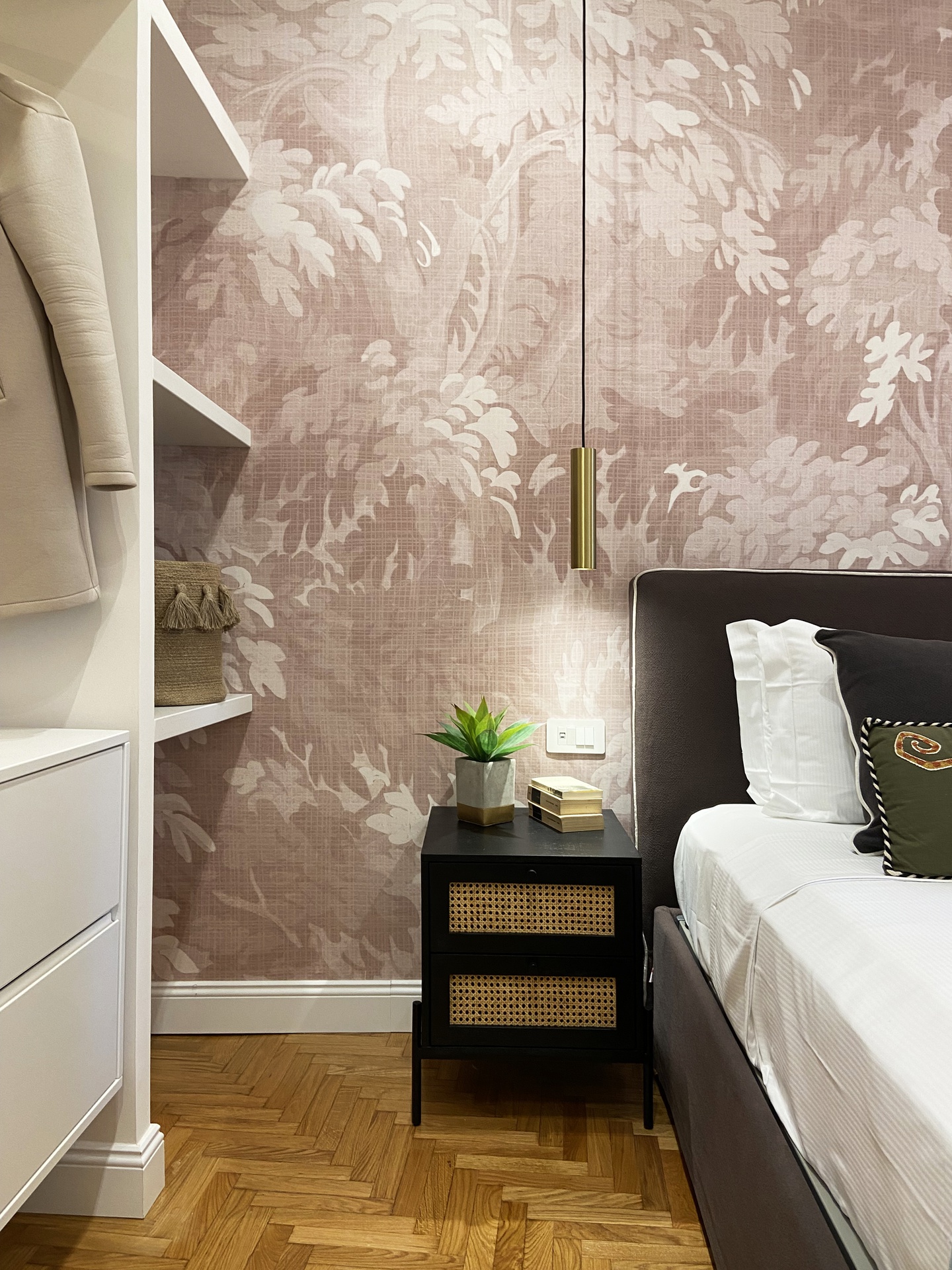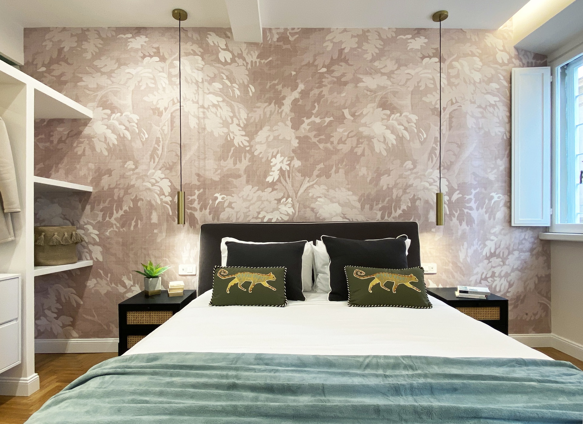 Un appartamento romano nel cuore della città storica, ospitato in uno stabile seicentesco, dove eleganza e carattere si intrecciano in un raffinato dialogo tra classicità e contemporaneità.Le pareti, animate da profili decorativi, scandiscono gli ambienti con ritmo e profondità, mentre il camino originale in marmo diventa il fulcro emotivo e stilistico della zona giorno: un frammento autentico di storia che dona identità e calore.L’ampia area living si apre con naturale fluidità sulla cucina a isola attraverso due portali valorizzati da un intenso verde, creando un ambiente aperto e conviviale. Al centro, un’isola su misura in pietra, affiancata da un piano in legno sospeso che si trasforma in tavolo, assume il ruolo di elemento scultoreo e materico, perfettamente integrato nell’insieme. Lo spazio diventa così un vero palcoscenico di convivialità.La luce naturale avvolge ogni superficie, esaltando una palette calda e neutra, mentre tocchi di ottone spazzolato regalano bagliori eleganti e misurati, contribuendo a un’atmosfera sofisticata e accogliente.La zona notte è un’oasi di quiete: carte da parati delicate, tonalità morbide e un attento studio della luce costruiscono un ambiente intimo e rilassante. Ogni dettaglio, dal più architettonico al più funzionale, è stato progettato per elevare la qualità dell’abitare e rendere unico ogni momento vissuto all’interno della casa.Questo progetto non è soltanto un appartamento: è un nuovo modo di vivere lo spazio, dove emozione, estetica e benessere si fondono in un equilibrio armonioso.