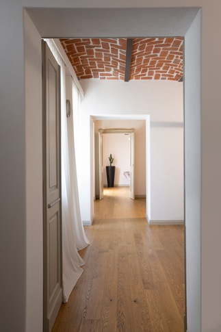 Recupero e ampliamento di un ex borgo agricolo nel piacentino Il progetto riguarda un piccolo agglomerato di edifici rurali situato nel piacentino composto da un edificio di abitazione risalente agli anni 50 (B) e da tre edifici rurali (A, C, D) e una tettoia. L’intervento prevede la ristrutturazione dell’edificio B, demolizione e ricostruzione degli altri edifici seguendo la sagoma del borgo con recupero di volumetria nel piccolo edificio di ingresso alla corte (C), la messa in sicurezza della tettoia e la costruzione di una piscina. Edificio A. Su due piani collegati da una scala in muratura con pedane in legno di rovere posta al centro dell'edificio. Al piano terra due grandi ambienti, il soggiorno e la cucina/pranzo separate dalla parte centrale di servizio con ingresso, scala, e sul fondo bagno/lavanderia con sauna con accesso diretto all’esterno. Al piano superiore 4 camere da letto e tre bagni. Dalla camera matrimoniale si apre come un occhio un ampio abbaino che traguarda il dolce paesaggio collinare piacentino. Al piano terra pavimenti in cotto, mentre al piano superiore cementine tutte di recupero. Solai in legno di abete e rovere, serramenti in rovere.Foto di Carlotta Garavaglia e Nicola Bortolussi