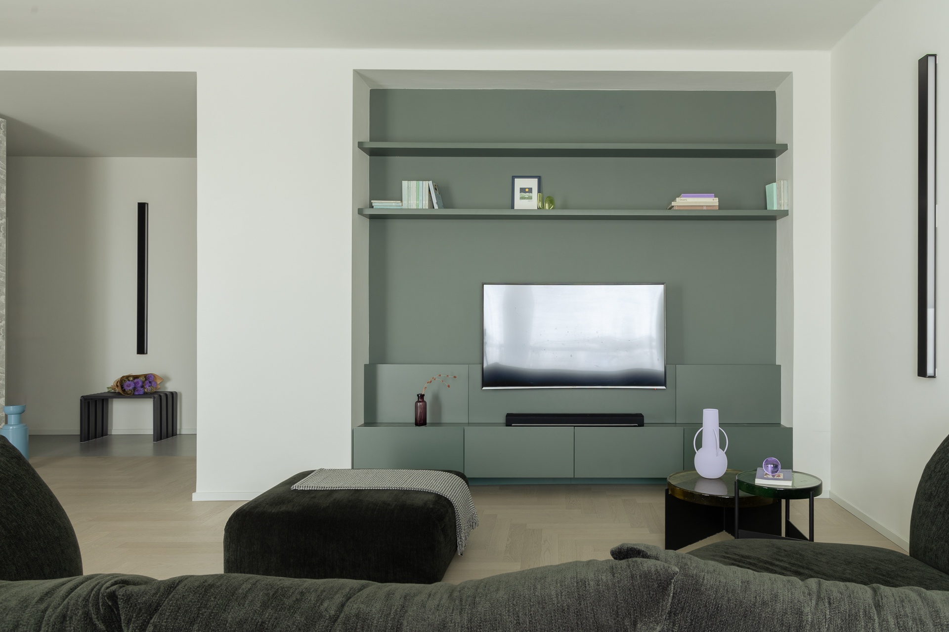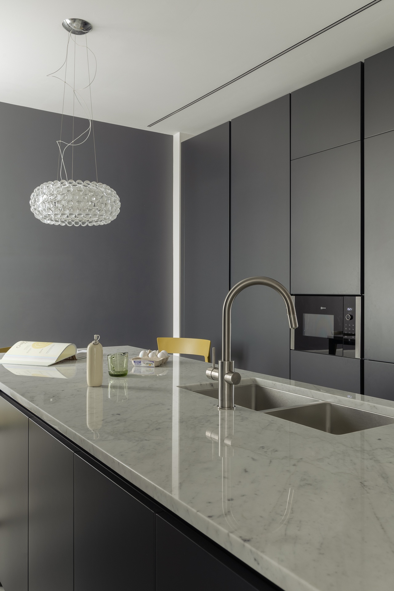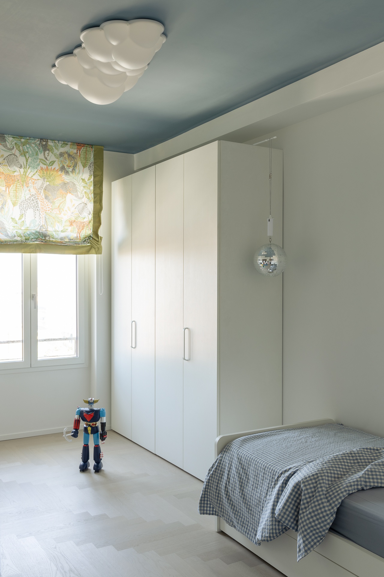 Questo appartamento milanese è stato ristrutturato per una famiglia di tre persone.Lo stato di fatto aveva un ingresso angusto ed una grande superficie destinata alla distribuzione; inoltre, la cucina era piccola per le esigenze della famiglia.Abbiamo scelto di aprire l’ingresso sul soggiorno e completarlo con un grande armadio.Dall’ingresso si accede ora alla zona notte ed alla nuova cucina, ampliata annettendo una camera da letto che non serviva.Le camere da letto erano adeguate alle esigenze e non le abbiamo modificate, mentre dal disimpegno abbiamo ricavato una comoda cabina armadio ed un nuovo bagno, oltre che ampliare e riorganizzare quello esistente.