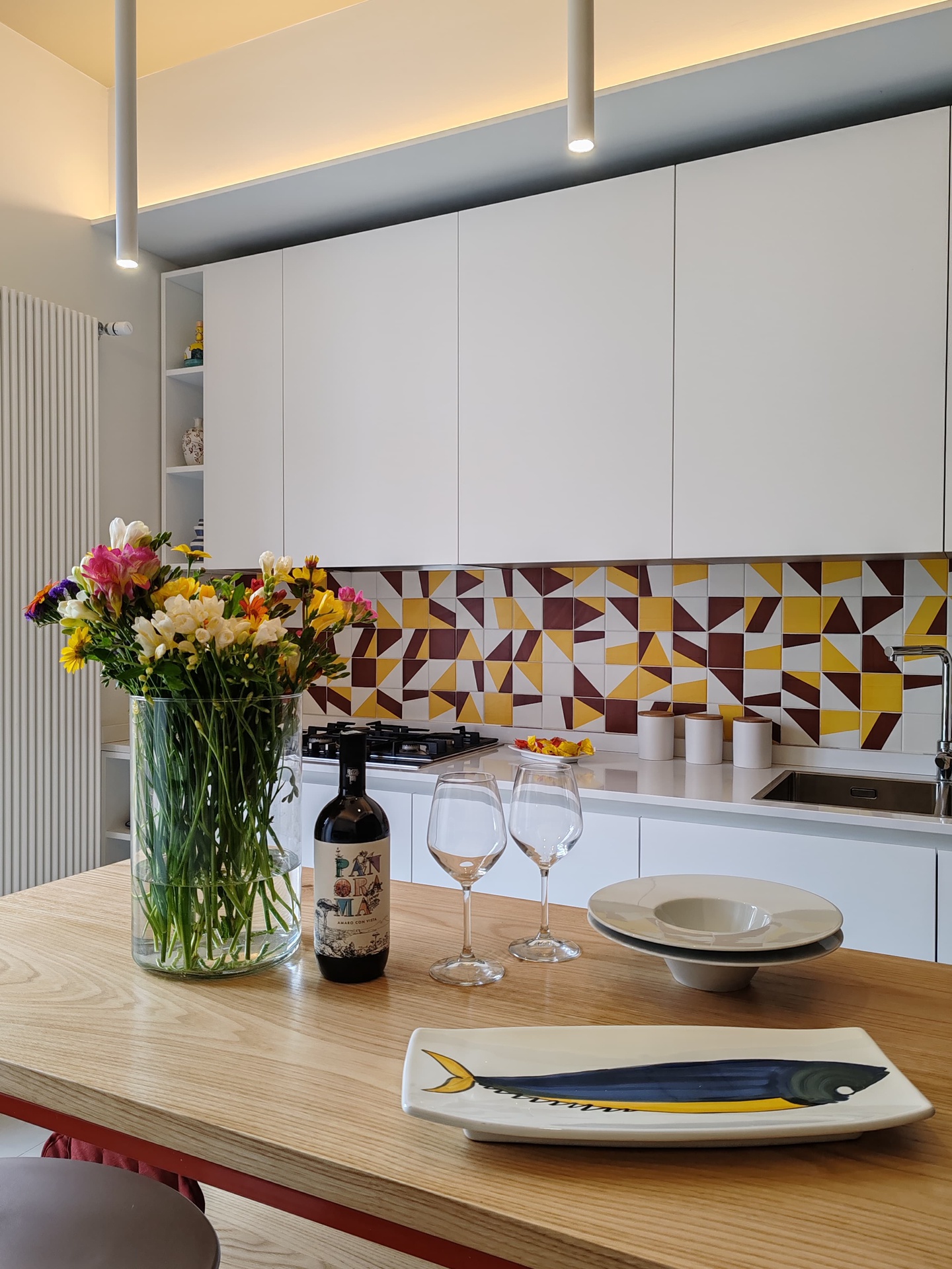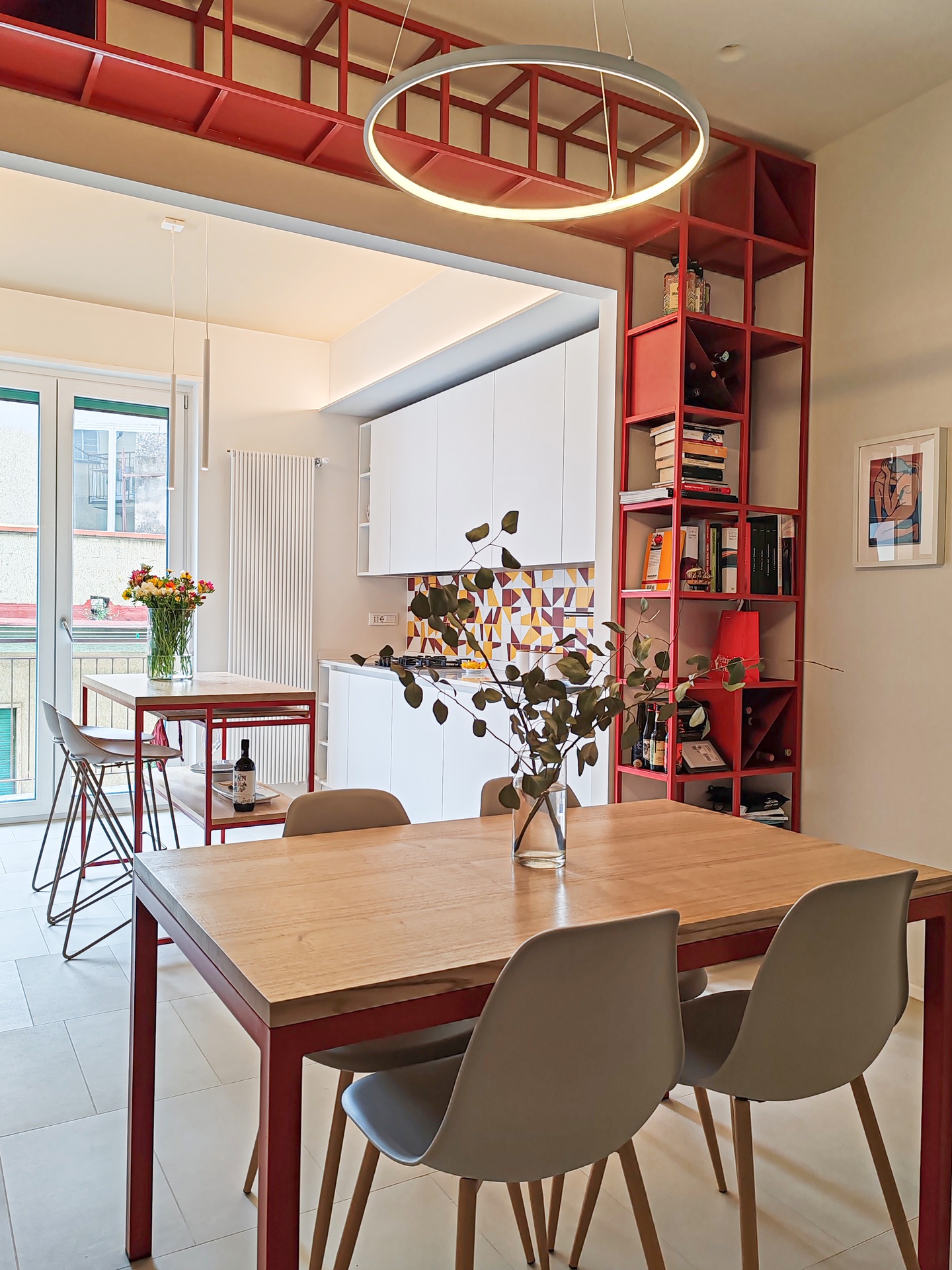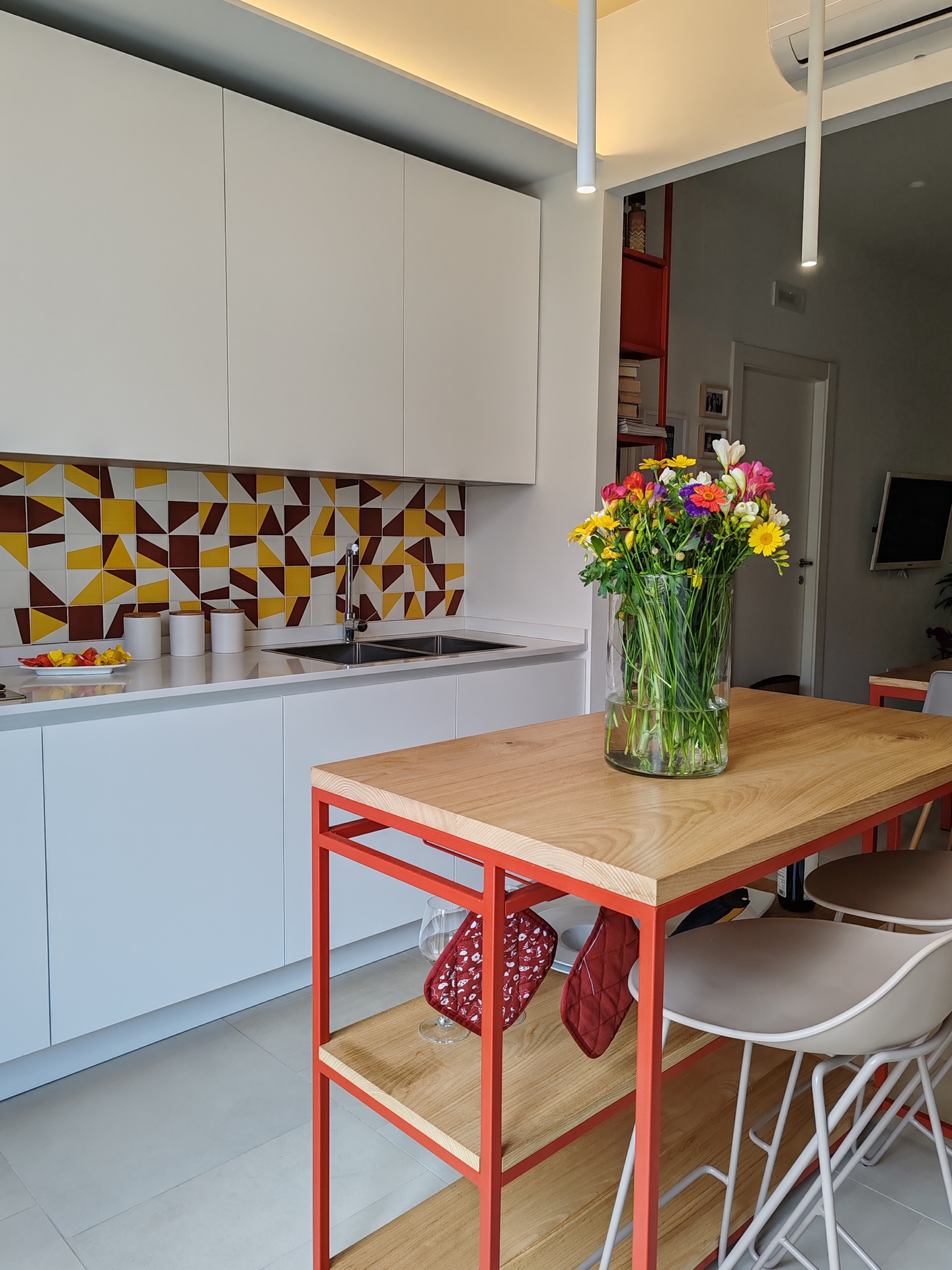 L’appartamento, prima dell’intervento, versava in uno stato di degrado e presentava una disposizione poco funzionale.Un lungo corridoio centrale lo divideva in due, generando stanze frammentate e poco luminose. Gli ambienti risultavano bui e privi di coesione.Ascoltando le esigenze dei proprietari, è stata elaborata una nuova distribuzione degli spazi. La ristrutturazione ha portato alla creazione di un’ampia zona giorno aperta, dove la luce naturale penetra liberamente, illuminando l'intero spazio.La cucina, con un'isola centrale, diventa il fulcro della casa, integrandosi perfettamente con il soggiorno e la sala da pranzo. Un portale in ferro e legno, realizzato su misura, conferisce carattere all’ambiente, fungendo da elemento distintivo e funzionale.Sono state ricavate due camere da letto doppie, progettate per offrire comfort e privacy, e due bagni finestrati, di cui uno dotato di una lavanderia a scomparsa, nascosta con eleganza all’interno dell’arredo.Il risultato è una trasformazione completa dell’abitazione, che ora appare luminosa, moderna e in sintonia con le necessità della vita quotidiana.