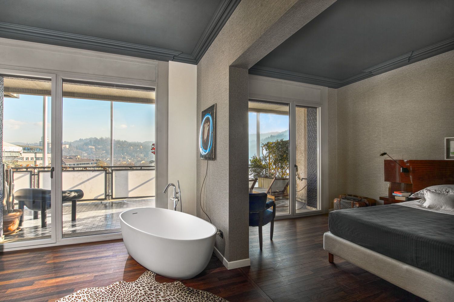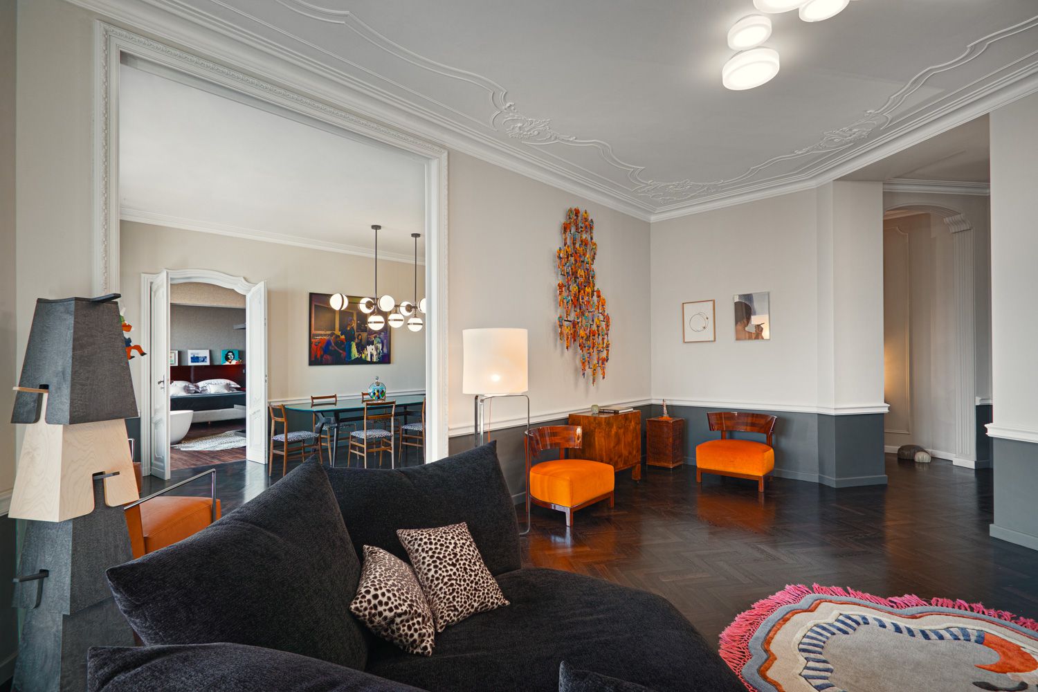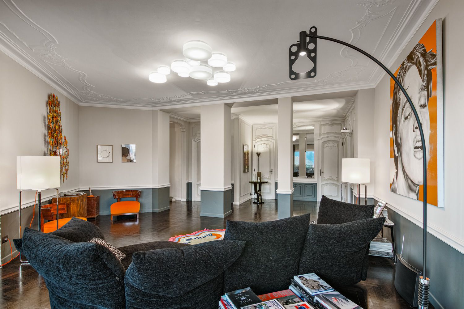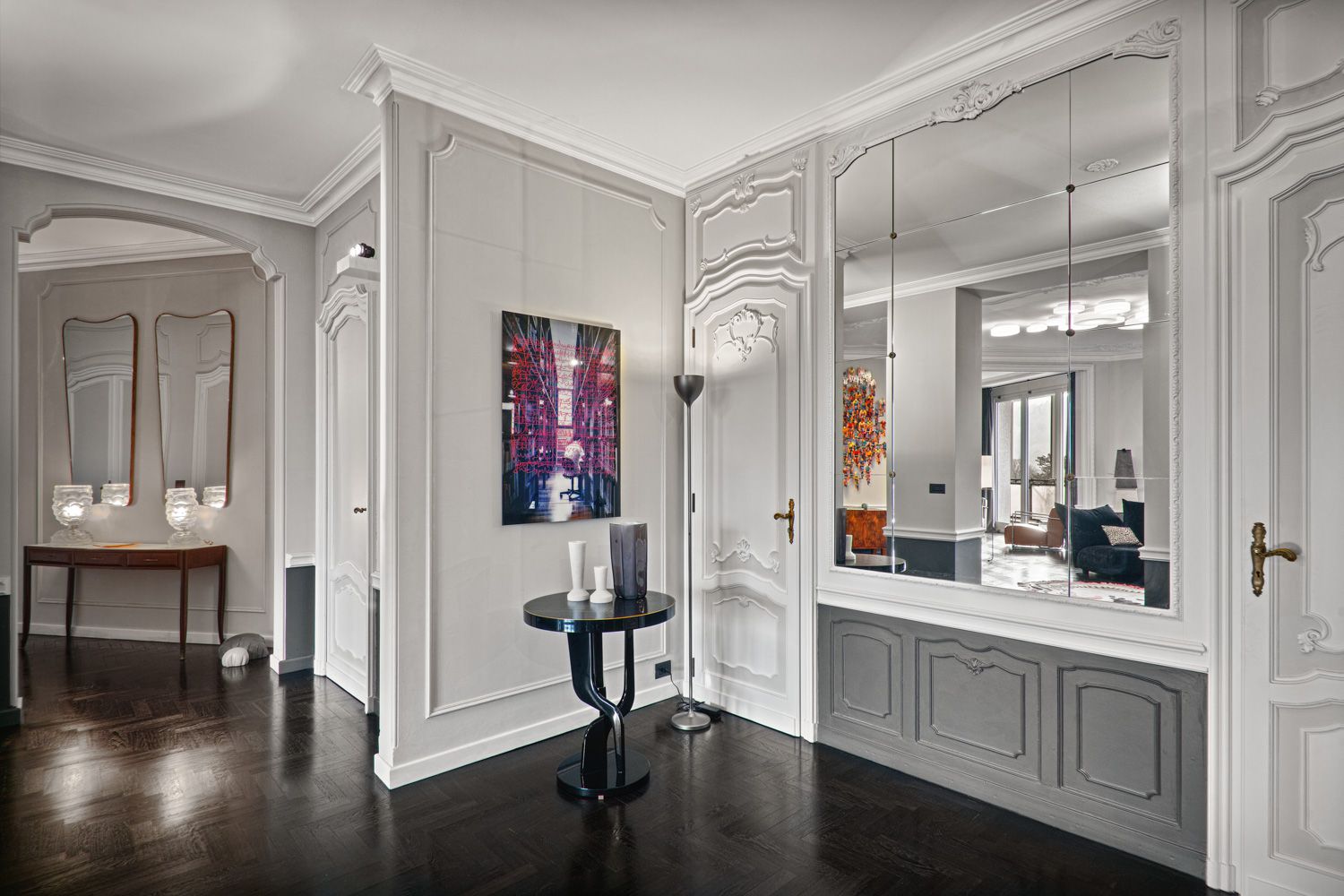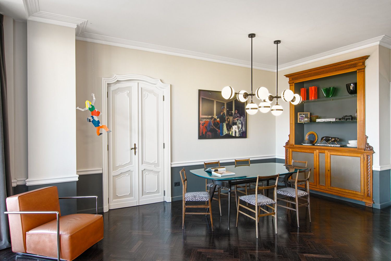 Manhattan a Torino: L’Equilibrio tra Storia e Contemporaneità | b5 art Arch StudioNel cuore di Torino, in un edificio iconico che rappresenta l’eccellenza della qualità progettuale degli anni ’60, l’intervento firmato da b5 art Arch Studio trasforma un appartamento affacciato sul Parco del Valentino in un teatro di dialogo tra epoche. Il progetto, denominato simbolicamente “Manhattan a Torino”, ricerca una sintesi perfetta tra l’eleganza della tradizione borghese locale e l’estetica cosmopolita ispirata al dinamismo della New York di metà secolo.Visione Architettonica e PreesistenzeL’immobile sorge in un contesto residenziale di lusso risalente a un periodo d’oro per l’architettura torinese, epoca di grandi contaminazioni stilistiche. L’approccio di b5 art Arch Studio è stato rigorosamente conservativo, mirato a far evolvere le preesistenze verso un linguaggio contemporaneo senza alterarne l'essenza.Contrasti Iconici: Gli interni originali si distinguevano per la convivenza tra elementi classici (porte in stile rococò, modanature elaborate e boiserie teatrali) e innovazioni tecniche d'avanguardia come le ampie finestre pivotanti.Distribuzione Spaziale: L’impianto distributivo originale è stato rispettato per garantire continuità visiva; la sequenzialità degli ambienti favorisce un flusso armonioso che amplifica la luce naturale e la percezione dello spazio.Scelte Materiche e Dettagli ProgettualiUn ruolo centrale nel rinnovamento è affidato alla ridefinizione delle superfici e degli arredi, curata meticolosamente per rafforzare l'identità del progetto:La Pavimentazione: Un intervento chiave ha riguardato la sostituzione del marmo originale con un parquet in legno scuro posato a spina di pesce. Questa scelta reinterpreta il linguaggio geometrico degli anni '60 attraverso una palette cromatica contemporanea, creando un contrasto raffinato con le pareti chiare e donando agli ambienti una nuova intimità.Interior Design e Arte: Gli arredi sono stati selezionati per dialogare con gli elementi storici preesistenti. Mobili di design contemporaneo convivono con pezzi vintage, mentre le pareti accolgono opere d'arte ispirate alla Pop Art, che evocano l'energia dinamica della Manhattan di quegli anni.Il risultato finale è un racconto visivo stratificato dove il valore testimoniale dell'arredamento borghese torinese degli anni '60 incontra una visione internazionale, definendo un equilibrio perfetto tra memoria e modernità.