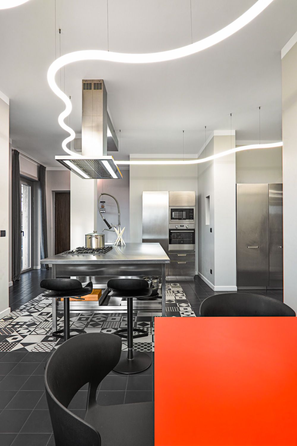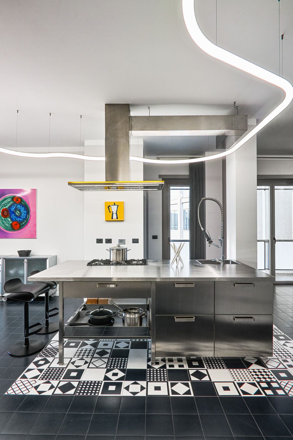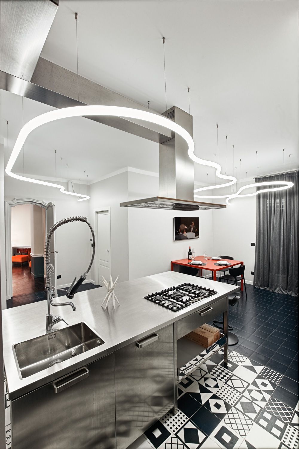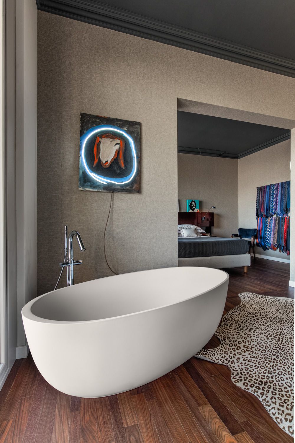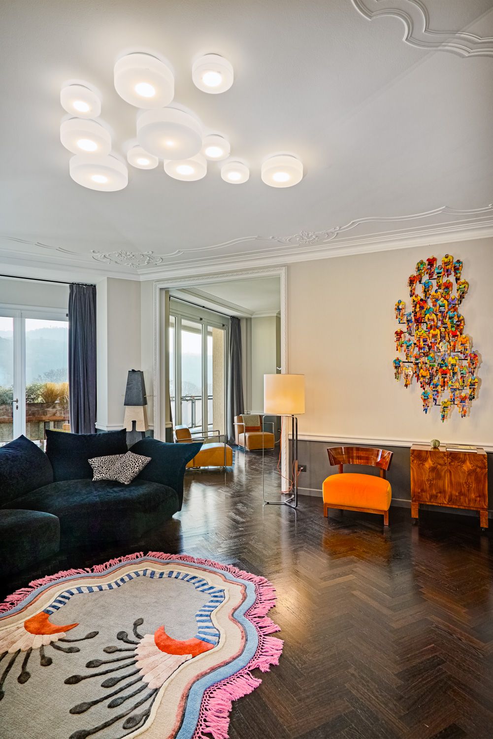 Manhattan a Torino: L’Equilibrio tra Storia e Contemporaneità | b5 art Arch StudioNel cuore di Torino, in un edificio iconico che rappresenta l’eccellenza della qualità progettuale degli anni ’60, l’intervento firmato da b5 art Arch Studio trasforma un appartamento affacciato sul Parco del Valentino in un teatro di dialogo tra epoche. Il progetto, denominato simbolicamente “Manhattan a Torino”, ricerca una sintesi perfetta tra l’eleganza della tradizione borghese locale e l’estetica cosmopolita ispirata al dinamismo della New York di metà secolo.Visione Architettonica e PreesistenzeL’immobile sorge in un contesto residenziale di lusso risalente a un periodo d’oro per l’architettura torinese, epoca di grandi contaminazioni stilistiche. L’approccio di b5 art Arch Studio è stato rigorosamente conservativo, mirato a far evolvere le preesistenze verso un linguaggio contemporaneo senza alterarne l'essenza.Contrasti Iconici: Gli interni originali si distinguevano per la convivenza tra elementi classici (porte in stile rococò, modanature elaborate e boiserie teatrali) e innovazioni tecniche d'avanguardia come le ampie finestre pivotanti.Distribuzione Spaziale: L’impianto distributivo originale è stato rispettato per garantire continuità visiva; la sequenzialità degli ambienti favorisce un flusso armonioso che amplifica la luce naturale e la percezione dello spazio.Scelte Materiche e Dettagli ProgettualiUn ruolo centrale nel rinnovamento è affidato alla ridefinizione delle superfici e degli arredi, curata meticolosamente per rafforzare l'identità del progetto:La Pavimentazione: Un intervento chiave ha riguardato la sostituzione del marmo originale con un parquet in legno scuro posato a spina di pesce. Questa scelta reinterpreta il linguaggio geometrico degli anni '60 attraverso una palette cromatica contemporanea, creando un contrasto raffinato con le pareti chiare e donando agli ambienti una nuova intimità.Interior Design e Arte: Gli arredi sono stati selezionati per dialogare con gli elementi storici preesistenti. Mobili di design contemporaneo convivono con pezzi vintage, mentre le pareti accolgono opere d'arte ispirate alla Pop Art, che evocano l'energia dinamica della Manhattan di quegli anni.Il risultato finale è un racconto visivo stratificato dove il valore testimoniale dell'arredamento borghese torinese degli anni '60 incontra una visione internazionale, definendo un equilibrio perfetto tra memoria e modernità.