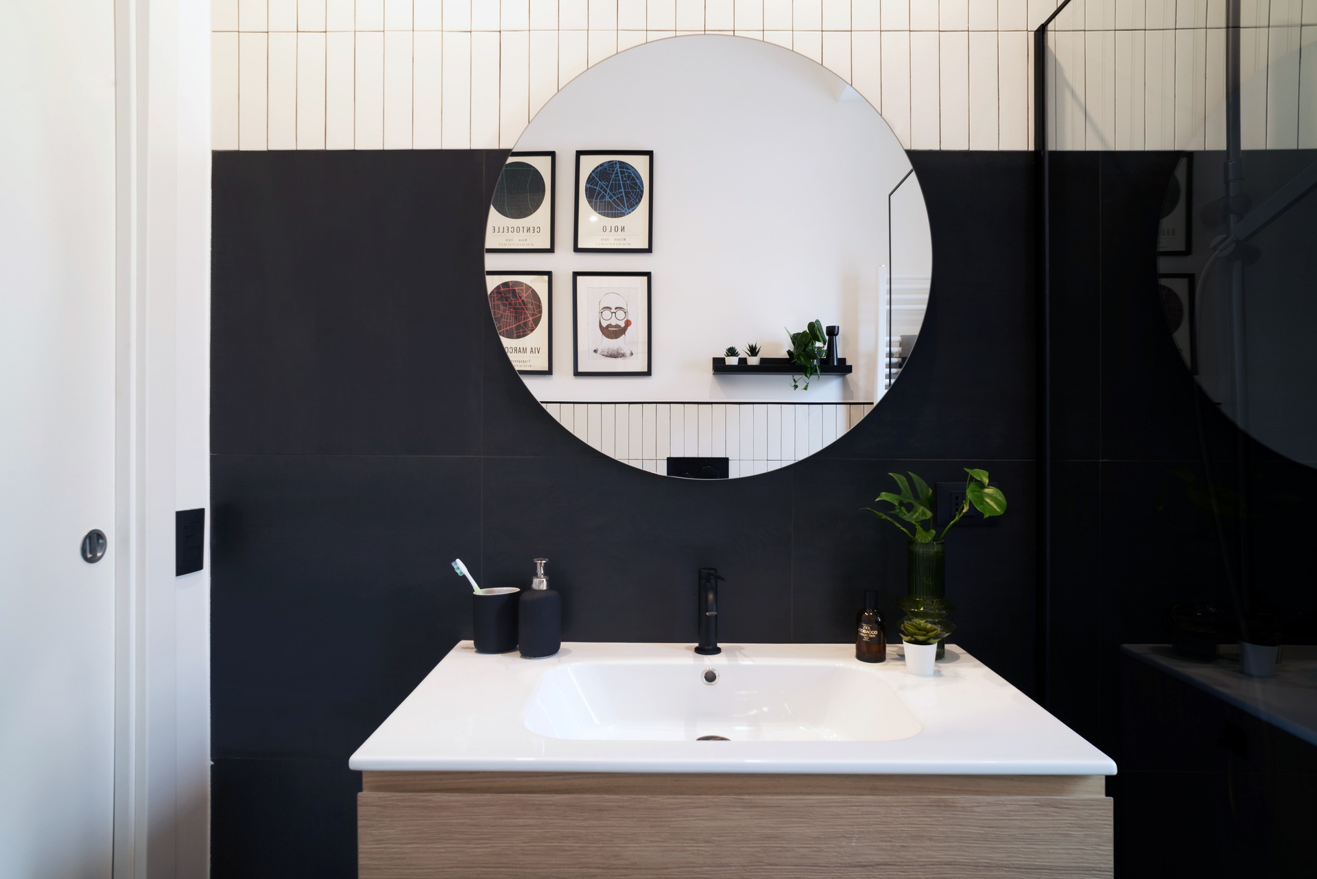 CASA AT è un appartamento di 50 mq circa situato nel quartiere Centocelle, a Roma. E’ un progetto di ristrutturazione chiavi in mano dal sapore vintage ma dal carattere moderno. Le demolizioni, poche, sono servite a liberare lo spazio della zona giorno creando un ambiente open space. Razionalizzato l’assetto generale e la distribuzione degli spazi, sono stati selezionati materiali, arredi e complementi che dialogassero perfettamente con il mood che volevo dare allo spazio.Protagonista è il colore: il giallo usato su alcune pareti, il verde della cucina e della camera da letto ed il nero usato come elemento di raccordo. Il rivestimento della cucina, posizionato anche su alcune pareti della zona giorno e come pavimentazione della zona cottura, riprende le geometrie optical degli anni ’70: un fascino retrò reinterpretato in chiave moderna. Nel bagno, al posto della vasca originaria, è stata installata una doccia con walk in e tutto l’ambiente ho giocato sui toni del bianco e nero.L’utilizzo dello stesso tipo di pavimento, in listoni di rovere naturale, insieme alla linea curva del guardaroba, contribuisce a rendere lo spazio fluido e caldo.