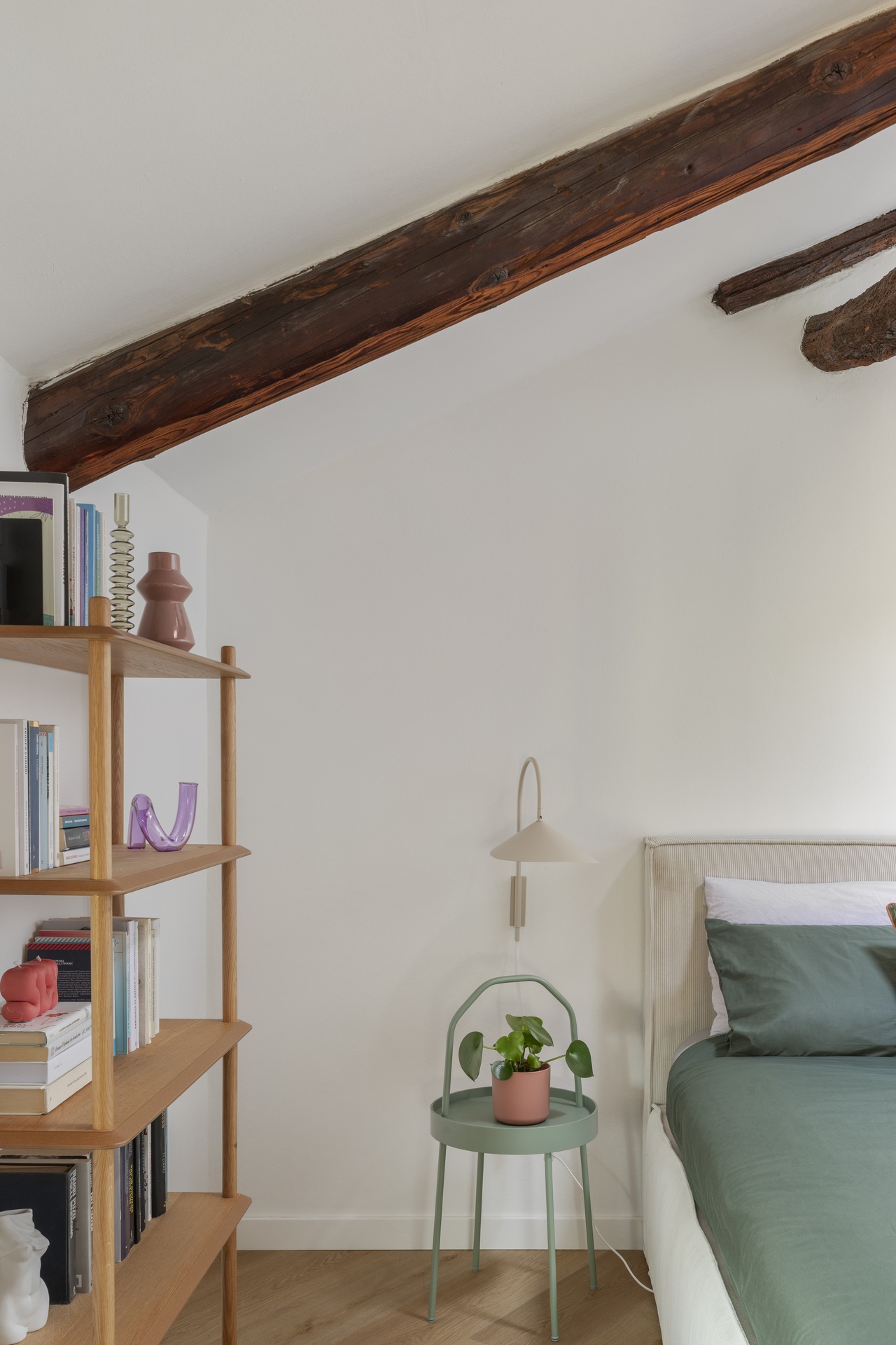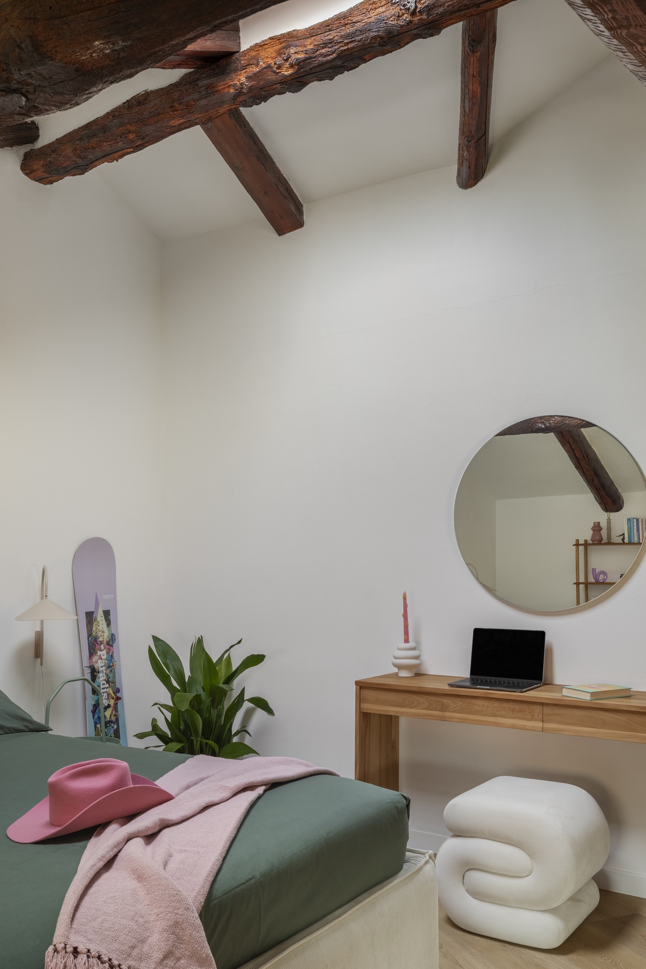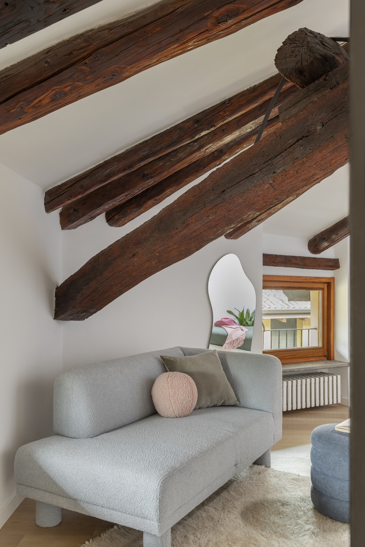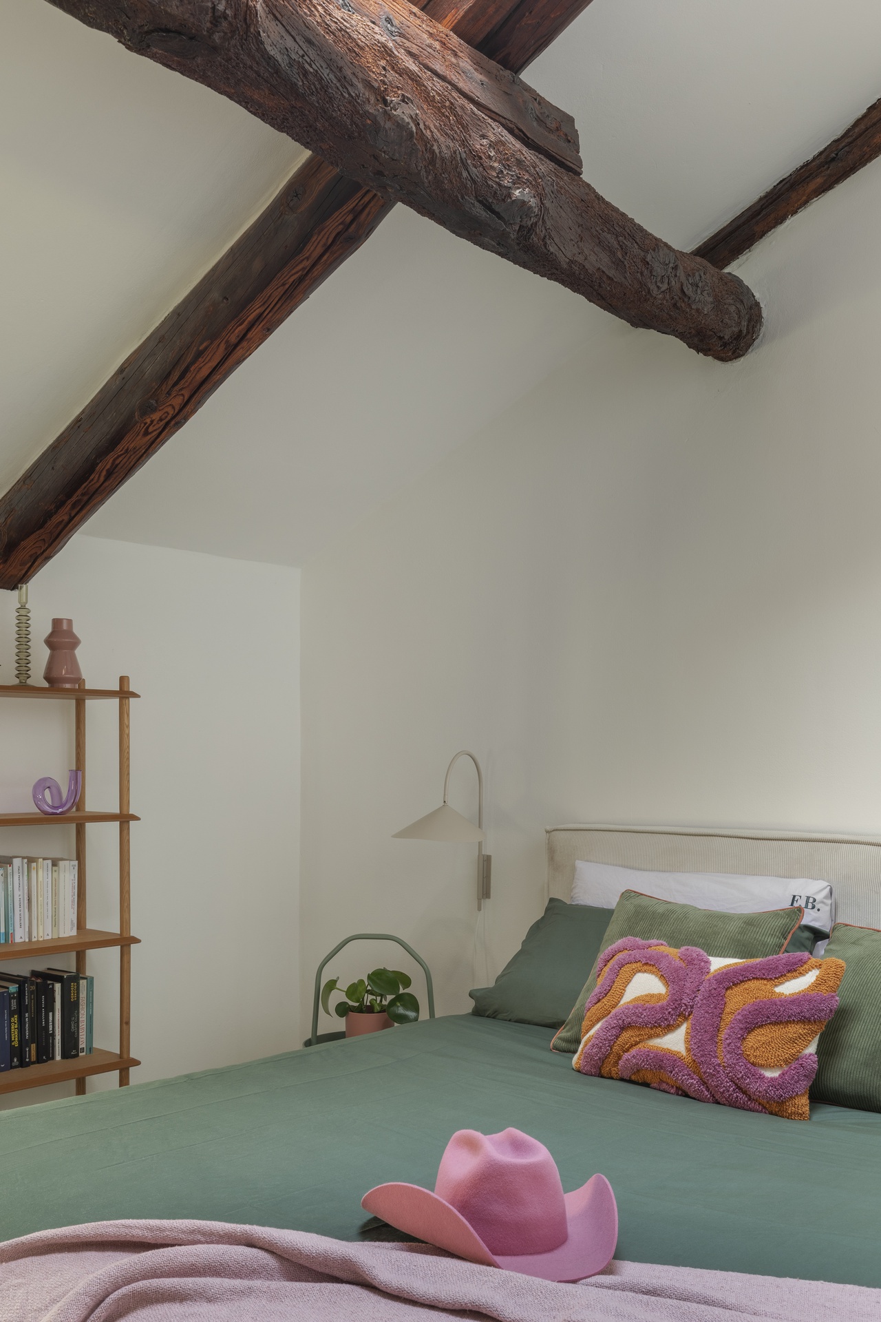 Un’architettura familiare, tradizionale e suggestiva.Le travi a vista scandiscono lo spazio e raccontano una casa che aveva già una propria anima, forte e riconoscibile.Il progetto nasce proprio da qui: dall’ascolto dell’esistente e dal desiderio di metterlo in dialogo con chi la abita.All’interno di questa struttura abbiamo inserito la personalità di Francesca Biella, interpretandola nel suo contesto più autentico: la famiglia.Uno spazio che riflette il suo carattere fresco e contemporaneo, con una vena giocosa e provocatoria, mai eccessiva.I cani diventano parte attiva della casa, presenze quotidiane che influenzano scelte e funzioni.Colori pop e frizzanti, linee morbide e soluzioni progettuali pensate per rendere ogni angolo vissuto e funzionale.La casa è stata progettata non solo come luogo da abitare, ma anche come spazio di lavoro.Essendo Francesca un’influencer, ogni ambiente è stato pensato anche come possibile set: sfondi riconoscibili, angoli narrativi, palette cromatiche capaci di dialogare con la luce e con l’obiettivo.Una casa che si vive quotidianamente, ma che allo stesso tempo si presta a essere raccontata, fotografata, condivisa, senza perdere autenticità.La convivialità resta uno dei temi centrali del progetto: il grande divano, il tavolo, gli spazi pensati per accogliere.Accanto a questa dimensione più aperta, emergono però anche momenti di intimità: il camino, gli angoli più raccolti, le zone dedicate alla parte più personale e privata.Un equilibrio costante tra comfort ed espressione, tra vita privata e lavoro.I dettagli diventano racconto.Le piastrelle della cucina si trasformano in un vero e proprio diario, richiamando l’idea delle pagine di un quaderno.Le lampade iconiche accompagnano gli spazi come segni riconoscibili, chiudendo il progetto con accenti decisi e consapevoli.Una casa da abitare, lavorare e raccontare.Un progetto che parla di identità, prima ancora che di stile.
