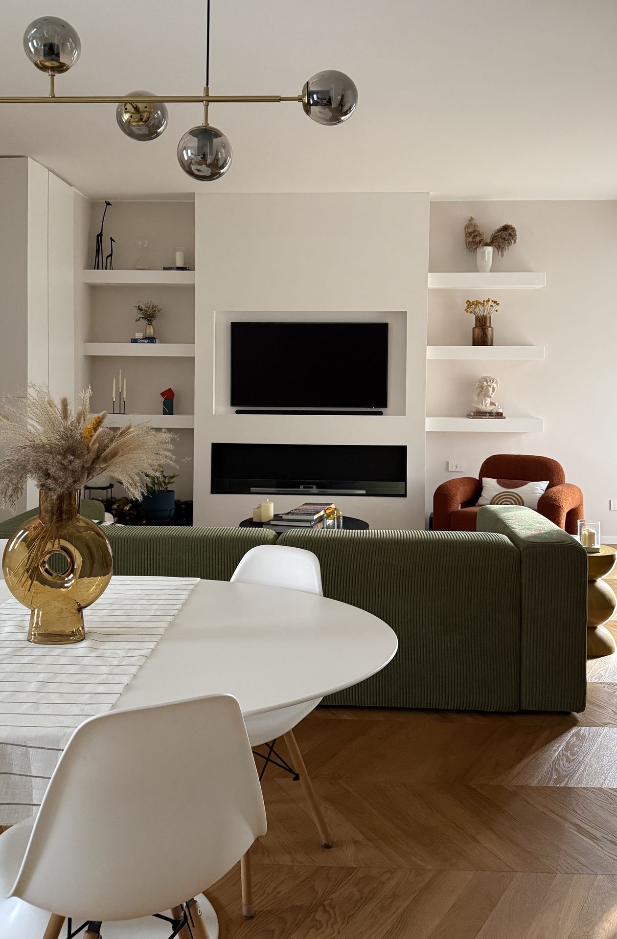 Casa EF è un appartamento milanese di 110 mq, completamente ripensato e trasformato dal suo stesso architetto. Un progetto personale, vissuto dall’interno, che unisce esigenze funzionali a una precisa visione estetica, fatta di equilibrio, calore e cura del dettaglio.Geometrie morbide, colori caldi, design su misura. Fin dal primo sguardo, l’atmosfera della casa è definita da un’estetica morbida e accogliente: non esistono spigoli vivi, ma curve fluide che accompagnano il movimento e lo sguardo. L’arredo su misura diventa elemento strutturale e organizzativo, modellando lo spazio e integrandosi perfettamente nell’architettura. I colori caldi amplificano la sensazione di comfort e armonia, esaltando le texture dei materiali e i volumi degli arredi. Il layout originale è stato completamente rivisto per rispondere alle esigenze di una famiglia contemporanea. Lo spazio è ora suddiviso in tre macroaree funzionali:Zona giorno: uno spazio fluido che integra cucina, soggiorno e pranzo, concepito per favorire la convivialità e la relazione. Si trova qui un piccolo bagno ospiti con antibagno. Zona notte: riservata e intima, comprende la camera padronale e uno studio multifunzionale.Zona di servizio: razionalizzata e funzionale, comprende un secondo bagno e un pratico spazio lavanderia, ricavato in una nicchia su misura.Ogni ambiente è progettato con attenzione alla quotidianità, all’uso pratico degli spazi e alla possibilità di adattarsi nel tempo.I complementi di design – una selezione tra icone contemporanee e arredi custom-made – si integrano in un racconto coerente, dove ogni dettaglio è studiato per essere vissuto. Le superfici materiche, la luce naturale e artificiale, le cromie e le linee arrotondate contribuiscono a creare un ambiente domestico in cui estetica e funzionalità convivono in armonia.