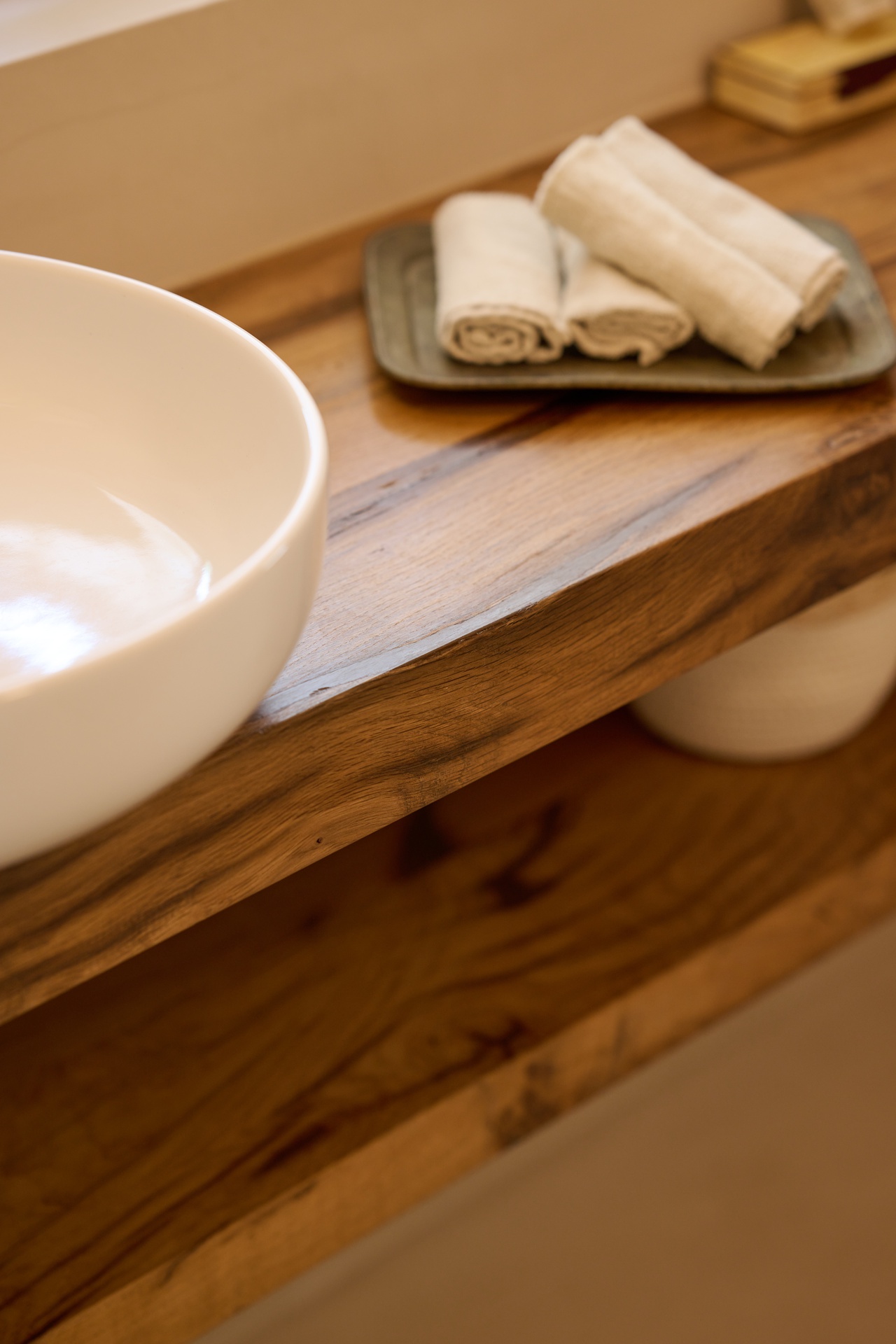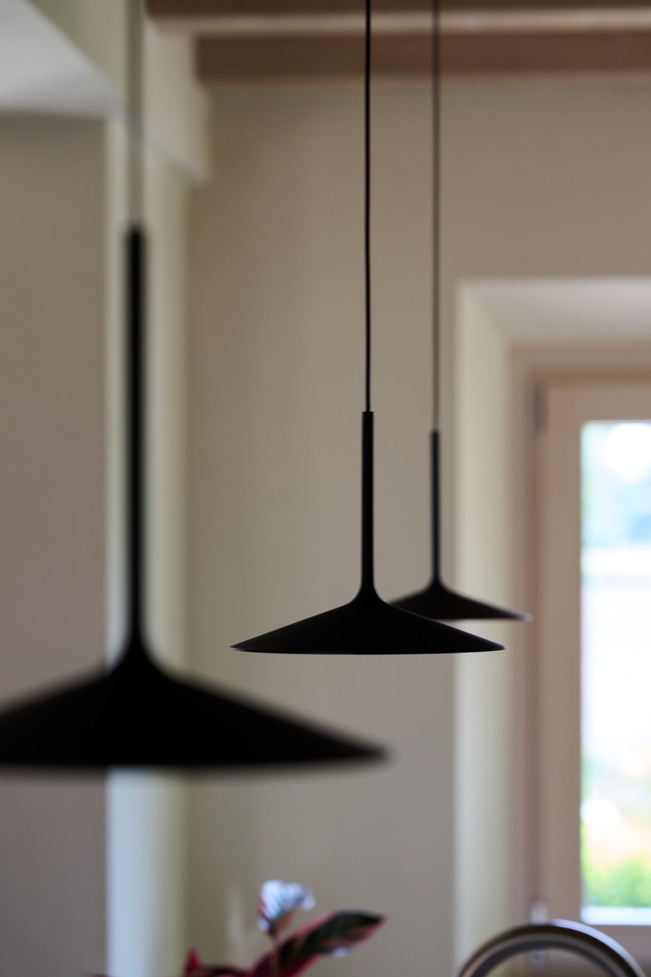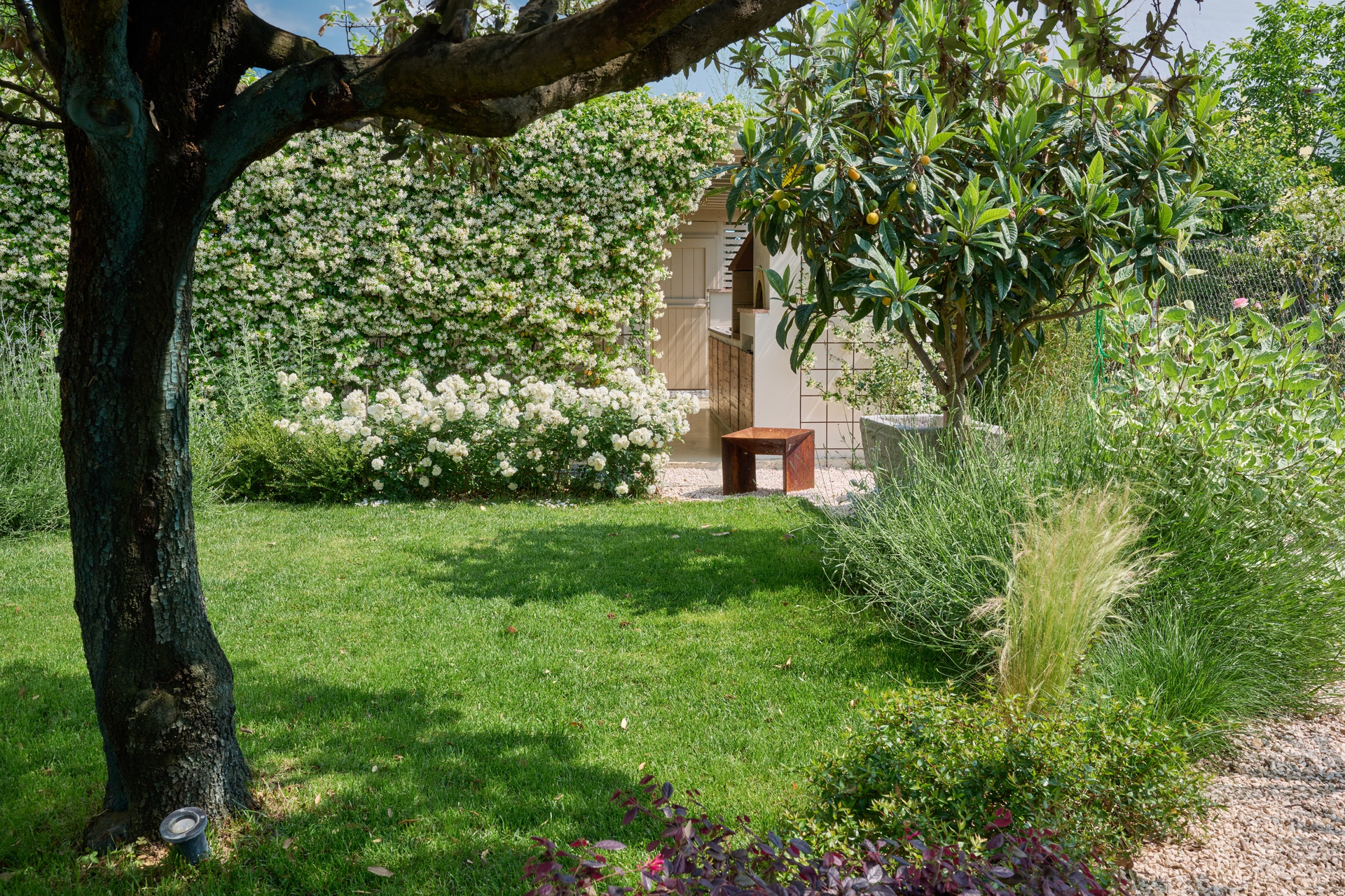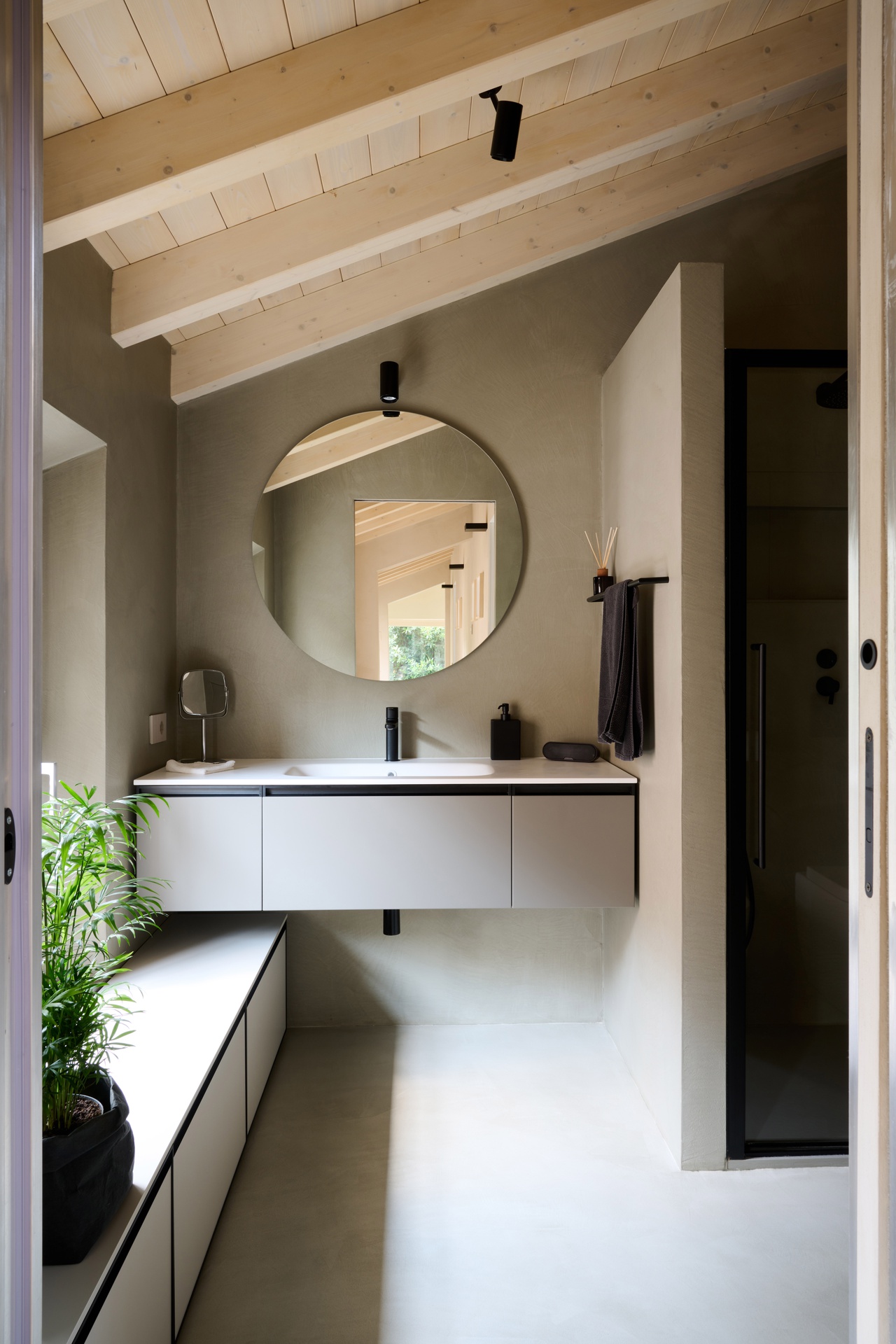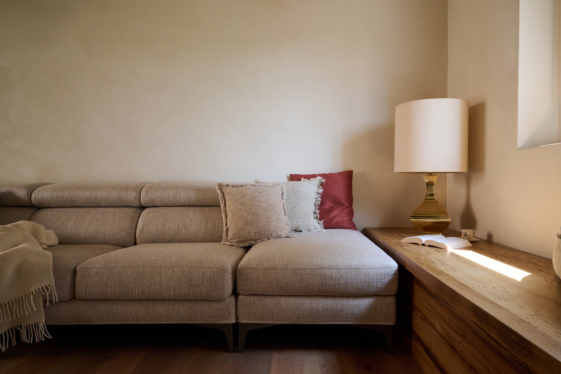 L’intervento ha avuto come obiettivo la ristrutturazione di una casa rurale con vincolo di restauro, risalente a fine ‘800 situata nella campagna modenese, composta da una abitazione al piano primo e magazzini e stalle al piano terra. Partendo dalla sagoma originale, si è ricavata un’unica abitazione disposta su due piani che ricerca l’armonia tra le forme della tradizione (soffitti voltati in pietra o in legno e tavelle di cotto, pareti tinteggiate a calce, infissi in legno) e il comfort della modernità, ripristinando l’atmosfera domestica di una volta e la tradizione del luogo.La pianta originaria dell’edificio risalente alla fine dell’800, è stata in parte modificata. Sono state mantenute e ampliate le aperture finestrate e gli accessi; le grandi bucature del piano primo, che in origine si affacciavano su una loggia aperta, oggi illuminano dall’alto la scala rivestita in rovere. Al piano terra, inizialmente adibito a magazzini e stalle, vi si accedeva tramite un locale voltato con due grandi aperture ad arco disposte frontalmente. Questo ingresso è stato valorizzato diventando il fulcro abitativo della casa con la zona pranzo e la cucina disposta ad isola da cui si osserva il soggiorno, esaltando la funzionalità e la convivialità del luogo.Ai colori e materiali che rimandano alla tipologia rurale, sono stati affiancati materiali nuovi come la pavimentazione in rovere, continua anche nella scala di collegamento tra i piani, il cemento ecologico per le superfici dei bagni, e arredi realizzati su disegno della progettista utilizzando il legno di recupero della demolizione, originario del ‘600. L’uso dei colori della terra, di materiali naturali, di forme organiche, di arredi realizzati su misura o vintage di recupero, rendono gli spazi accoglienti e in armonia tra loro, collegati da un filo invisibile creato dalla luce naturale proveniente dalle ampie vetrate e dalla matericità delle finiture. “L’intento è stato quello di trasformare l’abitazione in una casa moderna ma con il calore e l’accoglienza dell’antico. Una casa dal tempo indefinito, legata al passato e proiettata nel futuro che non invecchierà mai”