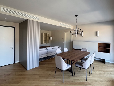 Il progetto è nato dall'esigenza di adattare un appartamento "datato" al gusto contemporaneo dei nuovi proprietari che desideravano, per la loro nuova casa, uno stile moderno ma non freddo ed impersonale. Per prima cosa, si è scelto di eliminare le partizioni tra le stanze della zona giorno, in modo da rendere più fruibili gli spazi ad uso quotidiano. Per quanto riguarda i materiali, insieme ai proprietari, abbiamo scelto la calda accoglienza del parquet in rovere per il pavimento di salotto e camere da letto, i colori delle maioliche napoletane per i bagni e la praticità del gres per la cucina.