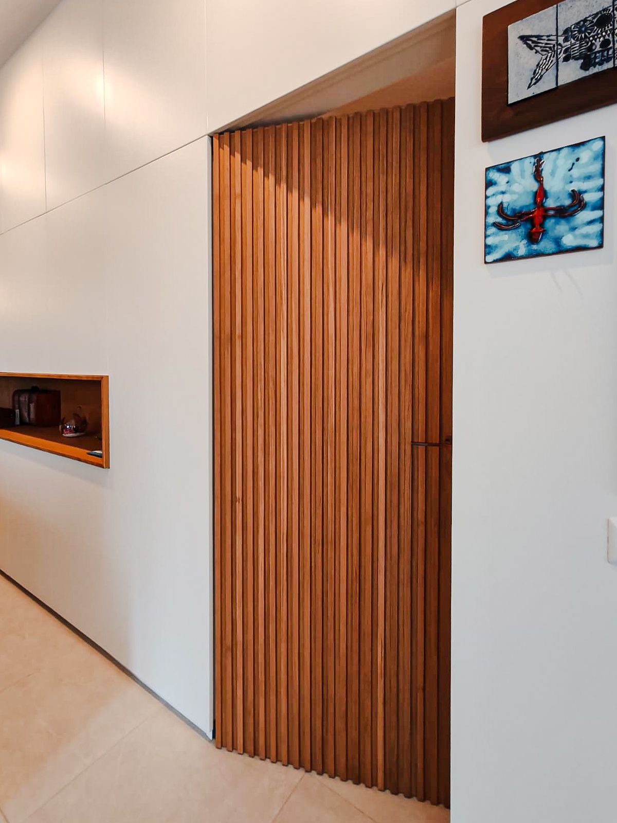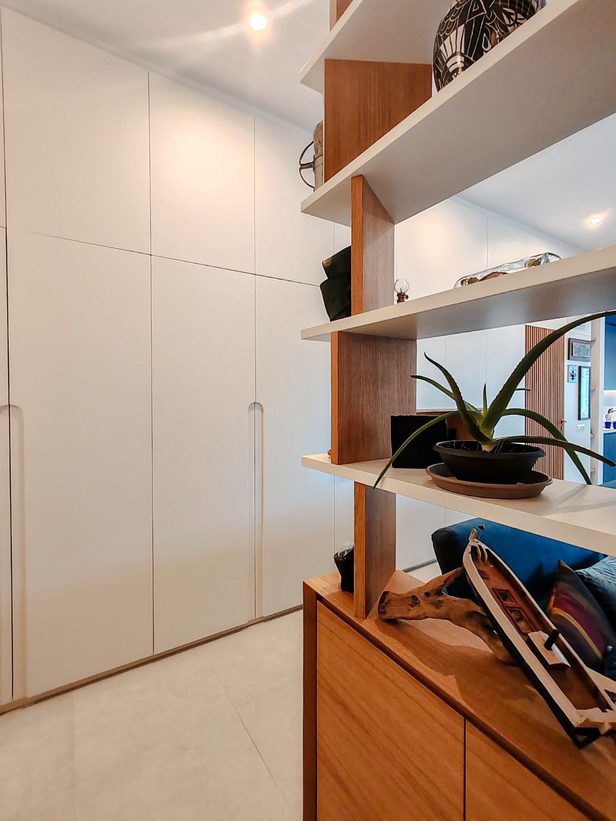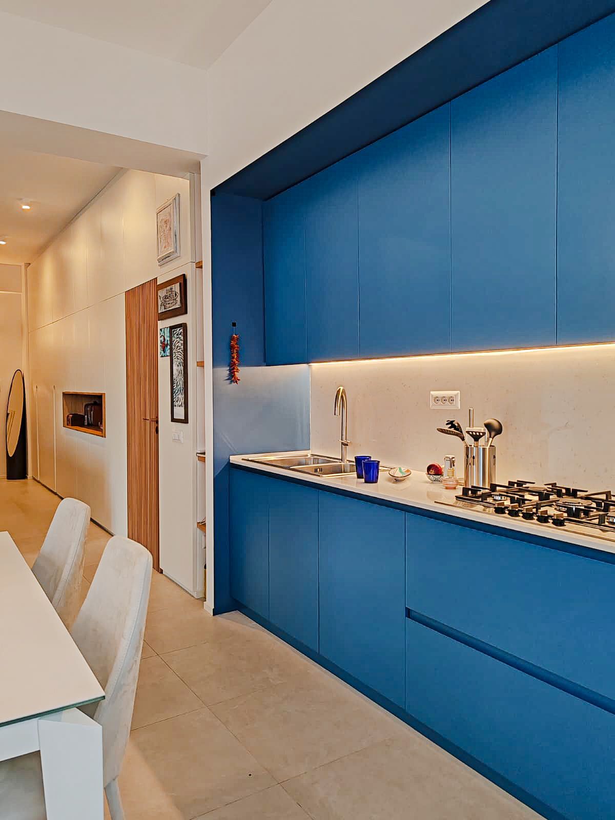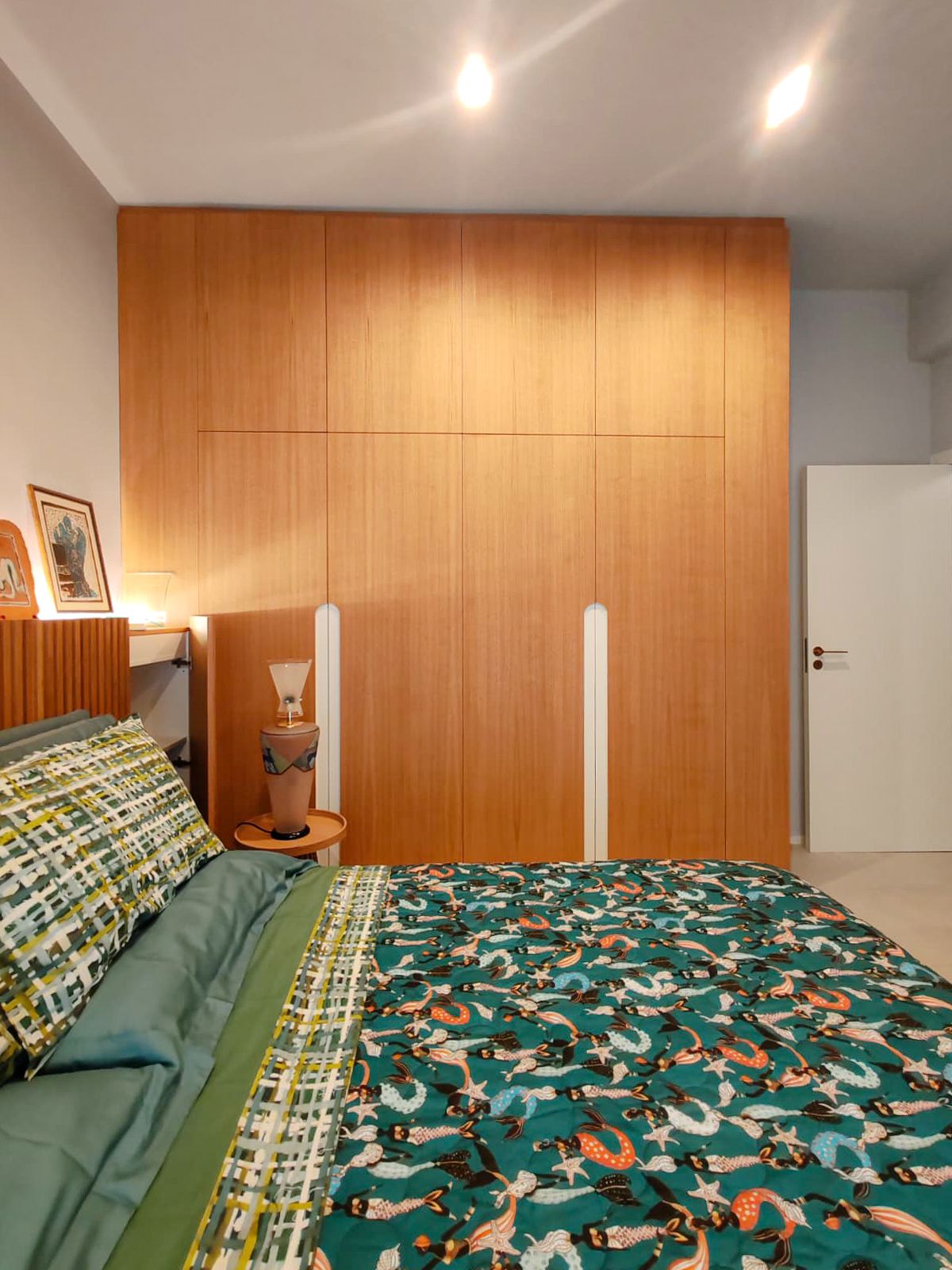 In questo progetto, l'obiettivo principale è stato quello di massimizzare l'illuminazione naturale nella zona giorno e creare soluzioni di contenimento su misura, come armadi a muro, per rispondere alle specifiche esigenze del cliente.L'intervento ha previsto in gran parte la demolizione dei tramezzi che frammentavano l'area living, al fine di ottenere un ampio open space.Sul lato sinistro è stato realizzato un grande armadio a muro, armoniosamente integrato con una boiserie e una porta filo muro in legno di rovere chiaro con finitura a doghe.L’intero ambiente è stato arricchito dall’utilizzo di tonalità ispirate al mare per pavimenti e cucina, un richiamo alla passione del proprietario per il mare e la nautica.Sono stati ricavati due bagni, uno a servizio della camera padronale e uno per gli ospiti, entrambi dotati di finestra.La zona lavanderia è stata sapientemente nascosta all'interno di armadi a muro con finitura a doghe, mantenendo così l’estetica pulita e ordinata.Questo progetto, attualmente in fase di completamento, ha richiesto un lavoro di falegnameria altamente specializzato, che ha dato vita a un ambiente completamente rinnovato, caratterizzato da una cura meticolosa per i dettagli e soluzioni su misura.