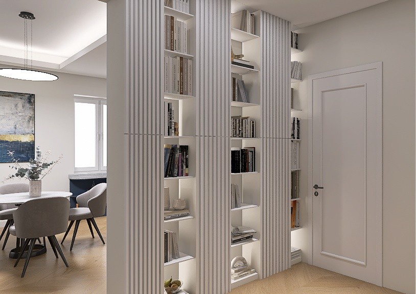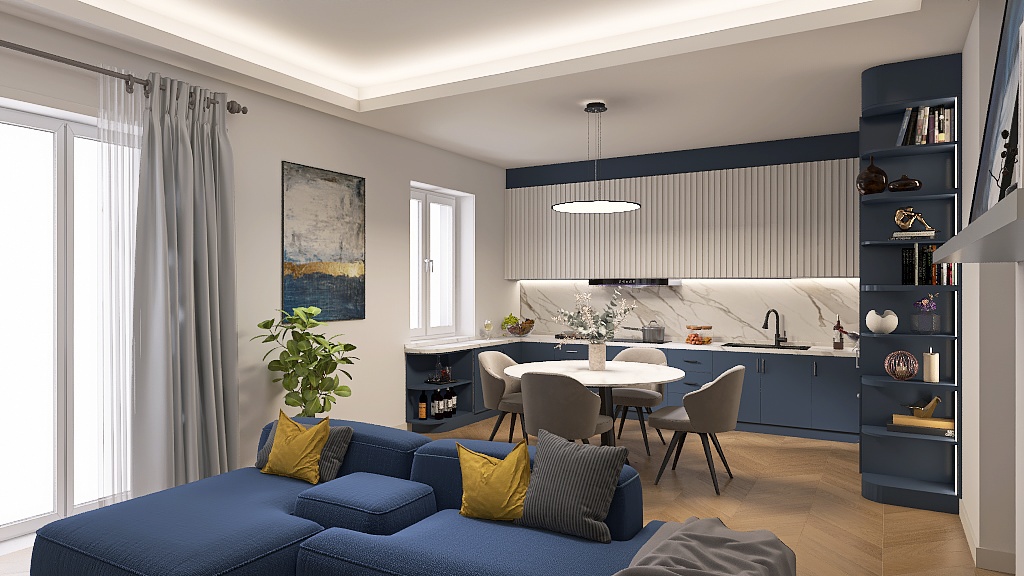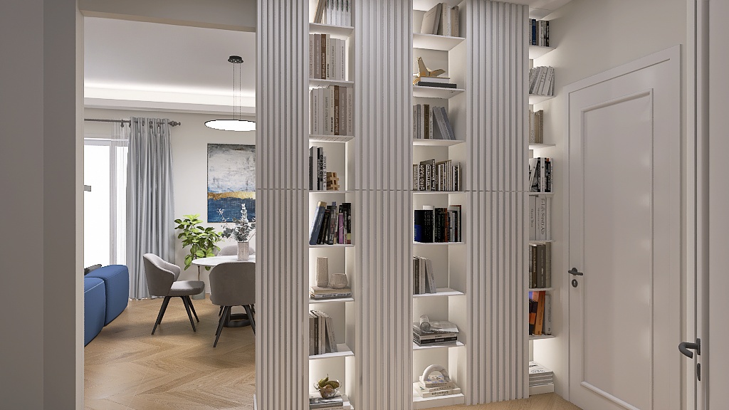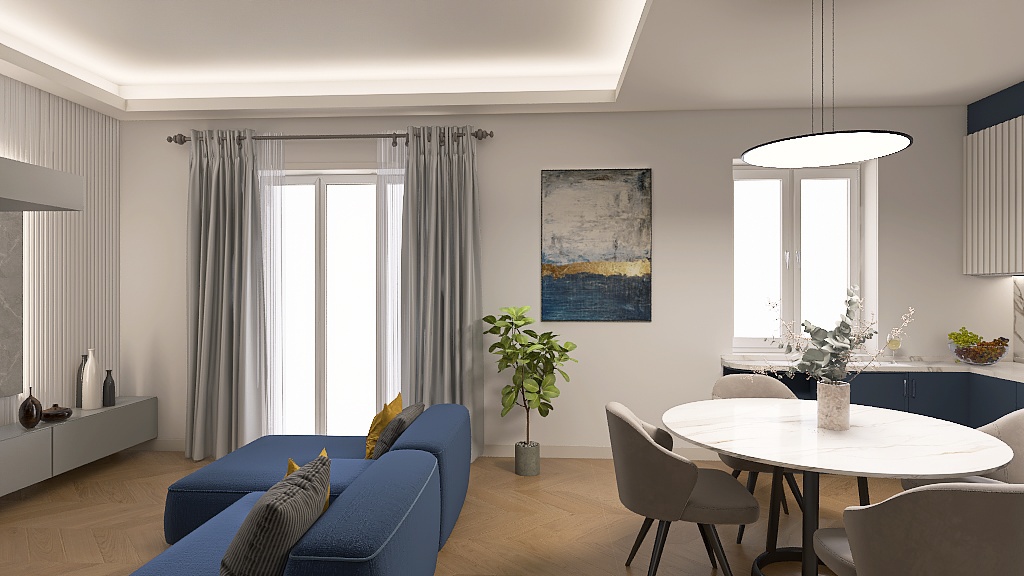L’appartamento, situato nel cuore di Trastevere, prima della ristrutturazione presentava una cucina abitabile, un soggiorno piuttosto contenuto, un unico bagno, una camera matrimoniale e una camera singola. La nuova configurazione degli spazi ha permesso di migliorare significativamente la funzionalità della casa.L’intervento ha introdotto un bagno principale e un bagno en suite collegato alla camera matrimoniale, oltre a una lavanderia dedicata. La cucina è stata spostata e ripensata in versione aperta sul soggiorno, creando un ambiente living più ampio e luminoso. Lo spazio precedentemente occupato dalla cucina è stato invece trasformato in una nuova camera singola, migliorando così la distribuzione interna e aumentando il numero dei locali utili.