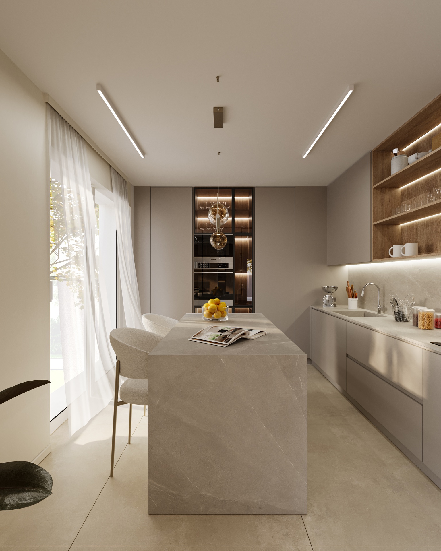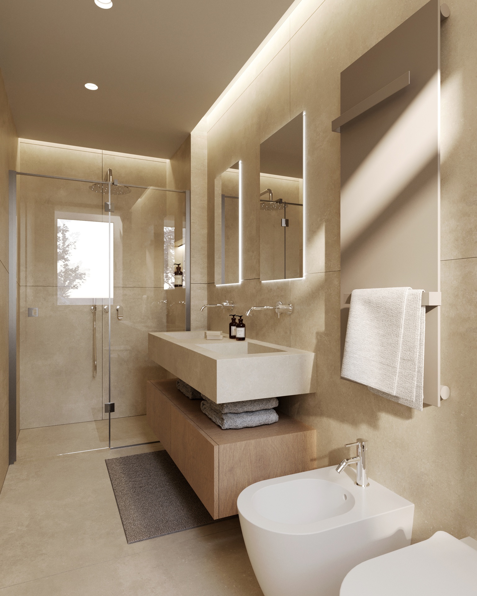 L'intervento riguarda la progettazione interna di una villetta di circa 140 mq di nuova costruzione. Un design moderno ed elegante dai colori caldi ed accoglienti, impreziosito dai dettagli in finitura champagne.