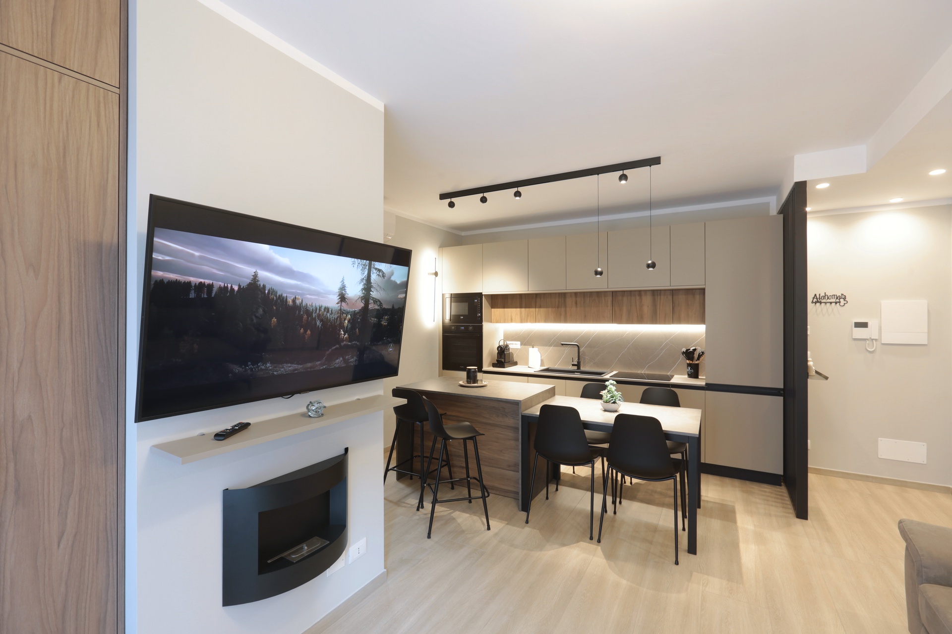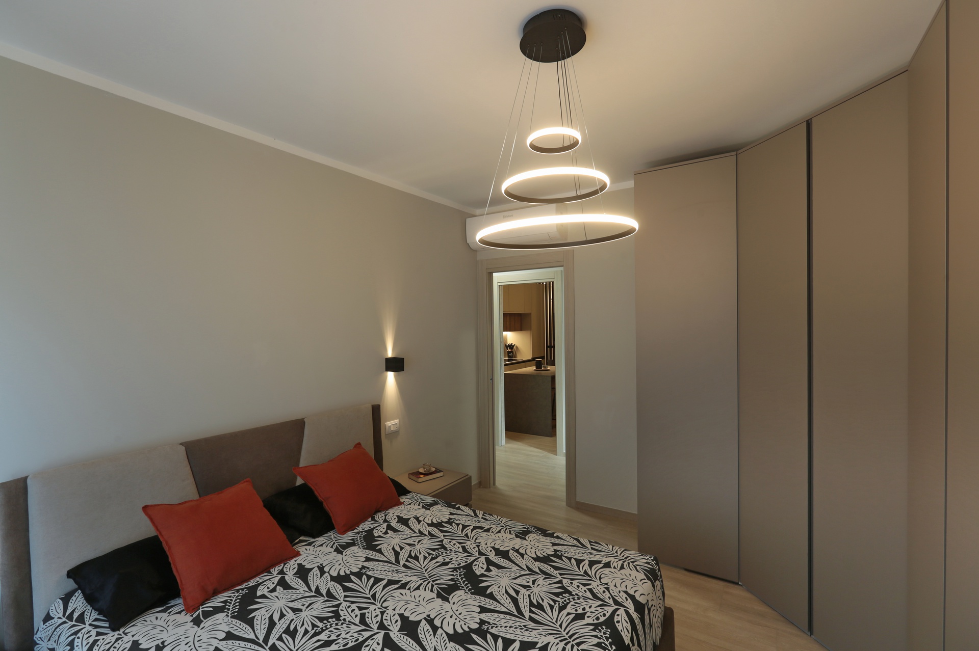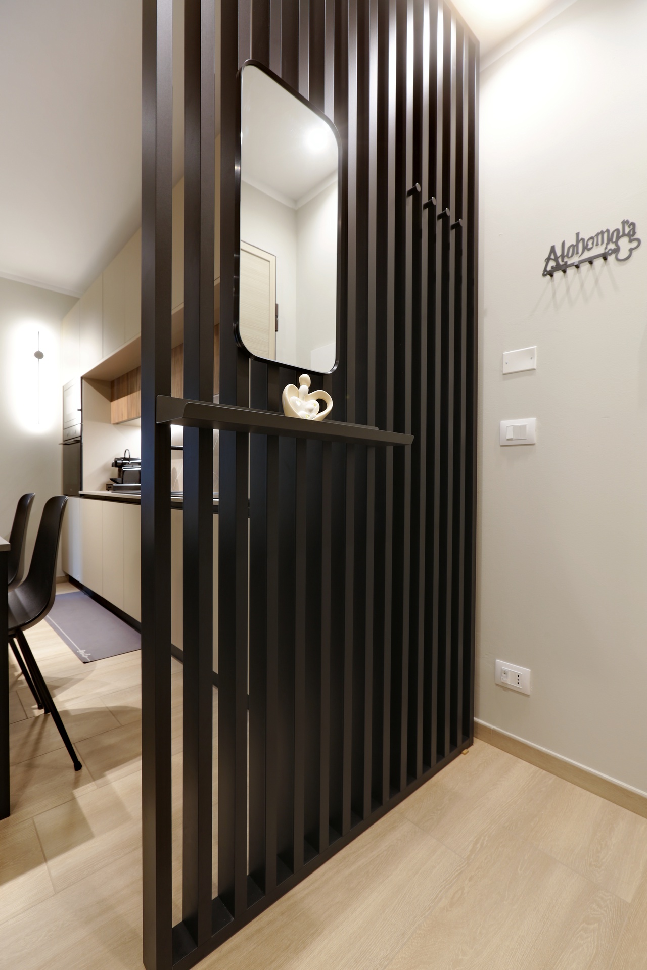 Questo fantastico progetto è stato realizzato in piena armonia con la proprietà. Ho presentato moodboard, cataloghi e campionario ed è risultato sin da subito, in perfetta sintonia con i gusti e soprattutto con il budget dei clienti.Un rendering curato nei dettagli, l'attenzione dei clienti nel seguire i consigli di acquisto, anche dei complementi, il pieno rispetto dei colori hanno permesso una realizzazione perfetta, si riesce a distinguere con difficoltà, il disegno dalla realtà.Sono stati sfruttati tutti gli spazi, ricavando anche due armadi a muro: uno nella nicchia zona living che sarà usato come guardaroba, e l'altro nel disimpegno che divide la zona giorno dalla zona notte, con un armadio/lavanderia: all'interno lavatrice, asciugatrice e ripiani. La mia presenza continua, l'assistenza di cantiere e di montaggio, il dialogo continuo con i clienti hanno portato il risultato desiderato.