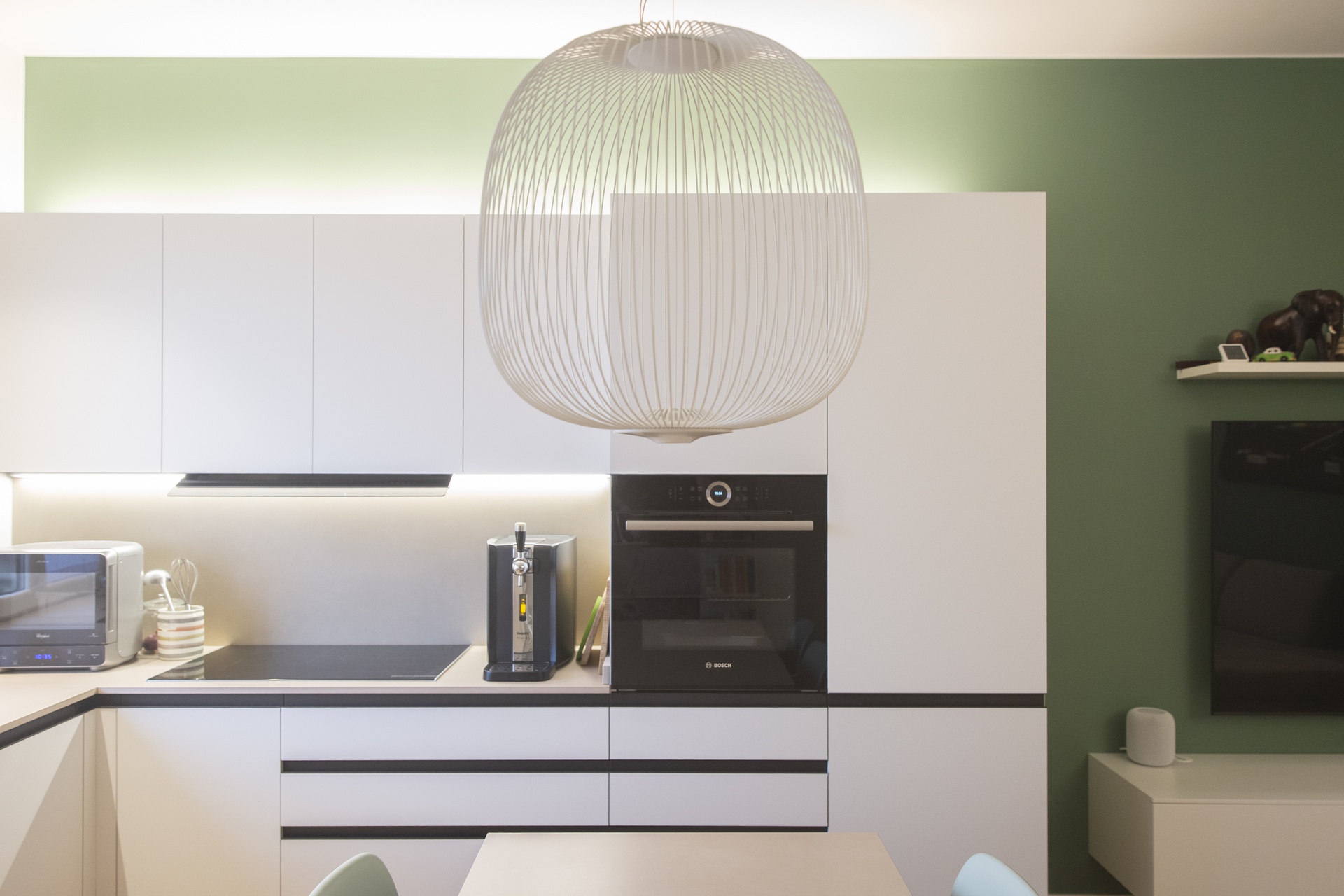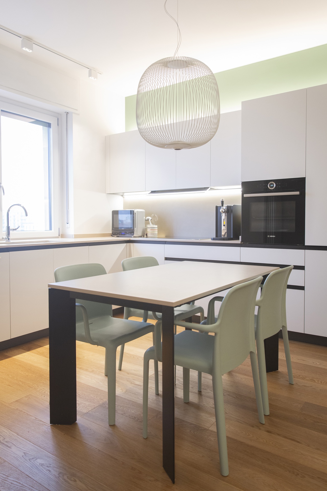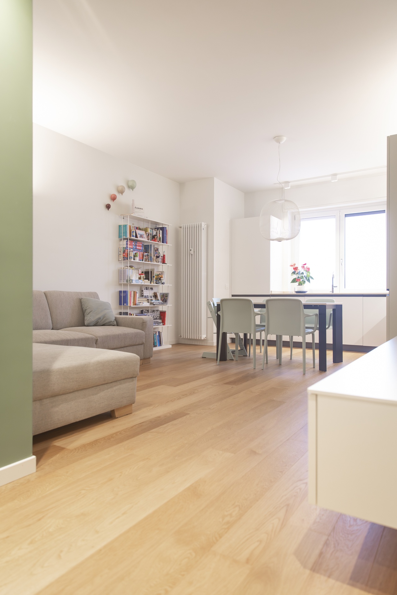 Ristrutturazione completa di un trilocale per una famiglia.Il cuore della casa è il soggiorno con cucina open space, un ambiente conviviale dove le pareti color verde donano un tocco di freschezza e serenità, rendendo l’ambiente caldo e piacevole da vivere in ogni momento della giornata.Ogni ambiente è stato progettato per coniugare stile, comfort e personalità, regalando la sensazione di un equilibrio perfetto tra design e calore domestico.Progetto e DL: Serena Trentarossi architettoFotografie: Sarah Tarves
