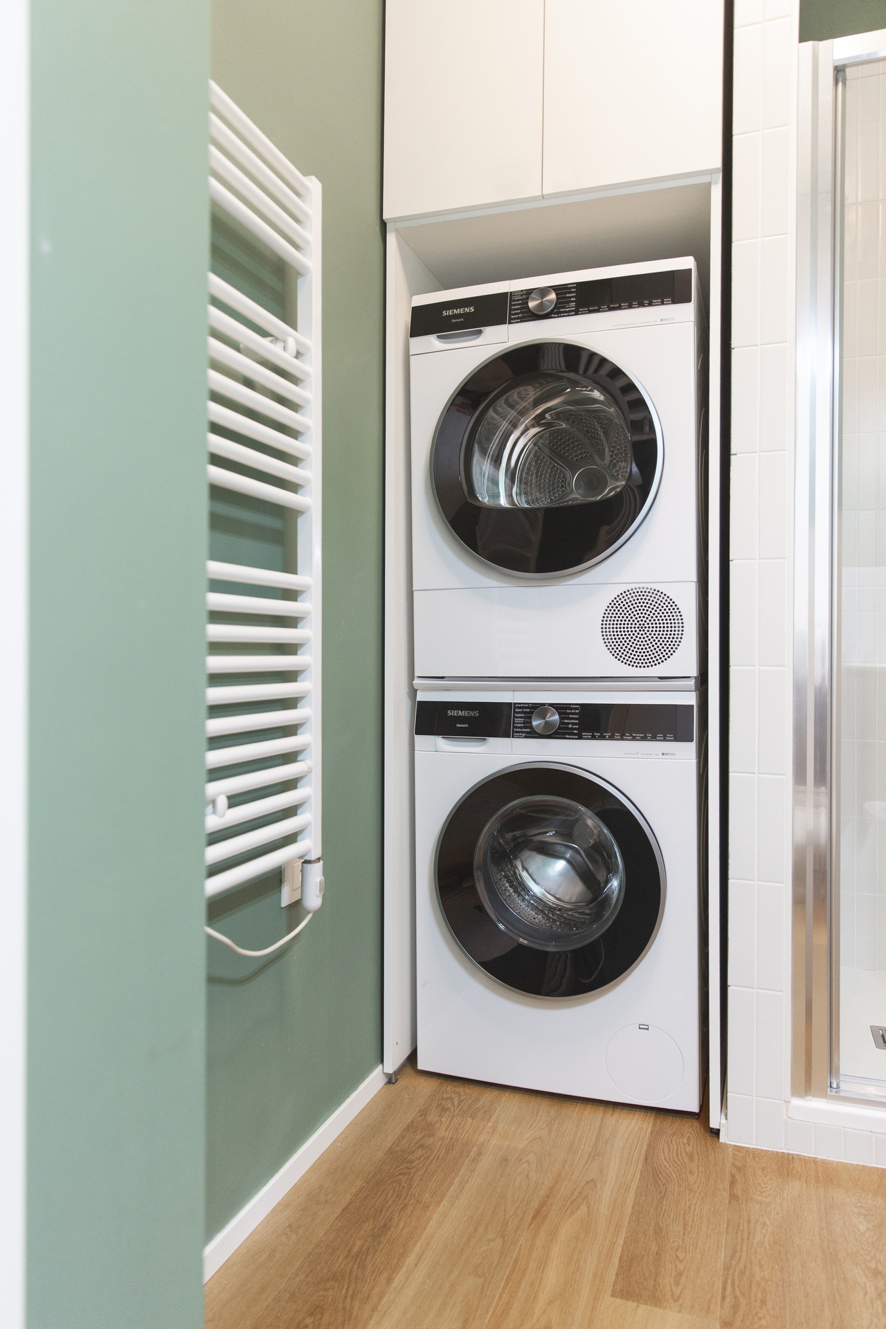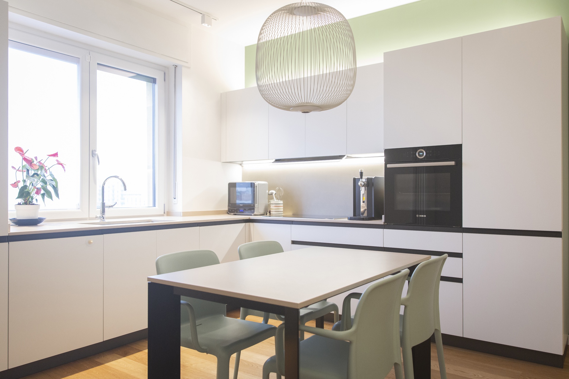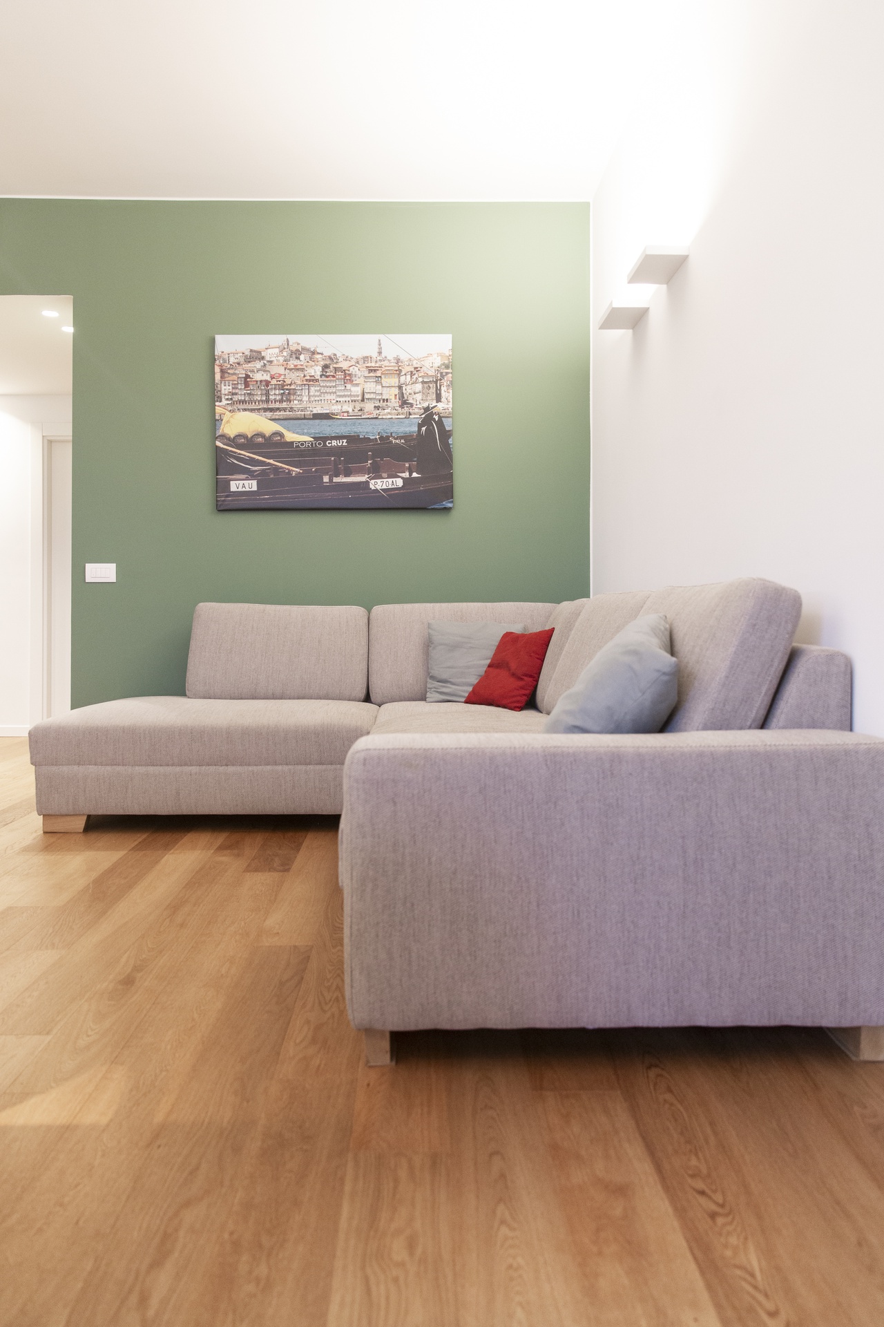 Ristrutturazione completa di un trilocale per una famiglia.Il cuore della casa è il soggiorno con cucina open space, un ambiente conviviale dove le pareti color verde donano un tocco di freschezza e serenità, rendendo l’ambiente caldo e piacevole da vivere in ogni momento della giornata.Ogni ambiente è stato progettato per coniugare stile, comfort e personalità, regalando la sensazione di un equilibrio perfetto tra design e calore domestico.Progetto e DL: Serena Trentarossi architettoFotografie: Sarah Tarves