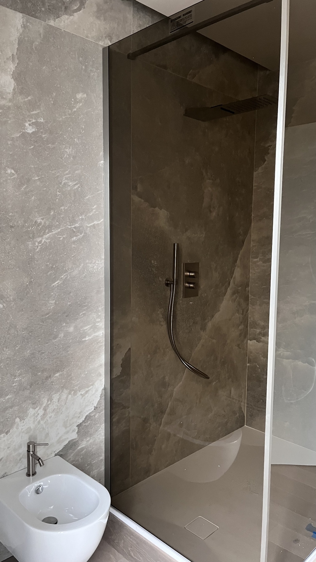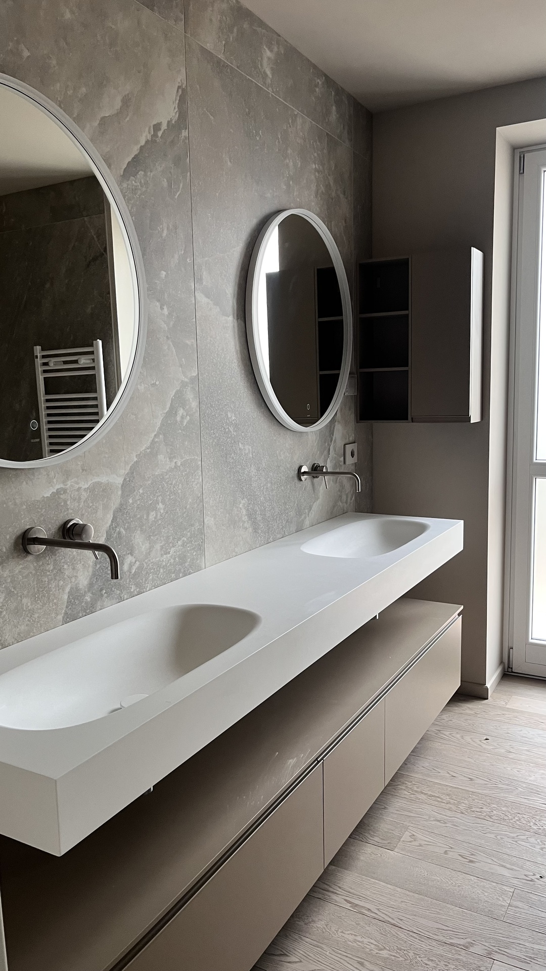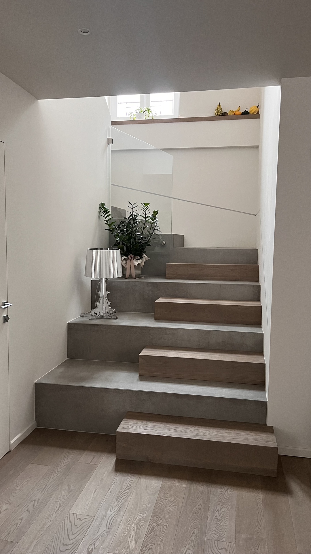 La casa, disposta su due livelli, nasce dall’unione di due appartamenti inizialmente separati. L’intervento di ristrutturazione ha permesso di creare un’abitazione unica e armonica, organizzando al piano rialzato la zona giorno, una camera per gli ospiti e il bagno dedicato, mentre il primo piano accoglie la zona notte con due camere da letto, due bagni, una lavanderia e una cabina armadio.Il desiderio dei clienti era quello di ottenere uno stile minimal ma accogliente, guidato da una palette di colori pastello, desaturati e naturali, capaci di creare un’atmosfera rilassante e coerente in tutti gli ambienti.Al piano terra, un ampio open space è stato progettato con particolare attenzione allo studio dell’illuminazione: faretti, velette per l’illuminazione indiretta e un pannello retroilluminato per la TV consentono di stratificare la luce e modularla in base ai diversi momenti della giornata e alle attività quotidiane. La cucina, ampia e priva di pensili, è valorizzata da una grande isola centrale e da un cambio di pavimentazione che dialoga in modo elegante e continuo con il parquet della zona living.Al piano superiore, il bagno principale è pensato come una vera e propria spa domestica, con una grande doccia walk-in rivestita da piastrelle a tutta altezza. La camera da letto padronale, infine, si distingue per la parete dietro al letto, un elemento scenografico che integra carta da parati, pannelli 3D e illuminazione indiretta, creando un ambiente intimo e avvolgente.