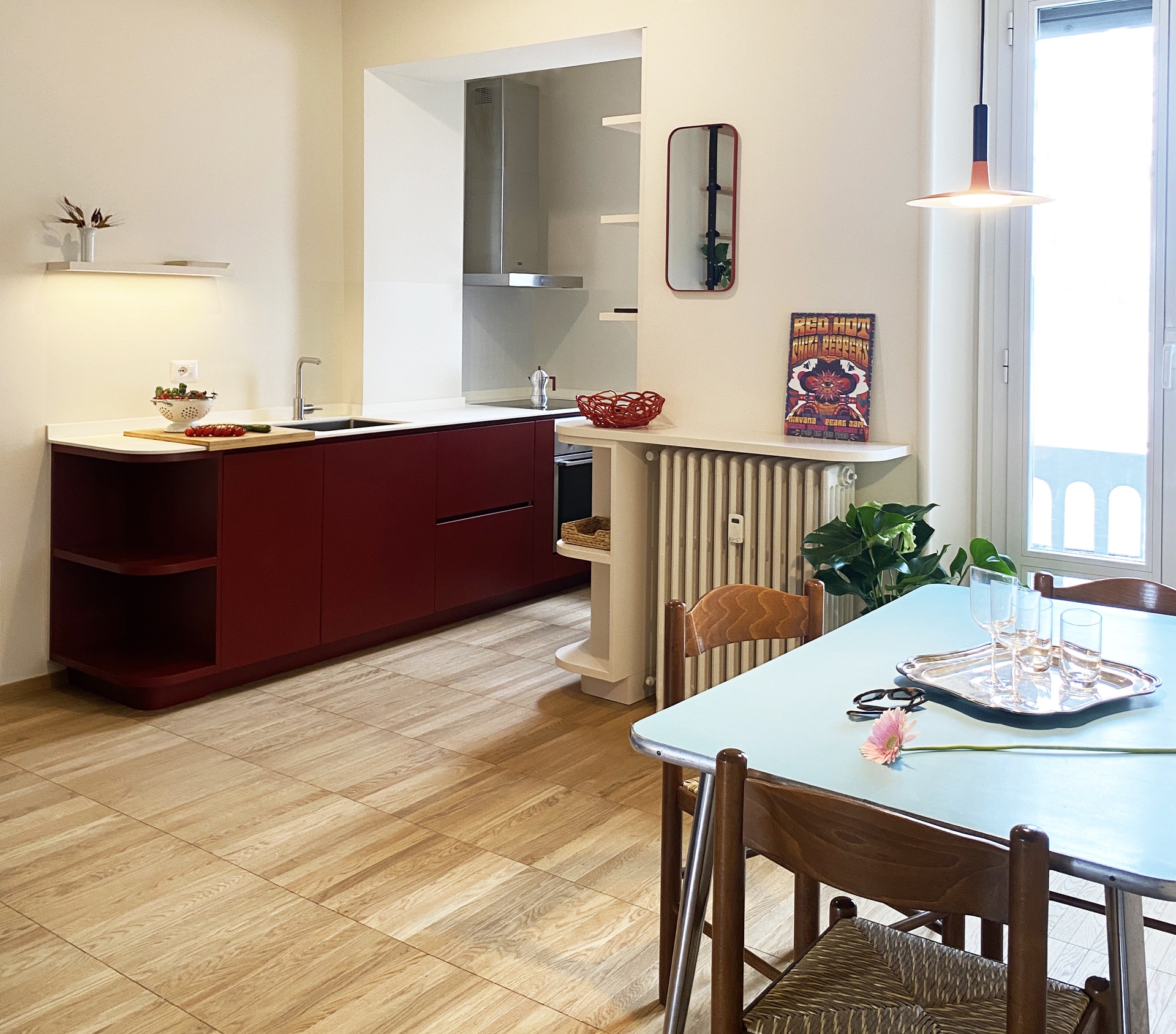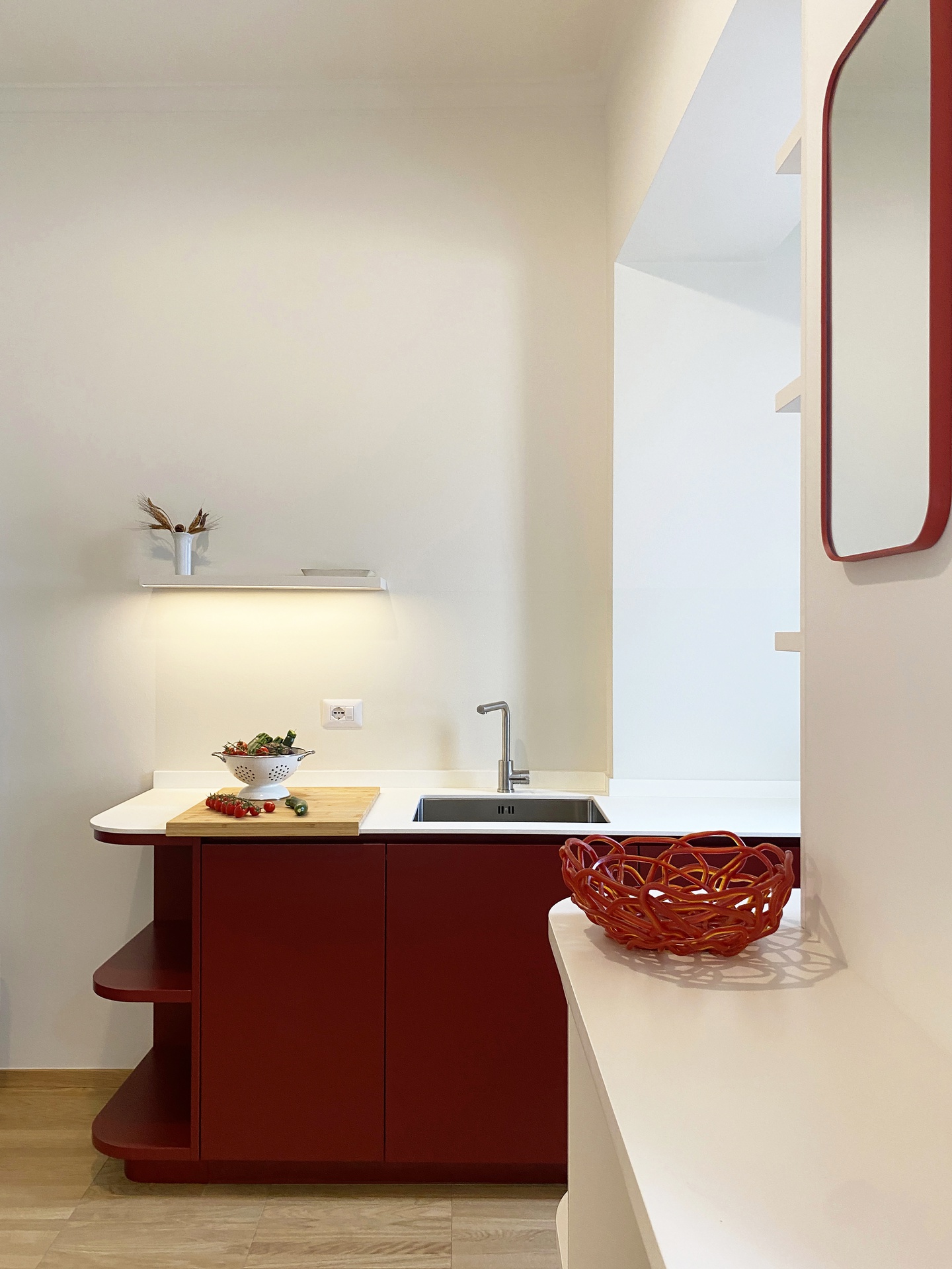 Casa Picozzi è un appartamento privato di 45 m2 più terrazza situato nel quartiere Casoretto, a Milano. Un caldo pavimento in parquet di rovere naturale posato a sorella caratterizza il piccolo appartamento, rendendolo unico. La cucina laccata rossa e le piastrelle blu oceano del bagno aggiungono un tocco di colore agli ambienti.