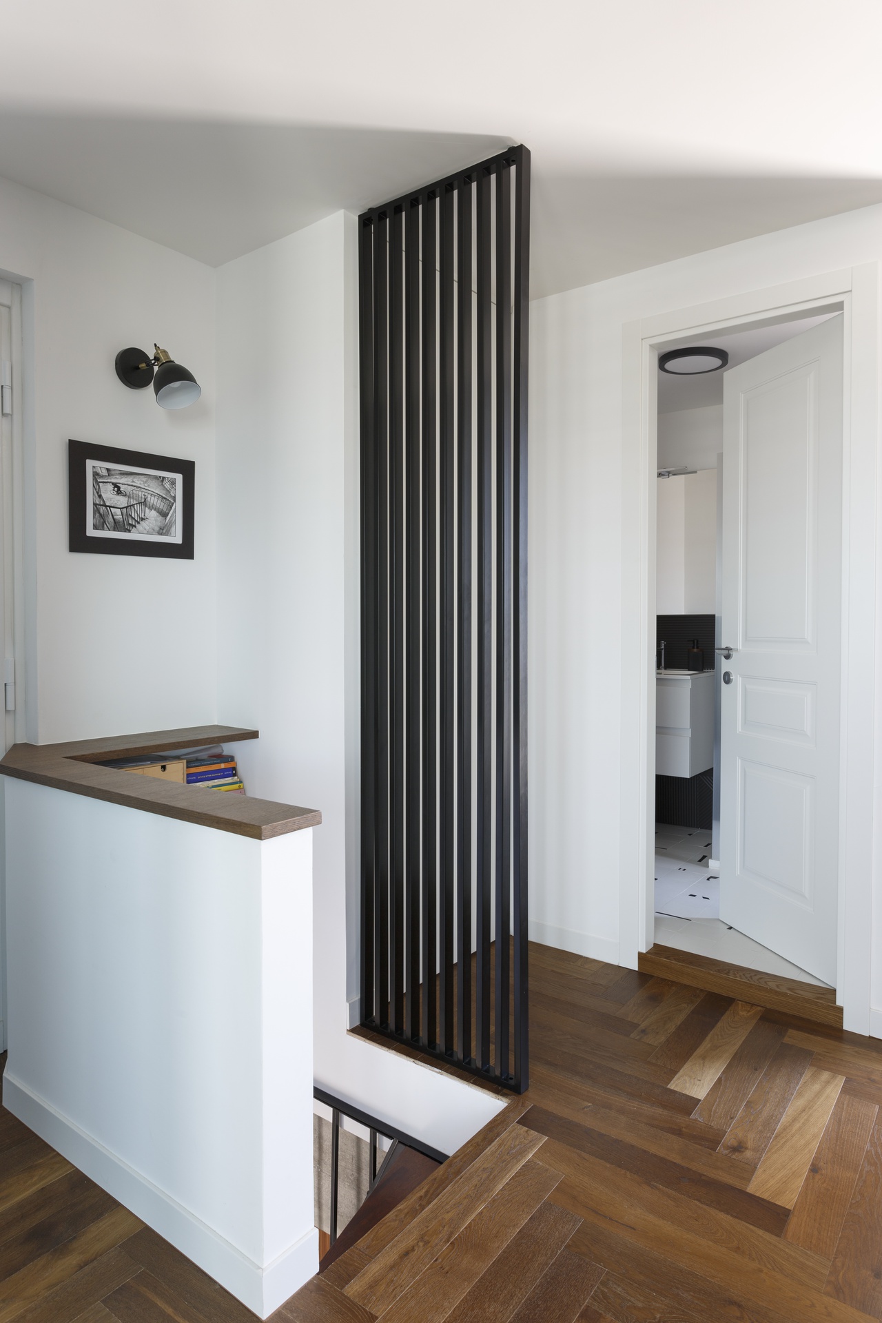 Progettazione e direzione lavori dell'appartamento disposto su due livelli. AL piano attico è stata ampliata la zona giorno aprendo la cucina e l'ingresso per creare un unico ambiente. La zona notte è suddivisa in due camere e un bagno. Al piano superattico a cui si acede con una scala interna realizzata su nostro disegno, è situato lo spazio di lavoro dei proprietari e un bagno ospiti.