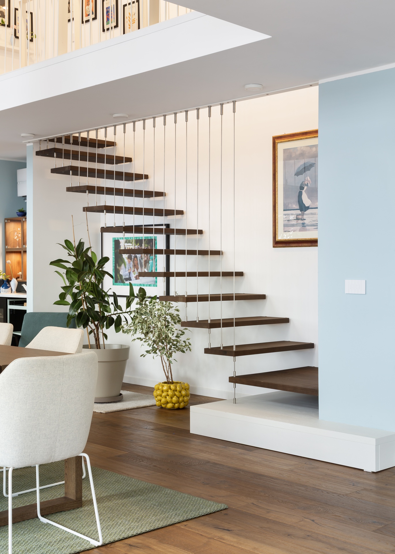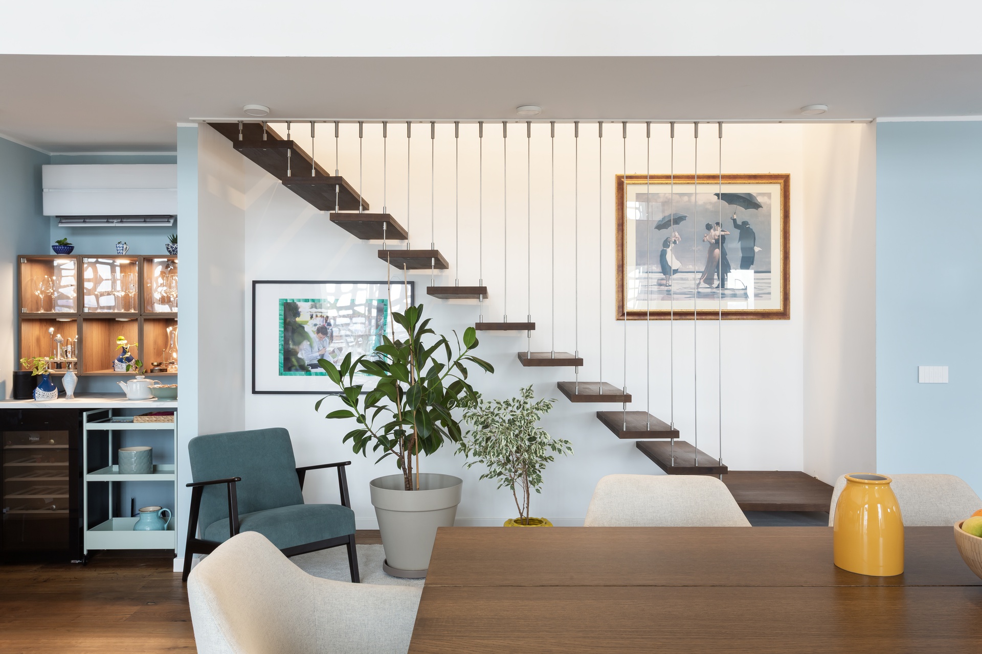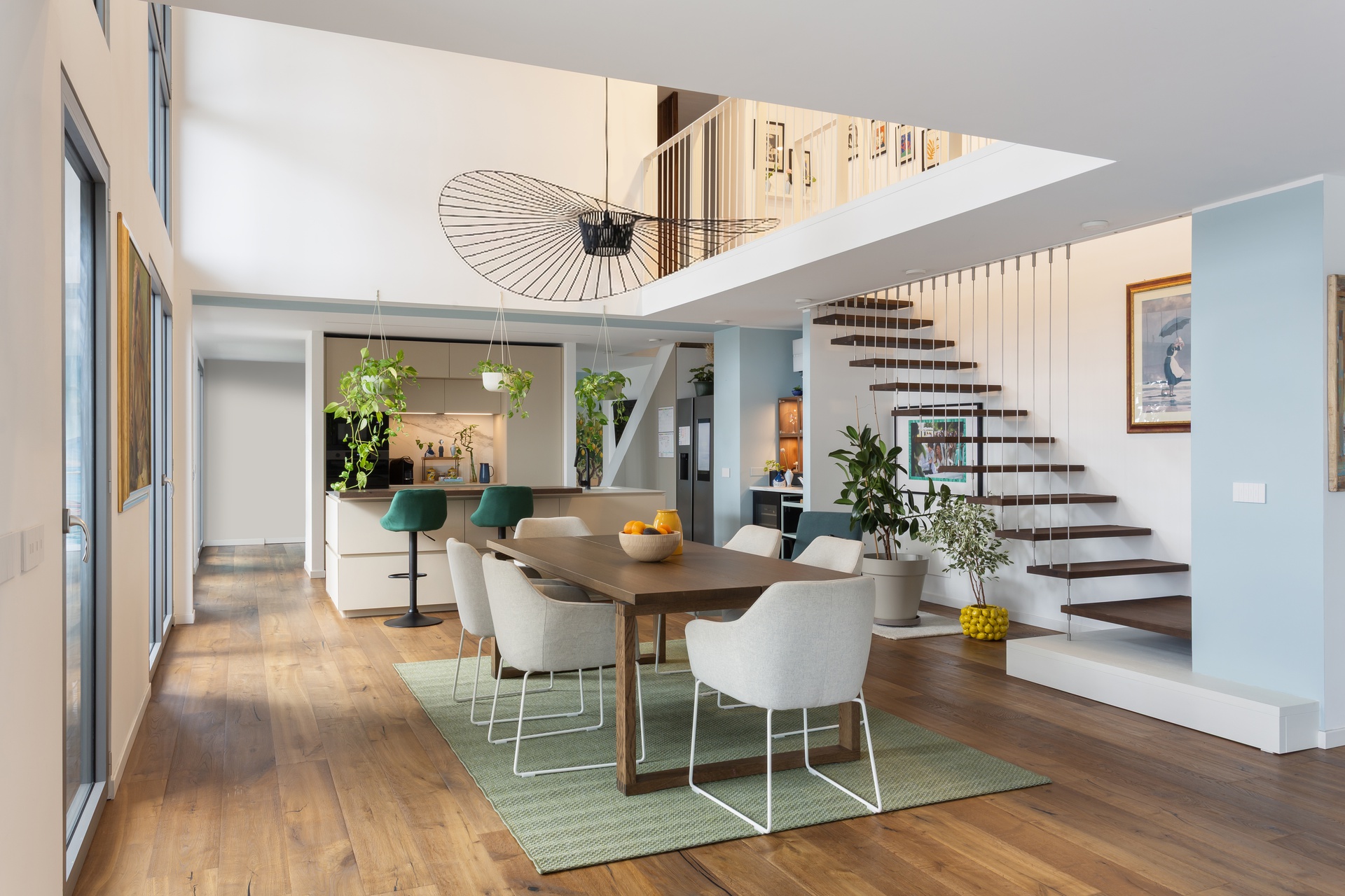 Questo progetto nasce in modo un po’ diverso dal solito: non da un’idea già definita, ma da un universo di intuizioni, desideri e suggestioni – tante, vivacissime e inizialmente anche confuse. Una coppia di amici di Selina, genitori di tre figli, ci ha chiesto supporto nella progettazione della loro nuova casa: un luogo che li rappresentasse davvero, senza compromessi, al 100%. Come ricorda spesso Selina, il progetto di una casa è prima di tutto un esercizio di ascolto. Il ruolo dell’architetto sta nel saper leggere anche ciò che non viene detto chiaramente, nel mettere ordine tra priorità e aspirazioni, e nel trasformare questi “ingredienti” in spazi capaci di rendere più bella la vita quotidiana di chi li abita. La casa si sviluppa su due livelli. Al piano inferiore si apre una grande zona giorno, ampia e ariosa, pensata come un unico ambiente connesso: area divani con caminetto e proiettore, tavolo da pranzo con soffitto a doppia altezza e cucina a vista. Il colore è parte integrante del progetto: accenti, dettagli e ricordi di viaggio dei proprietari definiscono un’atmosfera calda, personale e piena di energia. La parete di fondo della cucina introduce una zona giochi dedicata ai bambini, attrezzata anche con una parete per l’arrampicata, da cui si accede ad uno studio ed una dispensa. Il piano superiore accoglie la vita più intima della famiglia: due camere per i bambini con una zona studio filtro e il loro bagno, una camera ospiti e la grande suite padronale con bagno annesso. La distribuzione riflette con precisione le richieste dei clienti, valorizzando gli ampi volumi e la luminosità naturale offerta dalle grandi finestre preesistenti. Nomade architettura ha definito le linee guida principali per arredi e atmosfera, lasciando ai proprietari la libertà di completare alcuni acquisti in autonomia: una scelta coerente con lo spirito della casa, autentica e vissuta. È un progetto che amiamo proprio per questo: non è una “vetrina” di finiture perfette, ma una casa che accoglie, abbraccia e respira di vita. E questo, per noi, è il risultato migliore.