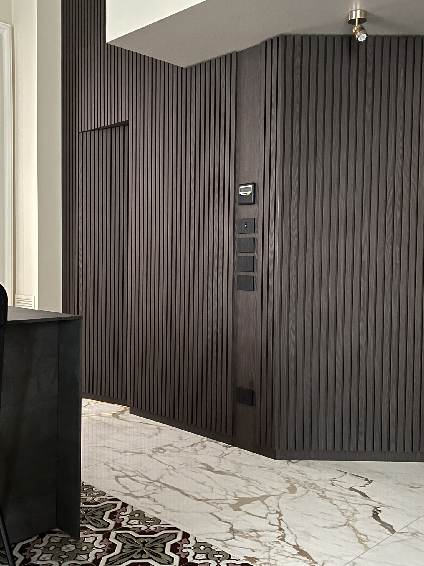 Molteplici possono essere le funzioni dei listelli in legno.Divisori, boiserie, elementi decorativi. Le diverse opzioni di essenze danno la possibilità di inserire questo sistema decorativo nei diversi stili di arredamento.