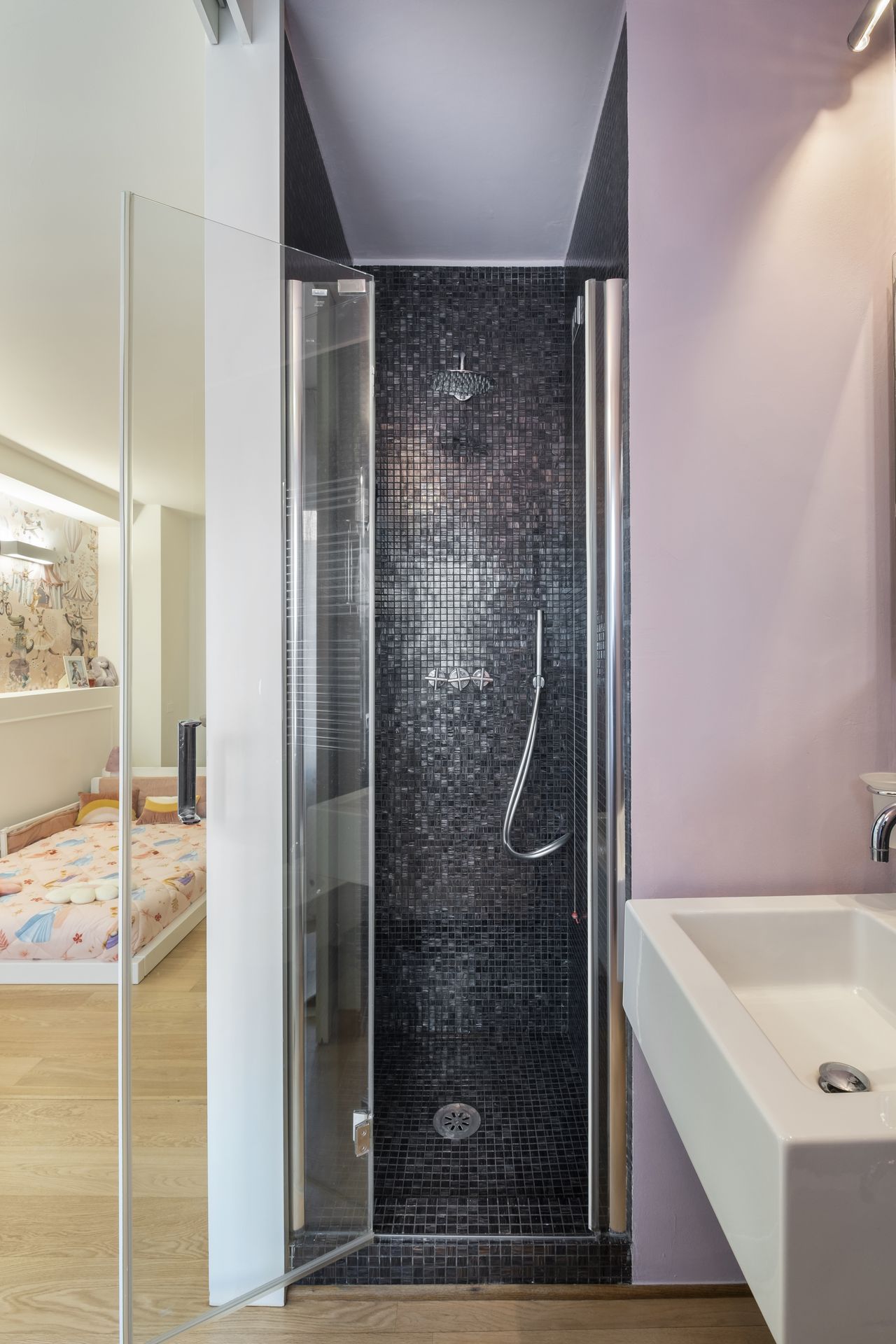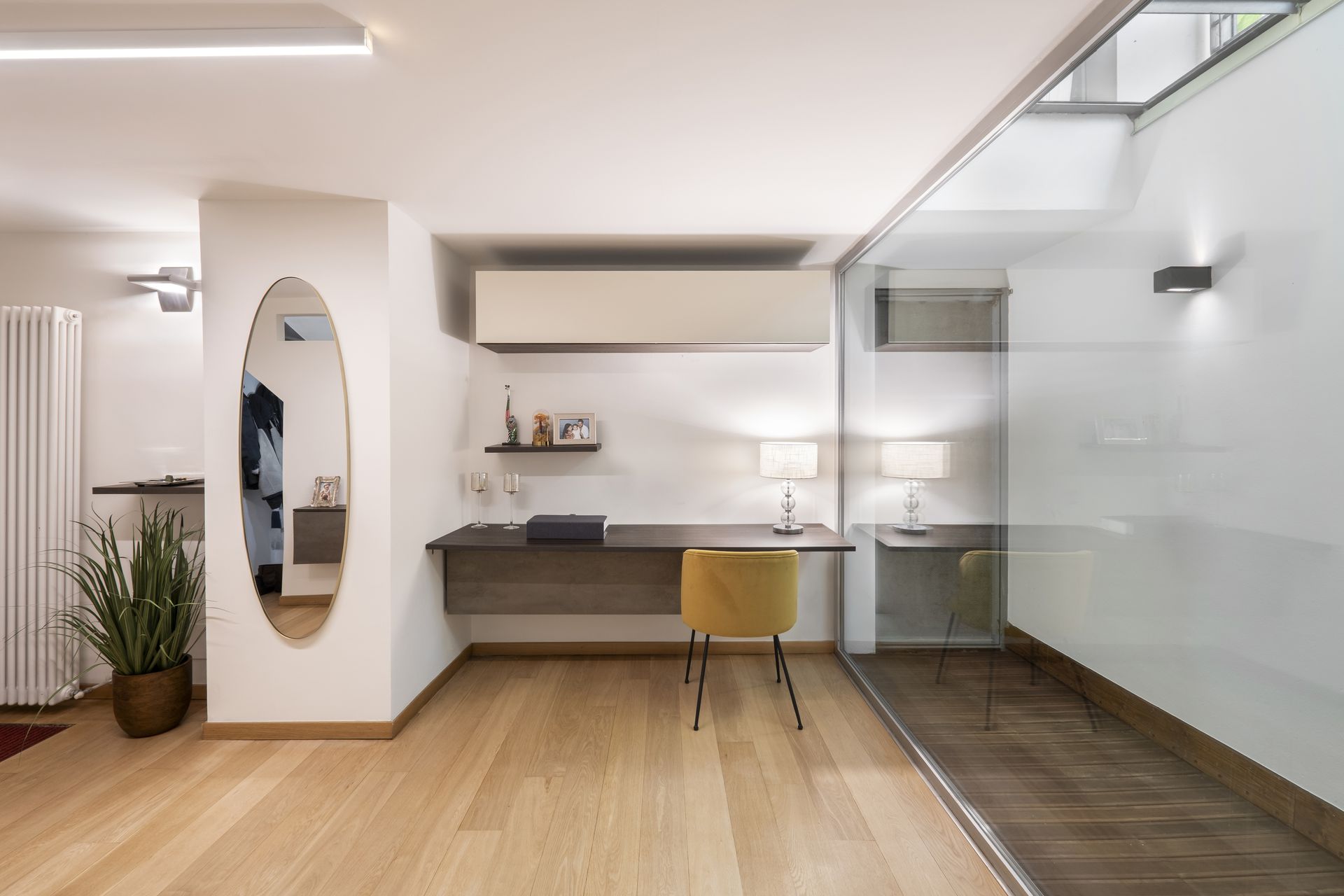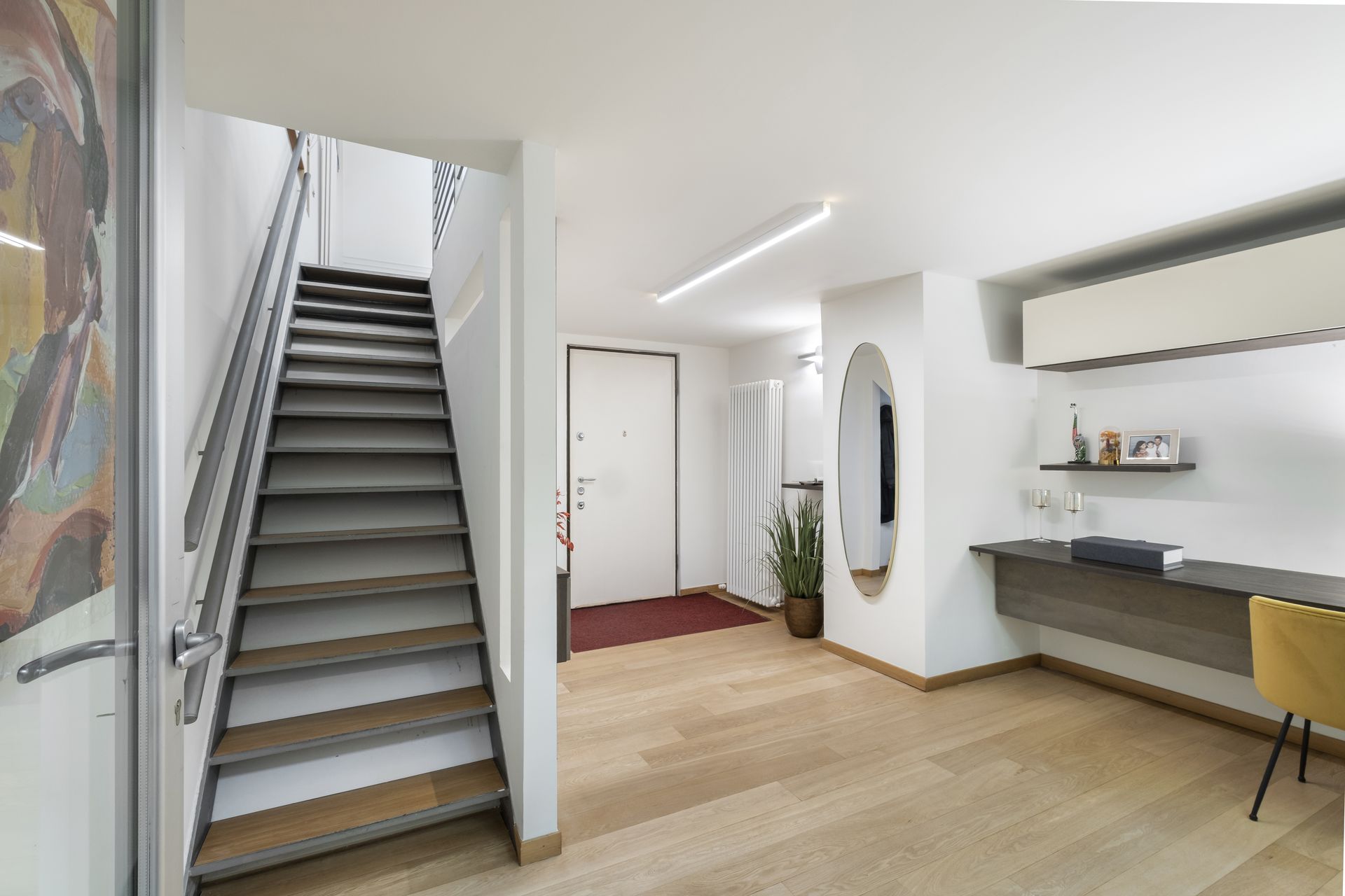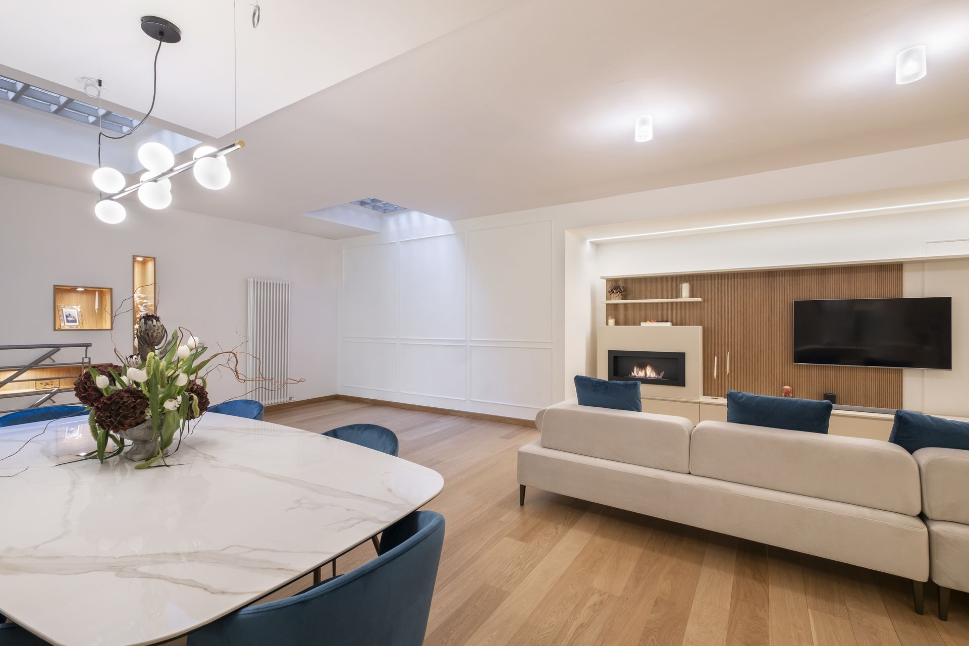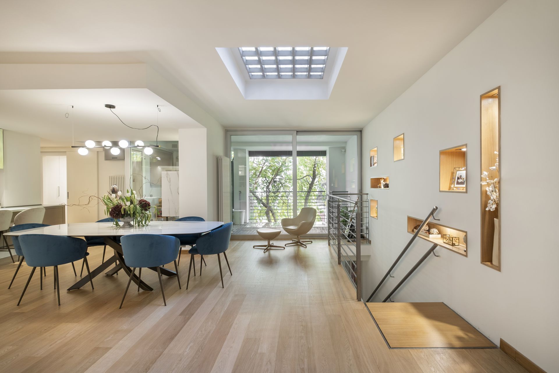 Poche ma fondamentali modifiche di layout e un restyling totale hanno dato vita ad un appartamento unico, dove il classico ed il contemporaneo si incontrano con equilibrio ed armonia. Finiture rinnovate, nuovi colori ed arredi su misura creano un "fil rouge" tra i vari ambienti, ciascuno con la sua connotazione ed eleganza.Tutti gli spazi risultano più ampi e luminosi, pronti ad accogliere la giovane famiglia.
