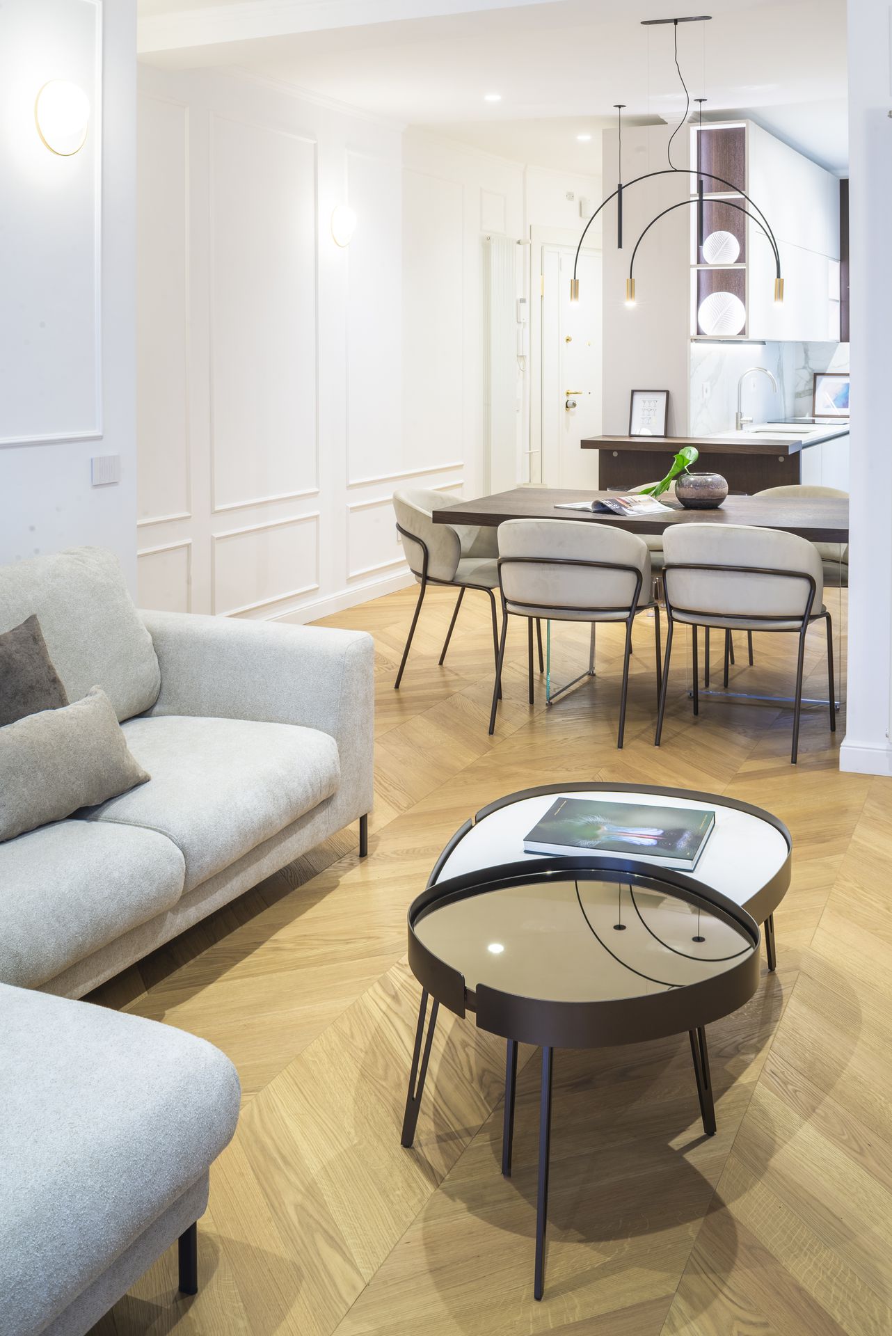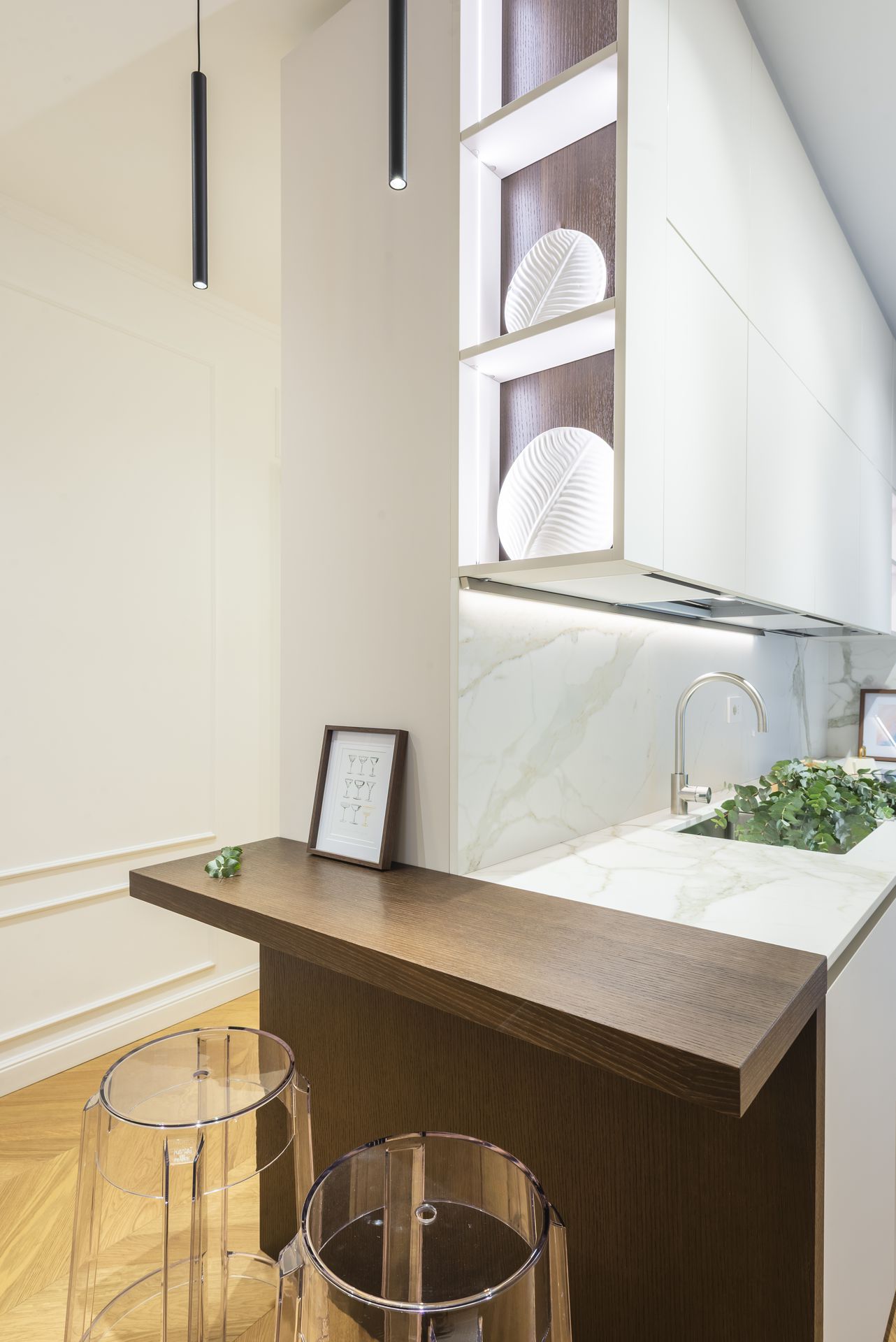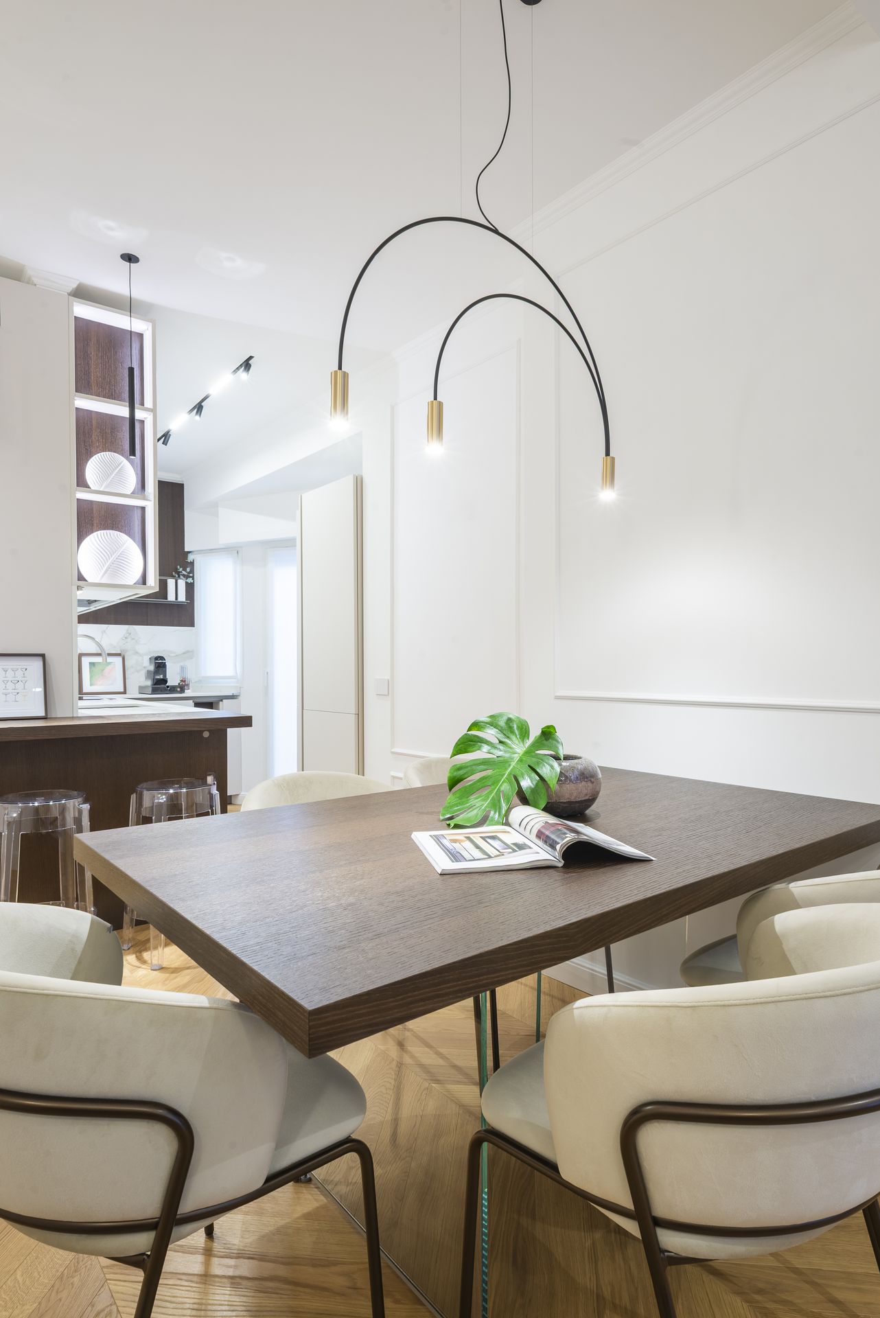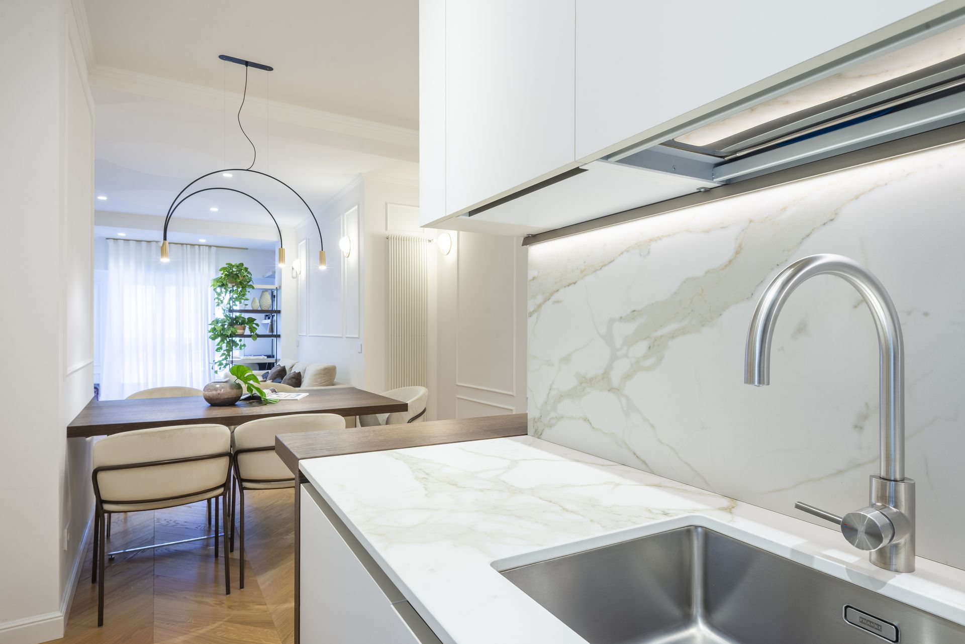 Casa Violetta è un progetto di ristrutturazione di circa 90 mq, nato con l’obiettivo di ottimizzare gli spazi e renderli fluidi, luminosi e perfettamente aderenti alle abitudini di chi vive la casa.L’ingresso è stato concepito come un corridoio attrezzato, non solo spazio di passaggio ma vero elemento funzionale dell’abitazione: una cappottiera su misura, un grande specchio e un’area svuotatasche costruiscono un ambiente ordinato, accogliente e immediatamente leggibile.Il cuore della casa è la zona giorno, progettata come uno spazio unico e continuo, in cui le diverse funzioni dialogano in modo naturale. La cucina a L, compatta ma altamente funzionale, è affiancata da un bancone snack e si relaziona direttamente con il tavolo da pranzo, dando forma a un ambiente equilibrato tra operatività e convivialità.Il living si sviluppa lungo la parete finestrata, con un divano ampio e una disposizione studiata per valorizzare al massimo la luce naturale. In questo affaccio trova posto anche uno degli elementi chiave del progetto: un angolo home office, discreto ma strategico, pensato per offrire una postazione di lavoro luminosa senza interrompere la continuità visiva della zona giorno.La distribuzione interna accompagna poi verso la zona notte, composta da una camera matrimoniale, una cameretta e due bagni. Il bagno di servizio, a ridosso della zona giorno, è compatto e funzionale; il bagno padronale, invece, è stato immaginato come uno spazio più ampio e confortevole, completo di doccia e arredi contenitivi integrati.Elemento centrale del progetto è la capacità di trasformare ogni metro quadro in spazio utile, evitando sprechi e valorizzando anche le geometrie irregolari dell’appartamento, che diventano opportunità progettuali anziché limiti.