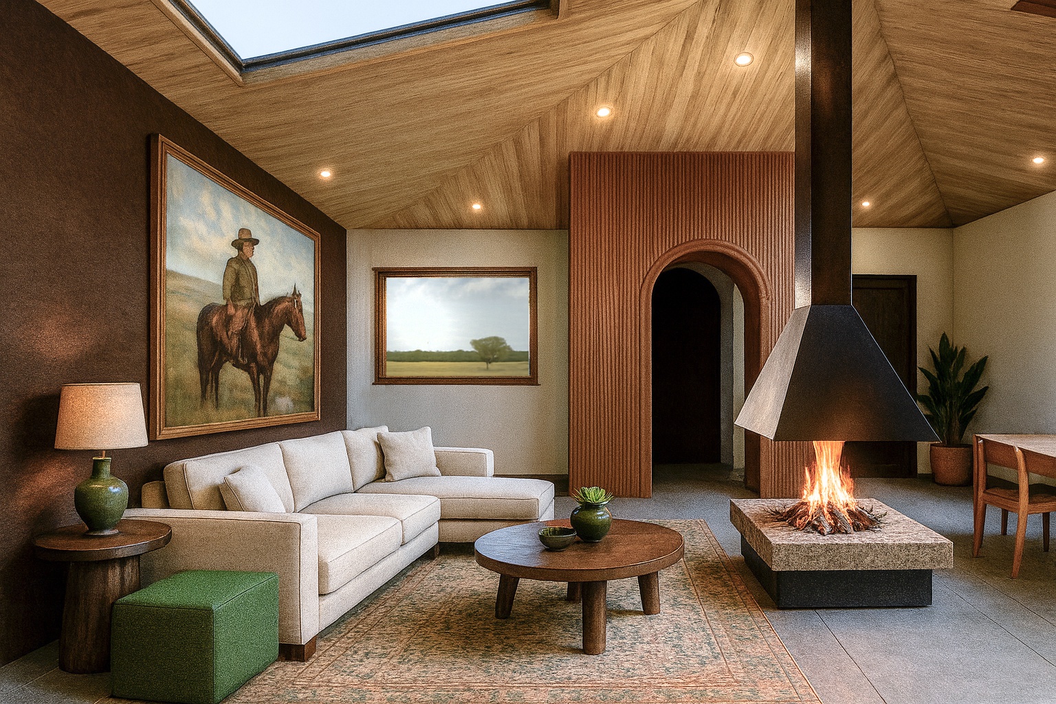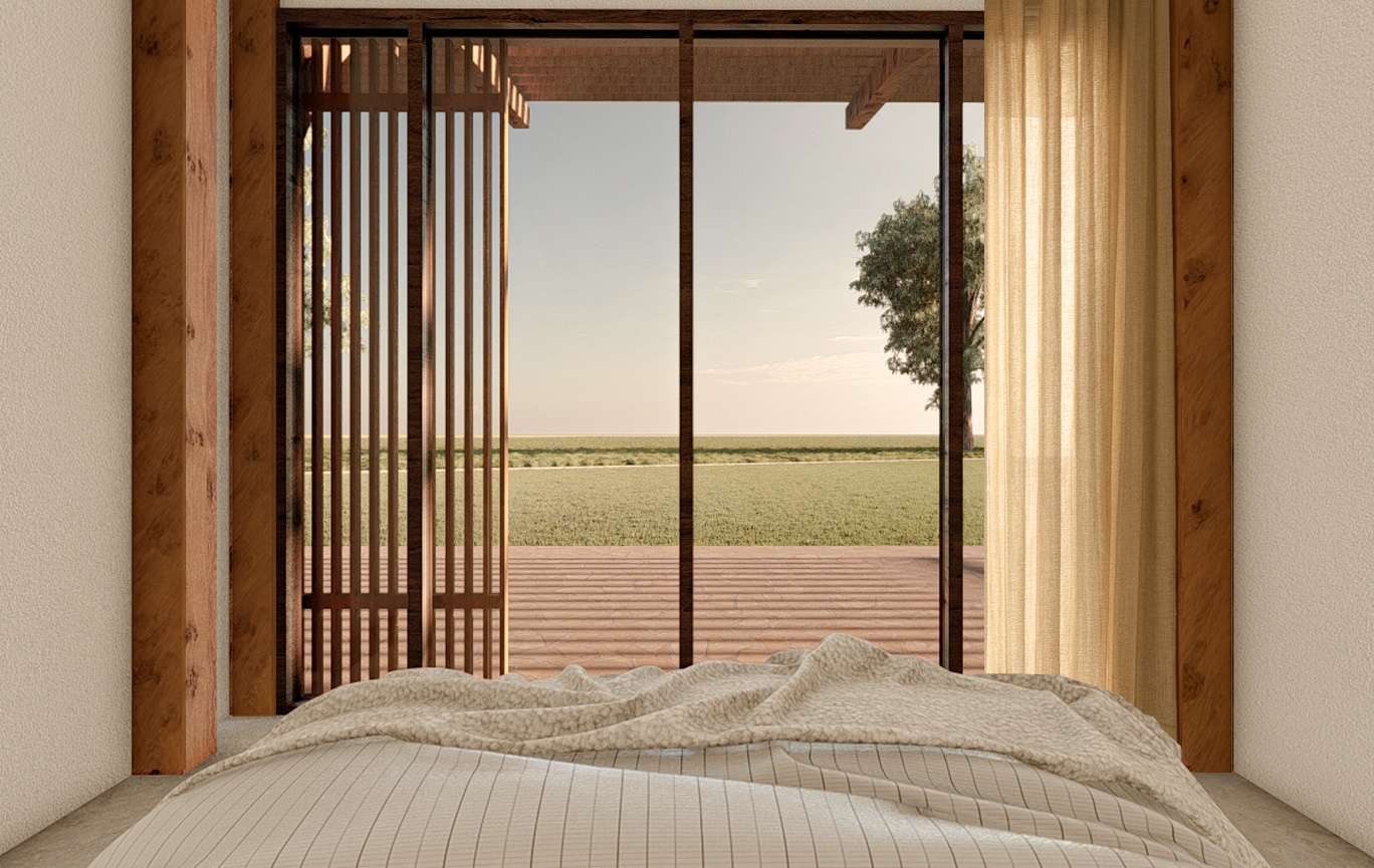 Il progetto di interior design di questa cabaña nasce come un omaggio sensibile alla Pampa argentina e, più in generale, alla tradizione architettonica sudamericana, reinterpretata in chiave contemporanea ma autentica. Ogni scelta architettonica e materica è pensata per evocare memoria, radicamento e semplicità, valori profondamente legati al paesaggio pampeano.Concetto architettonico:Lo spazio interno è concepito come unitario e fluido, evitando compartimentazioni rigide. Questa continuità richiama l’orizzontalità infinita della Pampa, dove lo sguardo corre libero fino all’orizzonte. I soffitti sono mantenuti alti e con travi a vista, elemento tipico delle costruzioni rurali, che conferisce un senso di solidità, tempo e lavoro manuale.Le aperture sono ampie ma essenziali, pensate per incorniciare il paesaggio e favorire una relazione costante tra interno ed esterno, concetto centrale nell’abitare sudamericano.Materiali:I materiali scelti sono naturali, locali o evocativi del territorio:- Legno massello (rovere, quebracho o legni simili per tono e venatura) utilizzato per pavimenti, soffitti e arredi fissi. Il legno è lasciato con finiture opache e poco trattate, per valorizzarne la texture e l’invecchiamento naturale.- Pietra naturale o superfici minerali grezze per alcune pareti, il camino o i pavimenti delle zone di passaggio, in riferimento alle estancias e alle costruzioni rurali.- Intonaci a calce o terra cruda, con leggere irregolarità, che restituiscono un senso artigianale e caldo, lontano dalla perfezione industriale.Palette cromaticaLa palette si ispira direttamente alla Pampa: toni terra, sabbia, ocra e beige. Marroni caldi del legno Accenti di verde spento e blu polveroso, richiamo al cielo e alla vegetazione bassaQuesti colori creano un’atmosfera calma, introspettiva e profondamente legata al territorio. Arredi e dettagliGli arredi sono semplici, robusti e funzionali, spesso su misura, con proporzioni generose. Tavoli grandi, panche, sedute basse e divani accoglienti ricordano la convivialità tipica della cultura argentina.I tessili giocano un ruolo fondamentale:Lane grezze, cuoio, cotone e linoTappeti e coperte ispirati ai motivi criollos o andini, usati con misura per evitare il folklorismoIl cuoio è presente in sedie, maniglie, dettagli decorativi: un chiaro riferimento al mondo gaucho e alla tradizione equestre.Luce:L’illuminazione è calda e diffusa, prevalentemente indiretta. Lampade in ferro brunito, ceramica artigianale o fibre naturali creano un’atmosfera intima, serale, quasi da rifugio. La luce artificiale non domina mai lo spazio, ma lo accompagna, lasciando che sia il giorno a definire i ritmi.Atmosfera complessivaIl risultato è un interno che non cerca di impressionare, ma di accogliere. Uno spazio che parla di silenzio, vento, terra e memoria. Una cabaña che permette al cliente argentino di riconnettersi emotivamente con la Pampa, non attraverso una copia letterale, ma tramite un linguaggio architettonico sincero, essenziale e profondamente sudamericano.