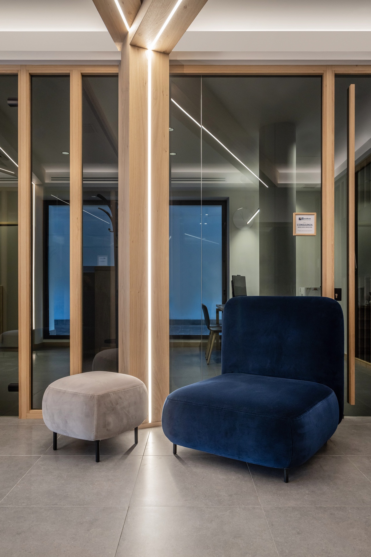 Ristrutturazione completa della filiale di Andalo della Cassa Rurale. L'intervento era finalizzato all'ammodernamento degli spazi e ad un miglioramento dell'esperienza del cliente finale e del benessere personale dei lavoratori.Abbiamo scelto legni e colori in linea con il territorio e che regalassero tranquillità. Tocchi di design e il calore del legno rendono gli uffici ambienti accoglienti e familiari.La nostra fornitura è stata completa: pavimento flottante, parquet per giro scale completo di posa, carta da parati completa di posa, mobilio interno, studio illuminazione in accordo con le necessità della committenza, sedie da ufficio e divani lounge, passamano in vetro completo di posa e pareti separé in vetro complete di posa;Progetto Design: Arredamenti AndaloRealizzazione: Arredamenti Andalo