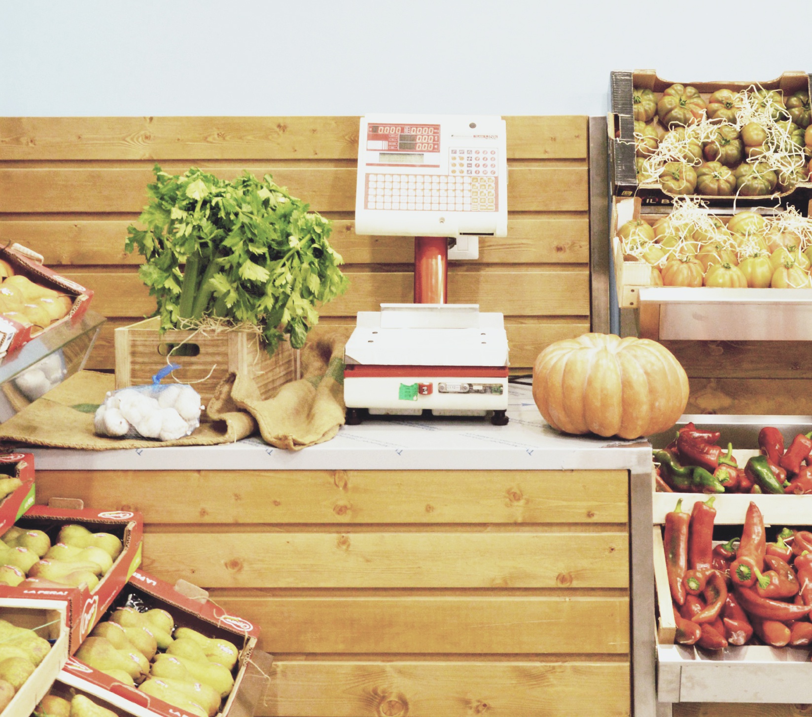 L' utilizzo del legno, accogliente, mediante doghe orizzontali, a richiamare le classiche cassette da frutta, i colori chiari ma decisi, e l' illuminazione bassa realizzata attraverso una struttura regolare in ferro, vogliono offrire una nuova esperienza di acquisto. L' ambiente unico è separato in tre zone, la prima quella posta direttamente di fronte all' ingresso, comprende la zona cassa e l' esposizione della frutta e verdura, mentre proseguendo dall' altro lato, c' è un area dedicata all' esposizione dei vini, ed in fondo lo spazio destinato ai surgelati. L' elemento comune agli ambienti sono le doghe in legno, che disegnano anche la parte centrale della cassa, che contiene anche l' insegna del negozio.